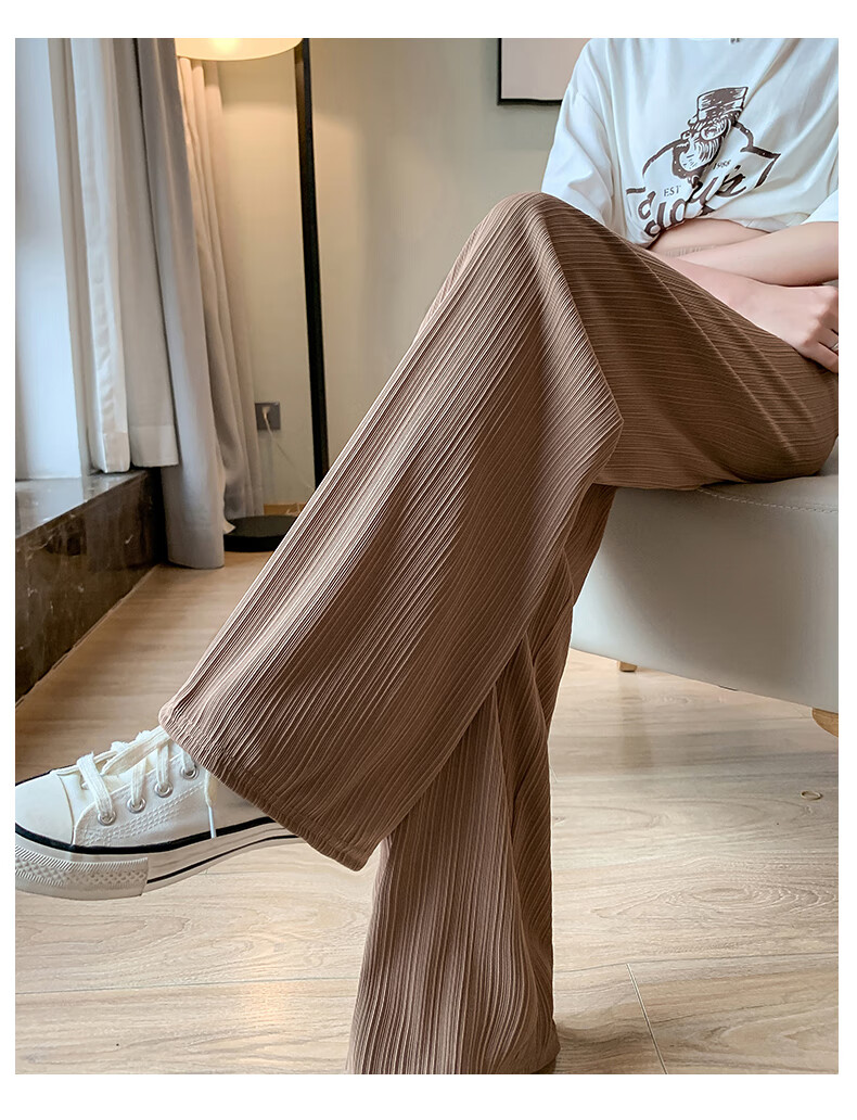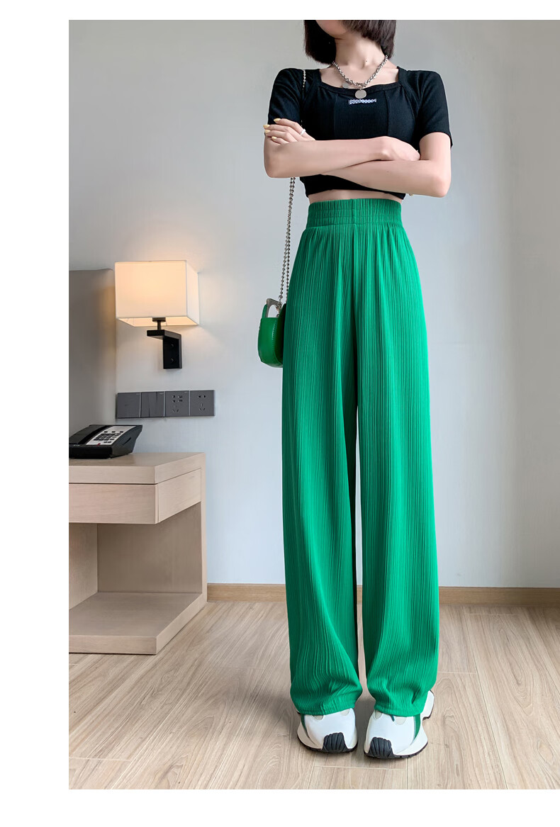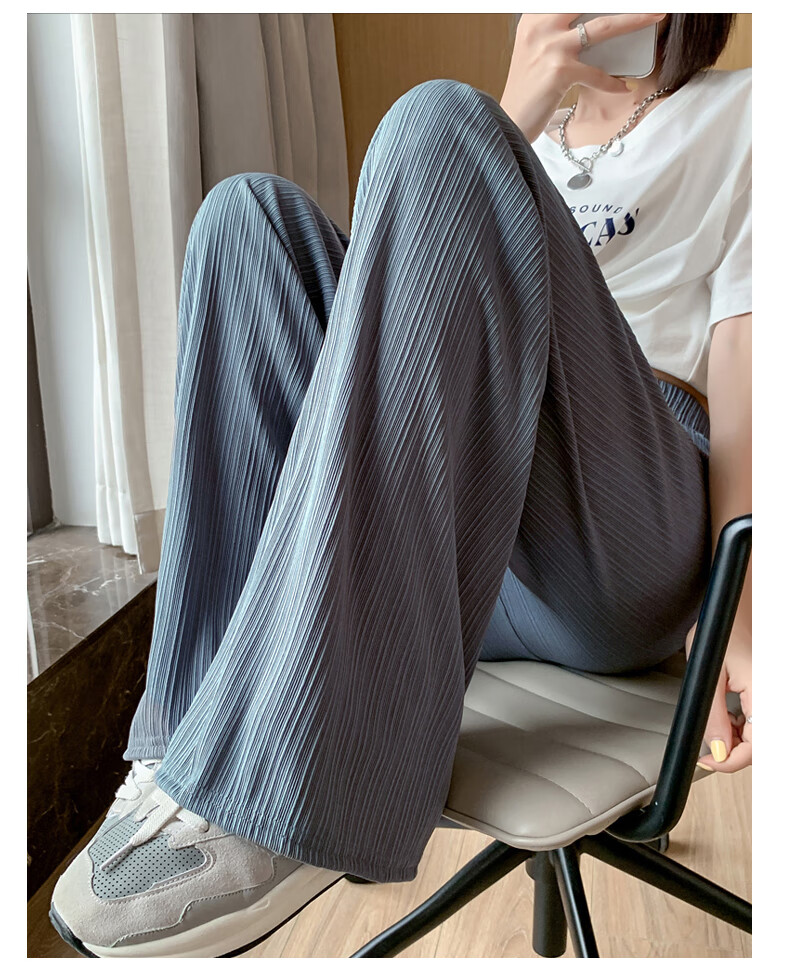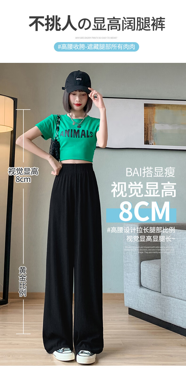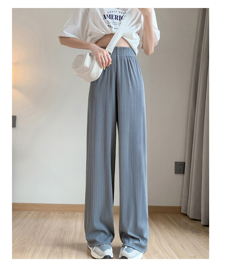 华婷露(Huatinglu)冰丝窄版阔腿裤女夏季薄款2025新款雪纺高腰直筒防晒仙女凉凉裤子 米白色 M (适合155-158cm,95-110斤)
