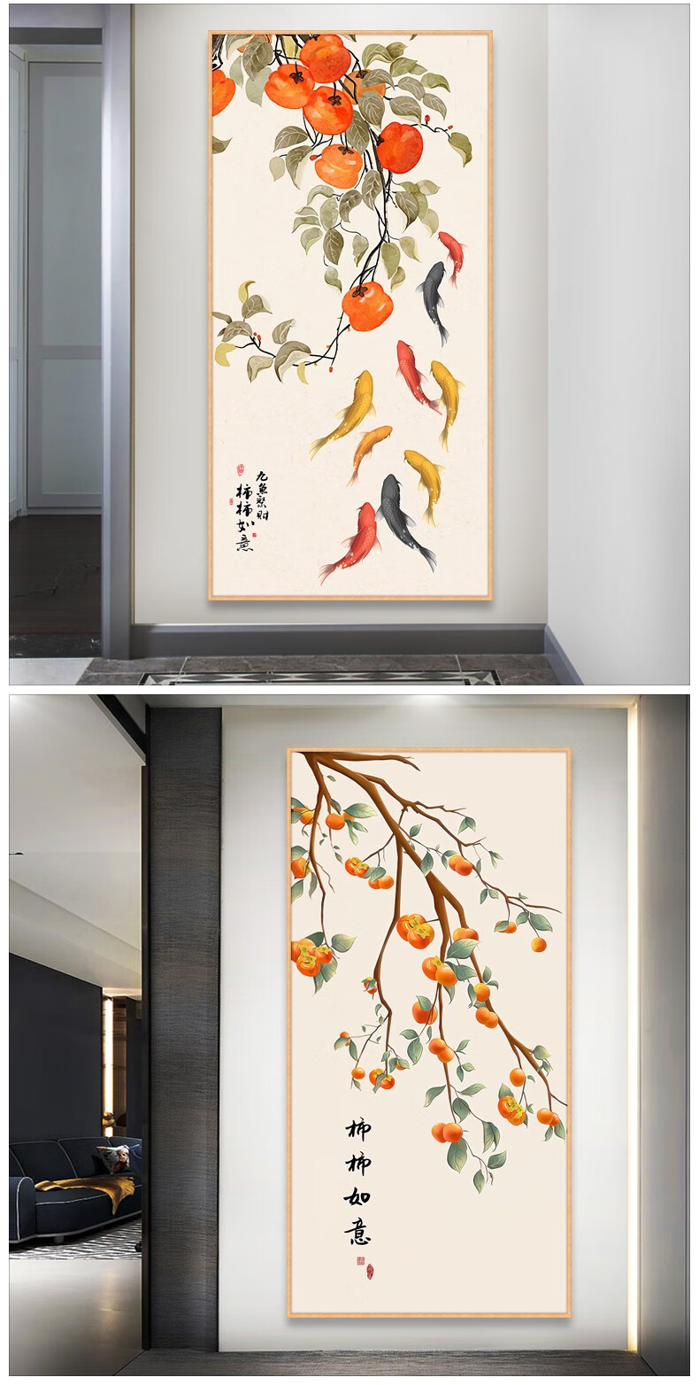 梵雅曼 事事如意自粘装饰墙纸玄关贴画墙贴客厅整张墙画贴纸年画墙贴画 22-九鱼发财 宽125*高240cm
