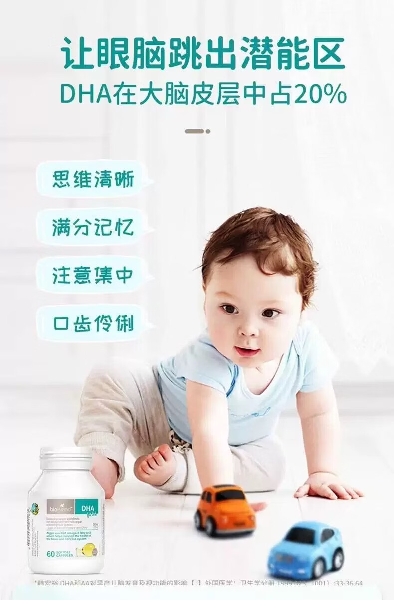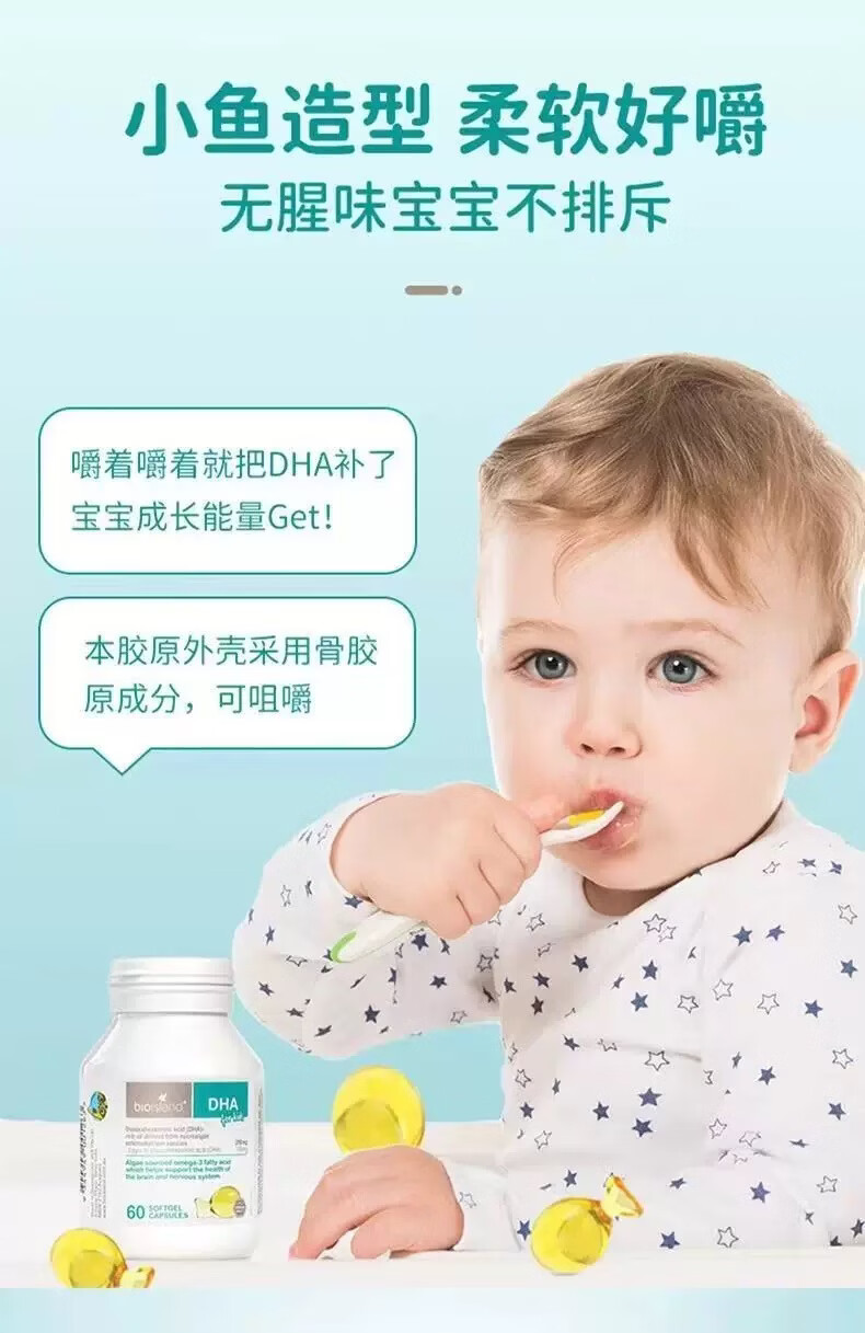 Bio Island佰澳朗德海藻油软糖提高记忆力明目益智 婴幼儿DHA 60粒*3瓶 京东快递 正品保证