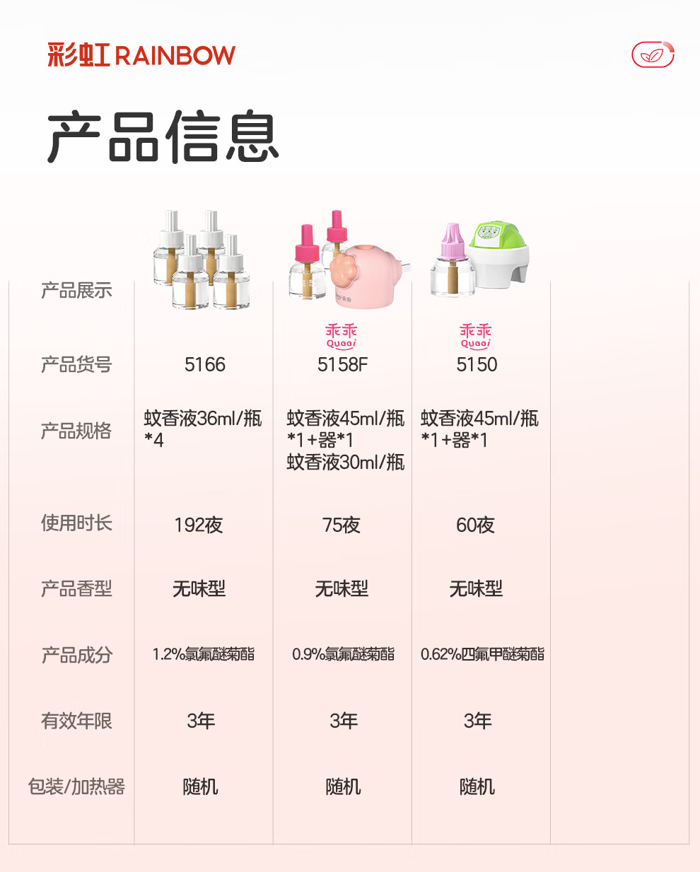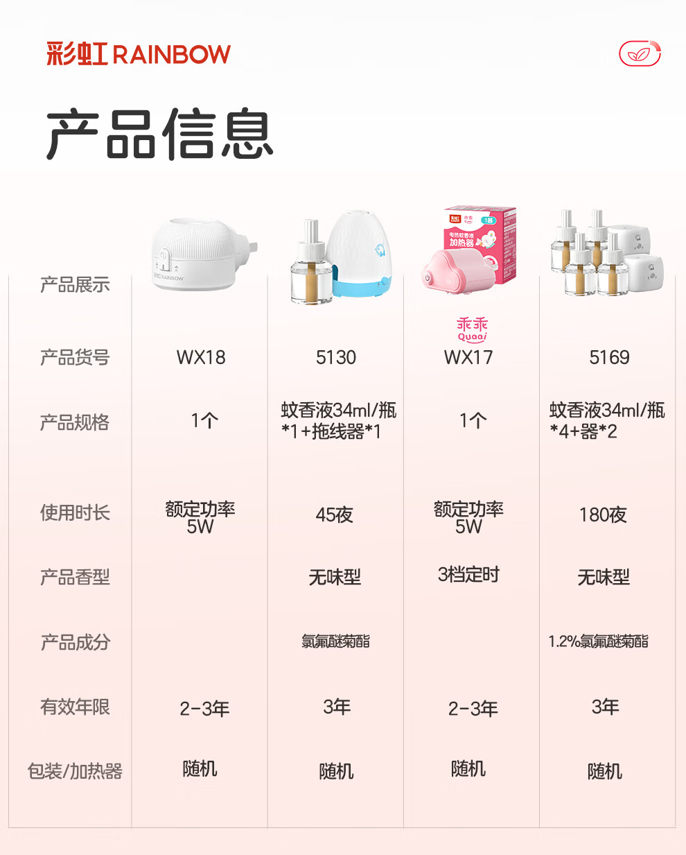 彩虹 电热蚊香液(灭蚊水)无味驱蚊防蚊液体蚊香家用补充装蚊香液温和 34ml*6瓶液(可用270夜)补充装
