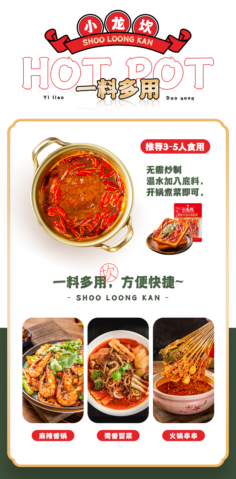 小龙坎 多功能烧菜火锅底料 干锅冒菜麻辣香锅麻辣烫小块牛油调料小袋装 50g*8
