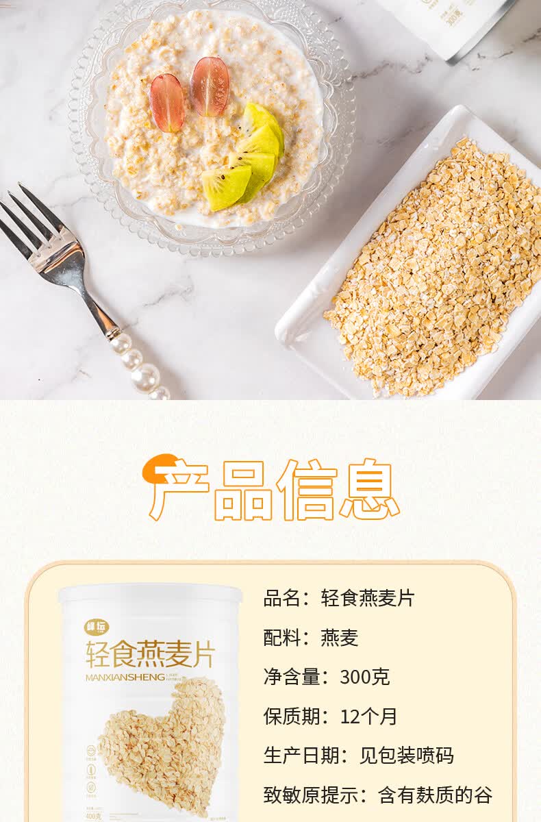 峄坛无蔗糖0添加澳洲燕麦片无蔗糖即食健身代餐新日期拍2单送杯勺 麦片300克*1罐