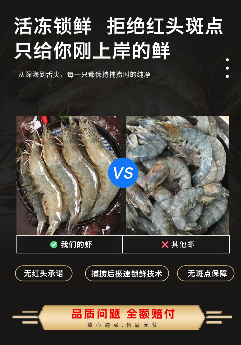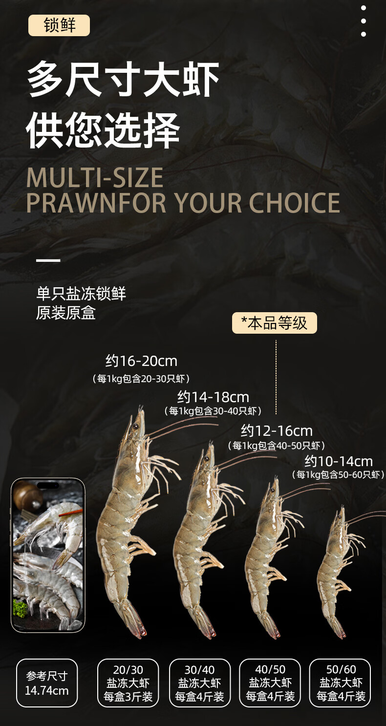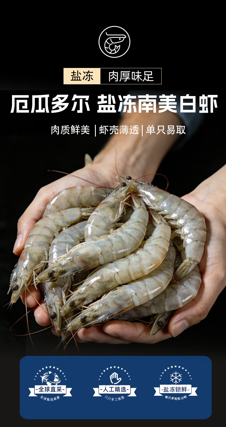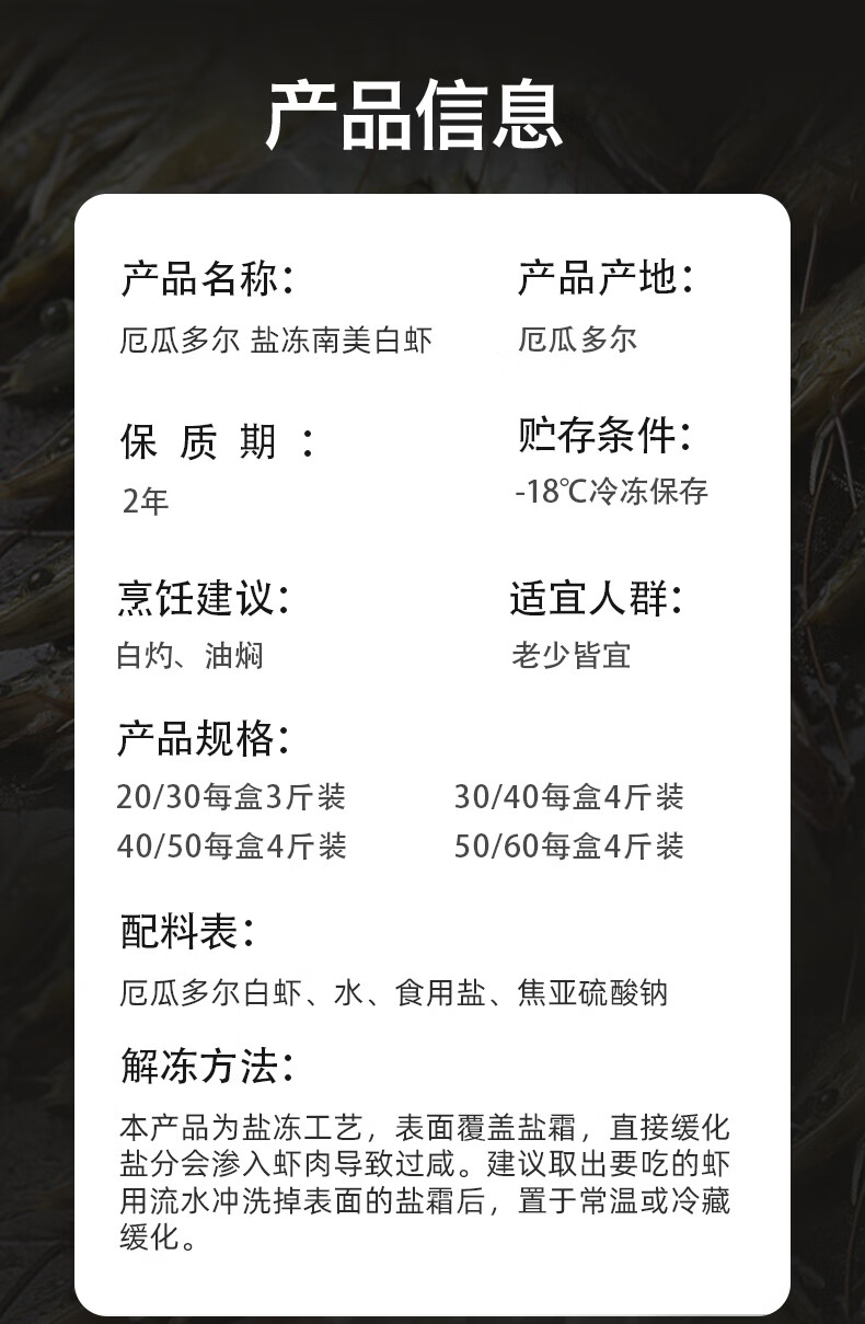 BOWO铂沃厄瓜多尔白虾 净重3斤30-45只/盒新鲜进口盐冻纯虾0包冰