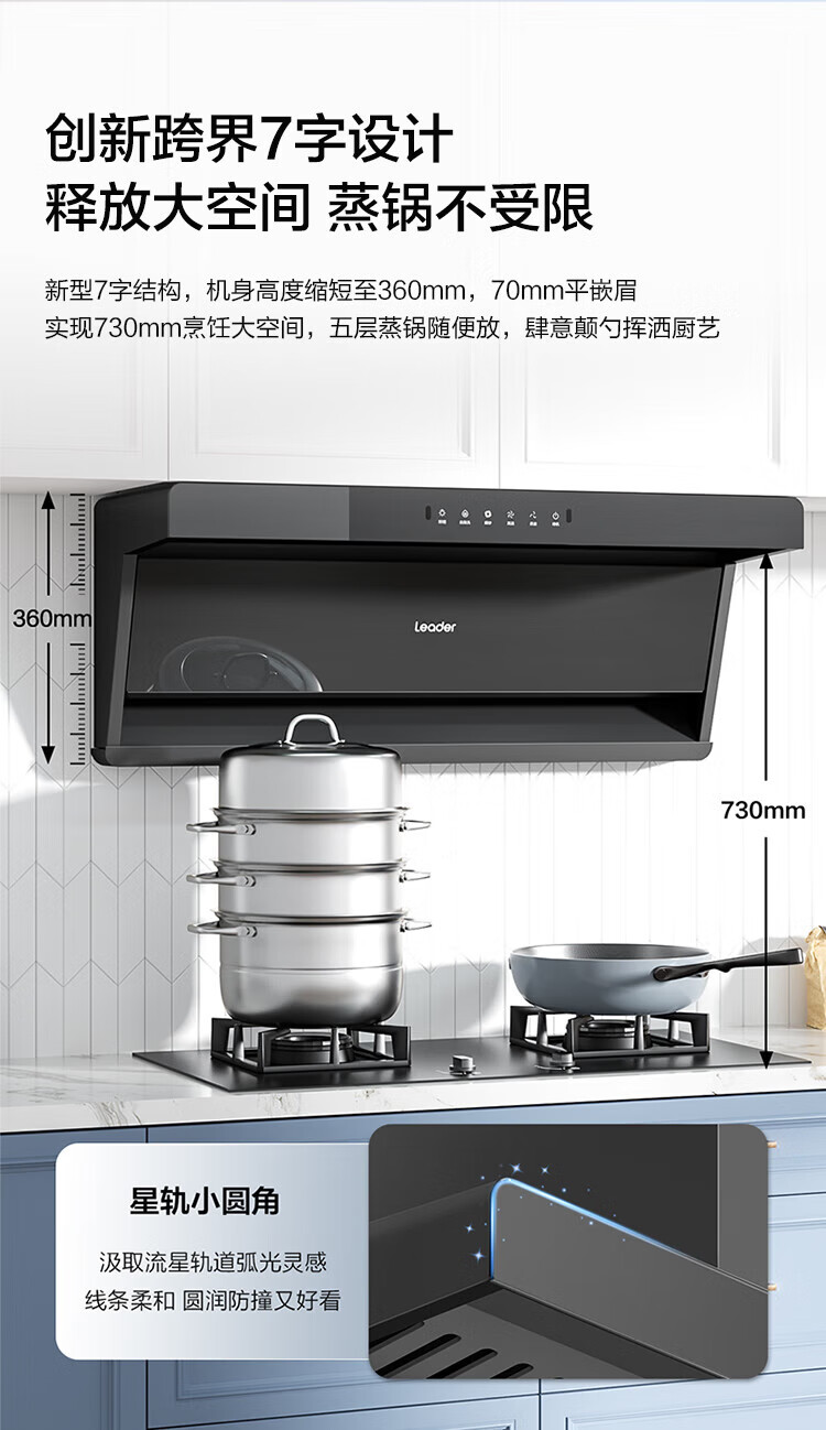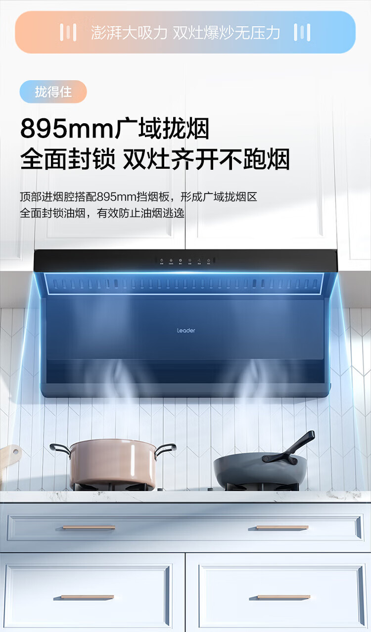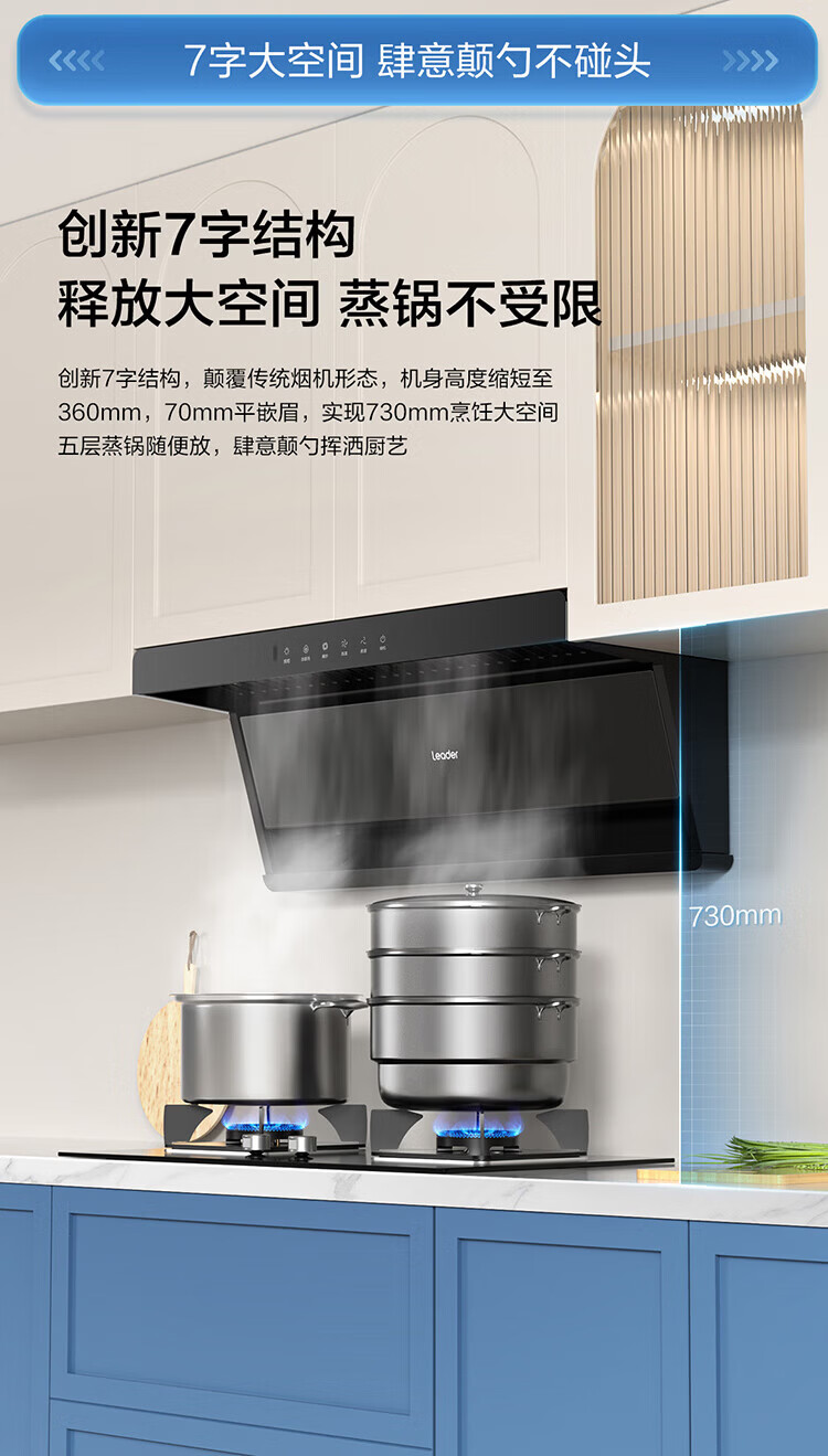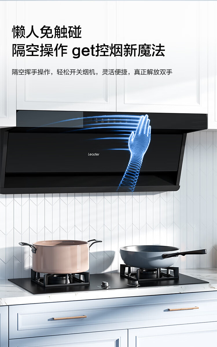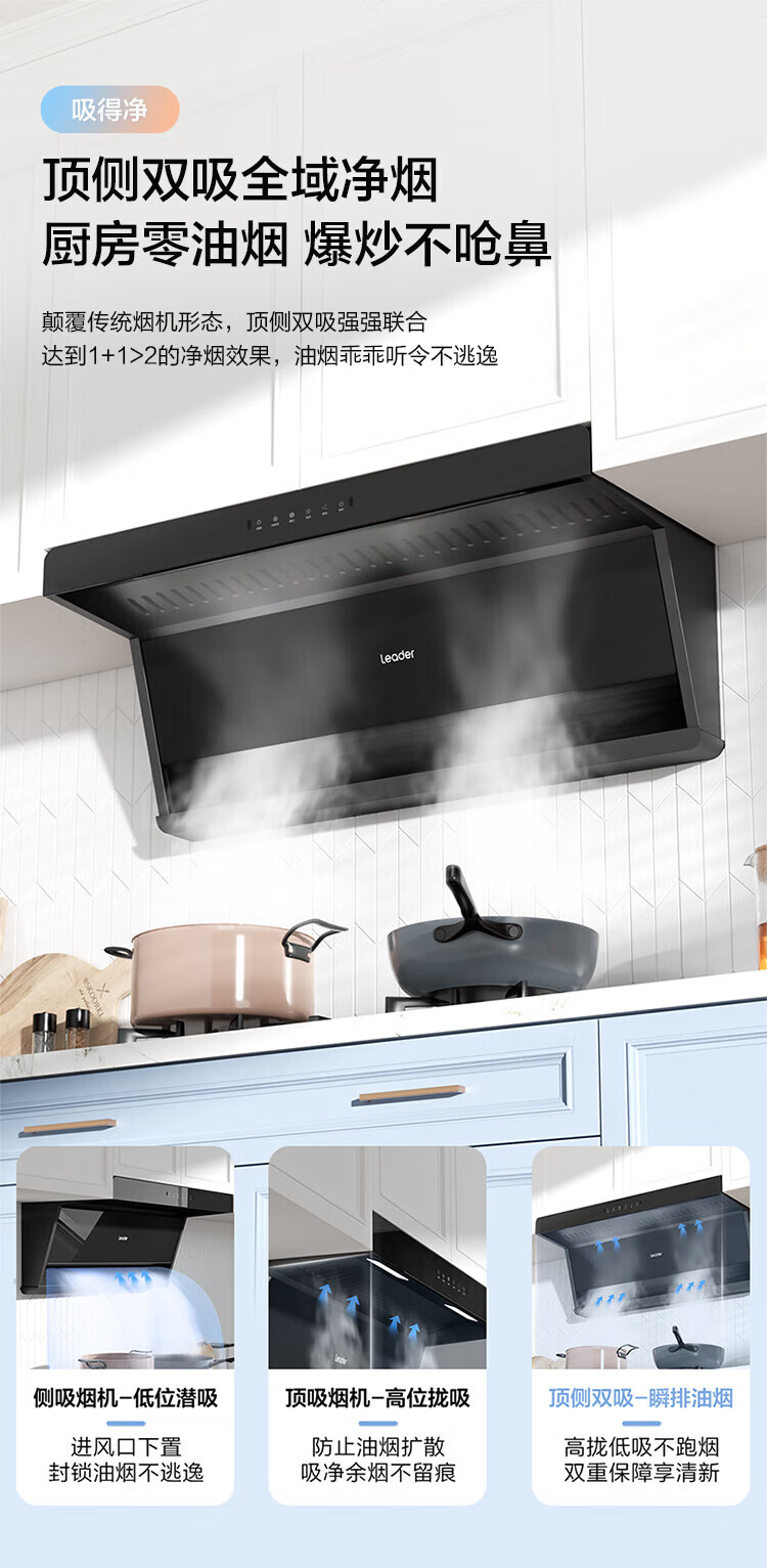 海尔【全网热销】抽油烟机大风量大吸力家用顶侧双吸油烟机燃气灶具套装24/25/28立方 统帅Leader系列 【IQ75Z1单烟机】55%用户选-25m³吸力
