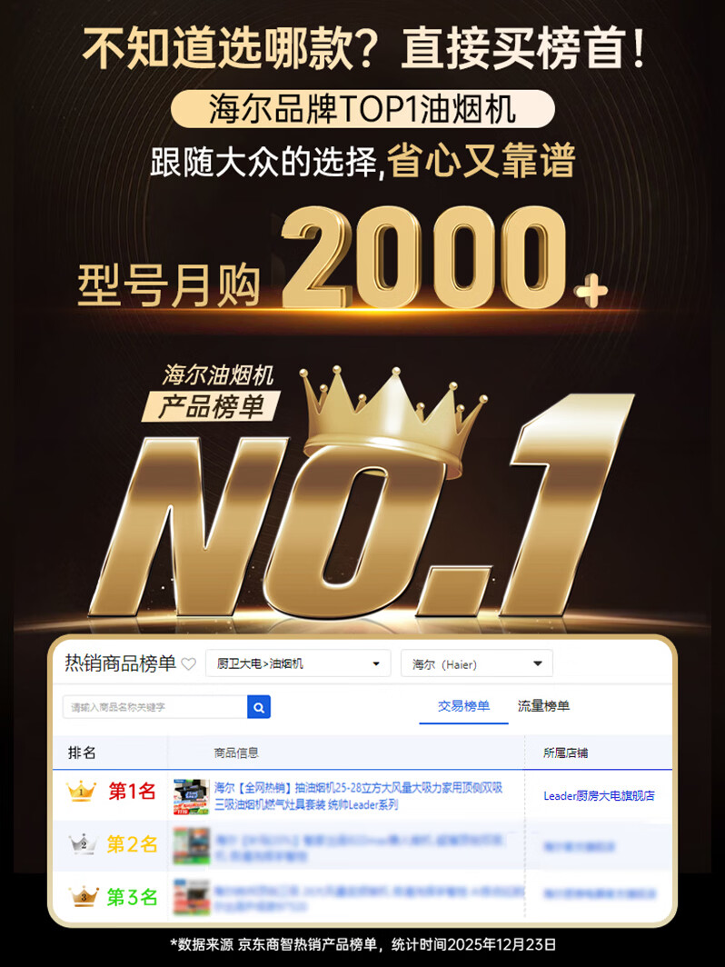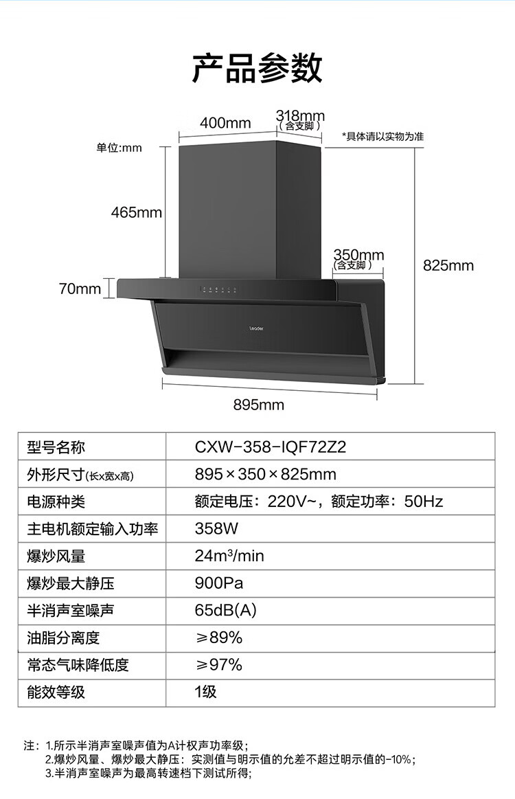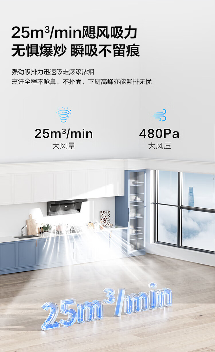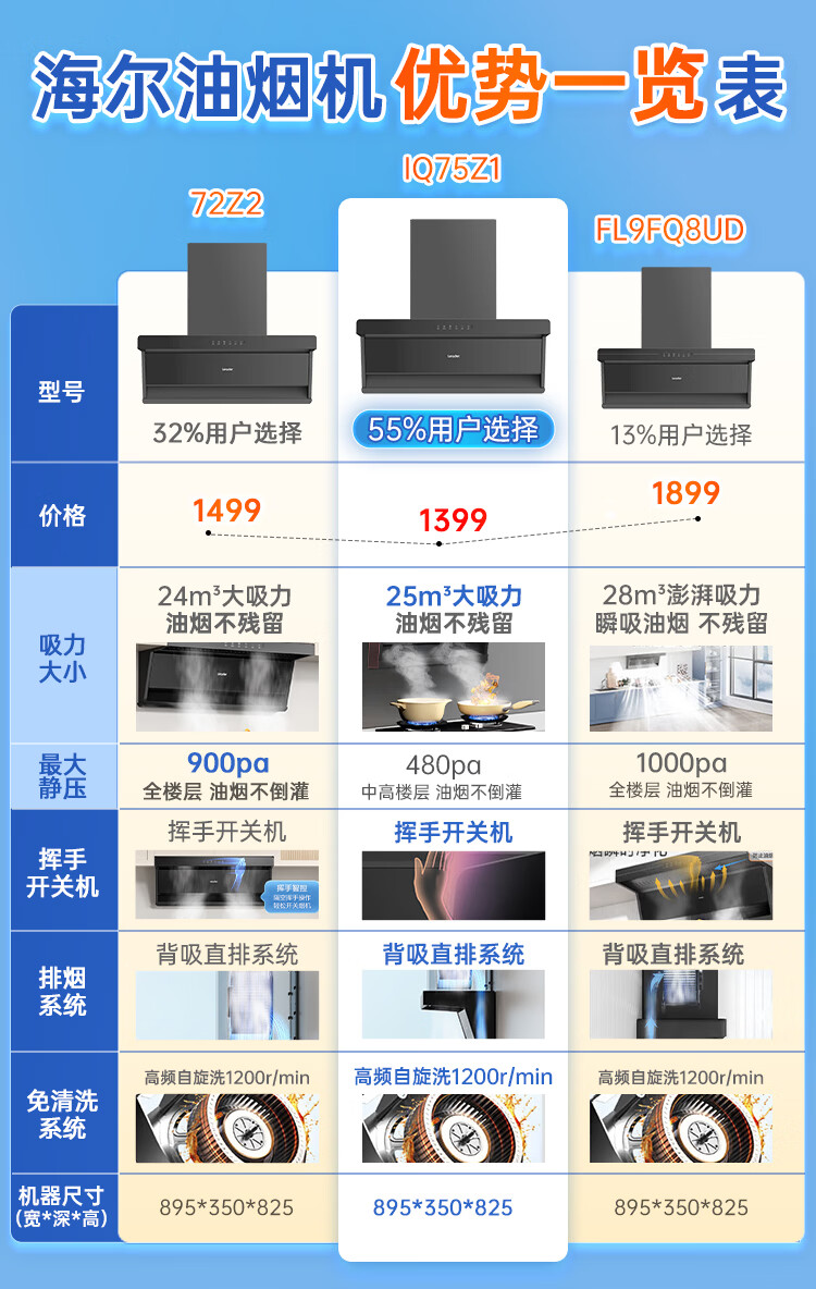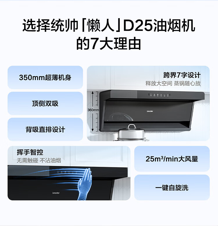 海尔【全网热销】抽油烟机大风量大吸力家用顶侧双吸油烟机燃气灶具套装24/25/28立方 统帅Leader系列 【IQ75Z1单烟机】55%用户选-25m³吸力