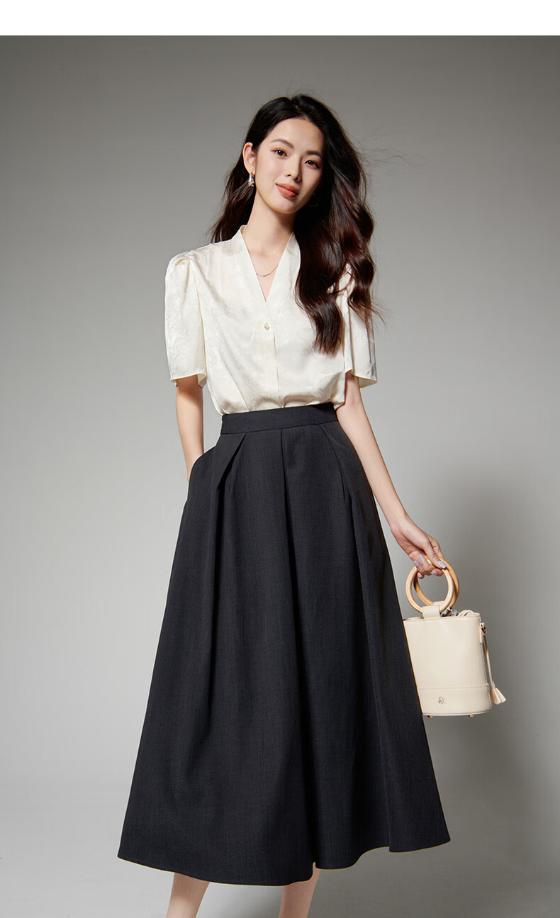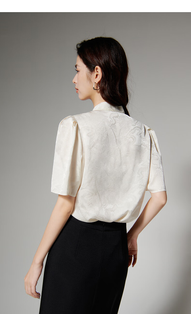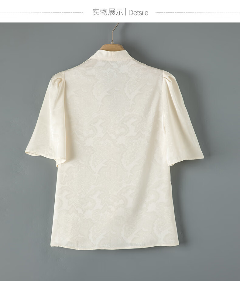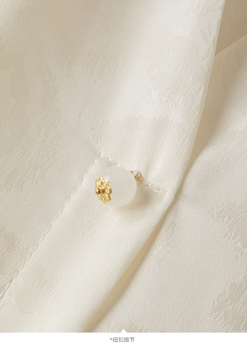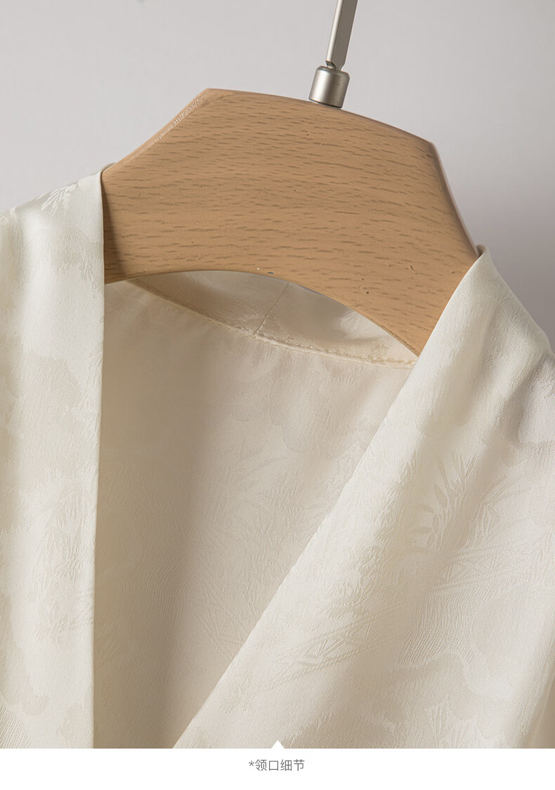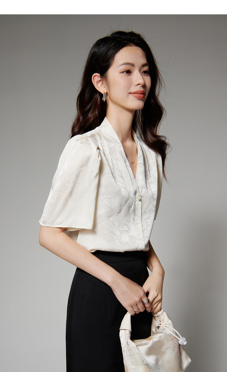 晚白【新品】2026年春款时尚优雅V领衬衣提花缎面细腻垂顺舒适衬衫女 杏色 S