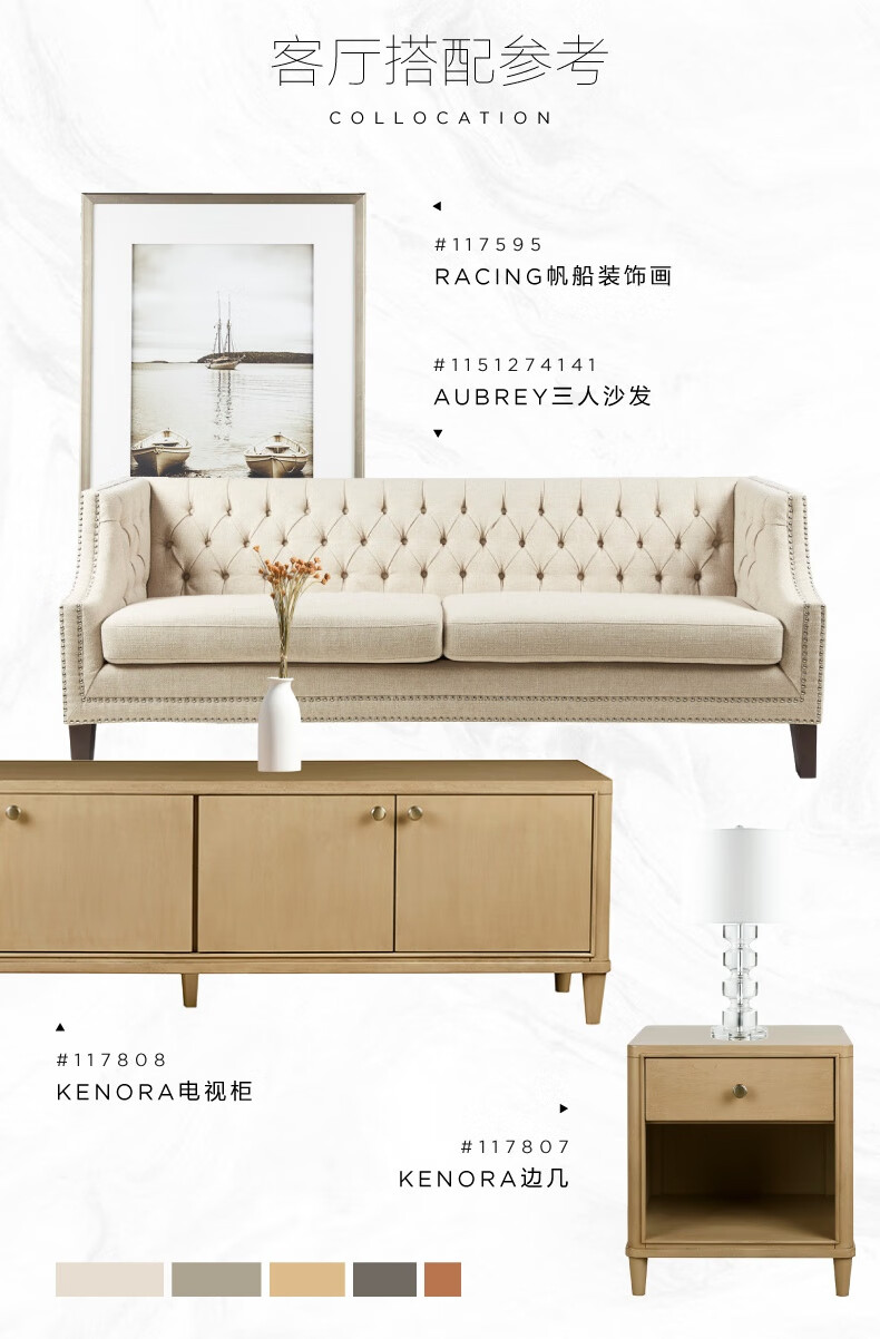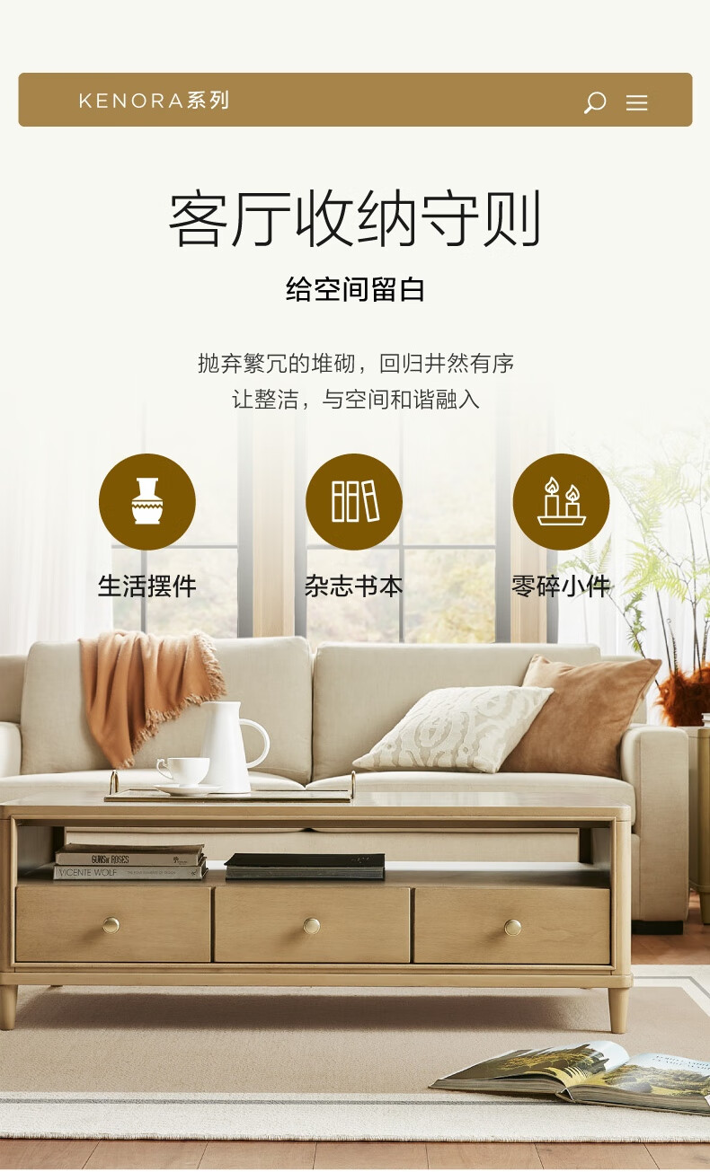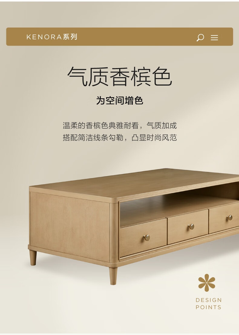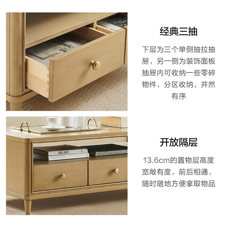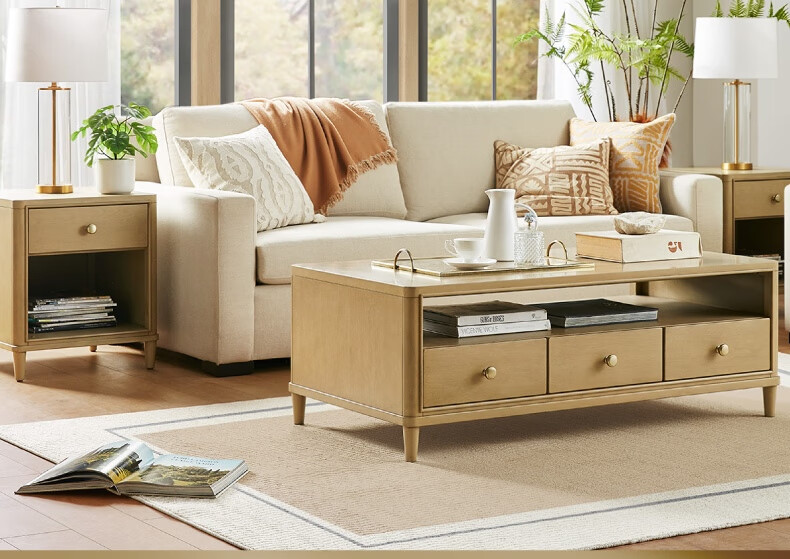 Harbor House【政府补贴】美式咖啡桌 简约客厅沙发整装茶几 边桌实木边几桌子 Kenora【美式轻奢时尚】咖啡桌 长1304X宽675X高466mm