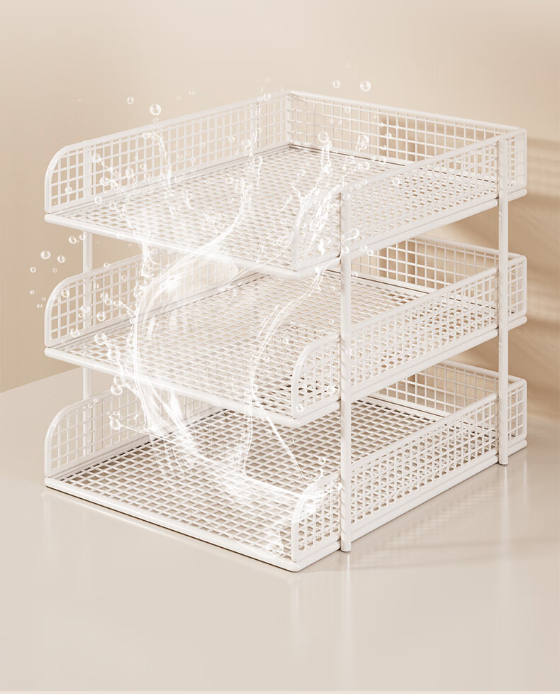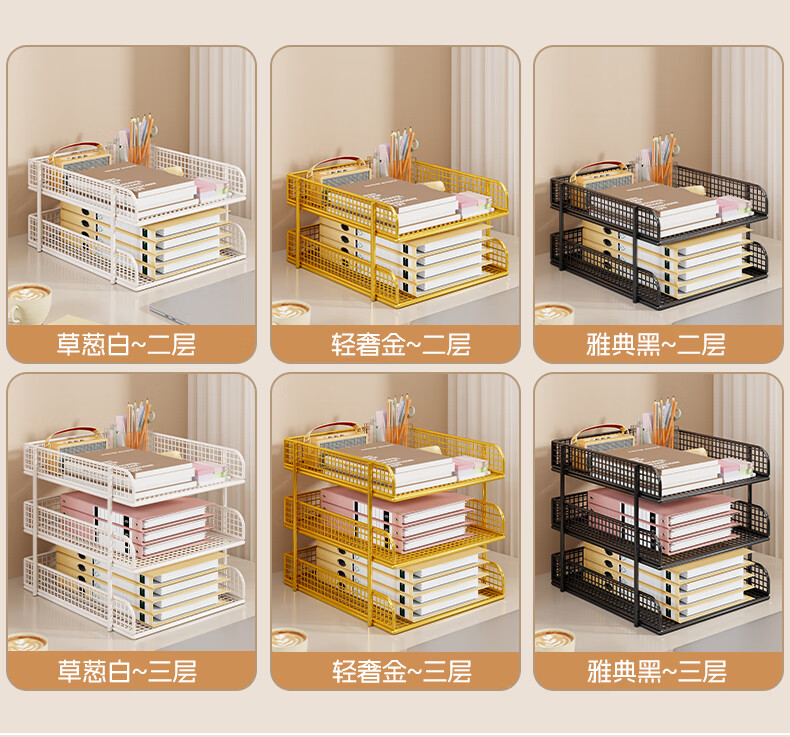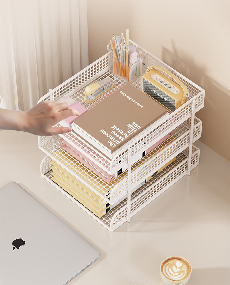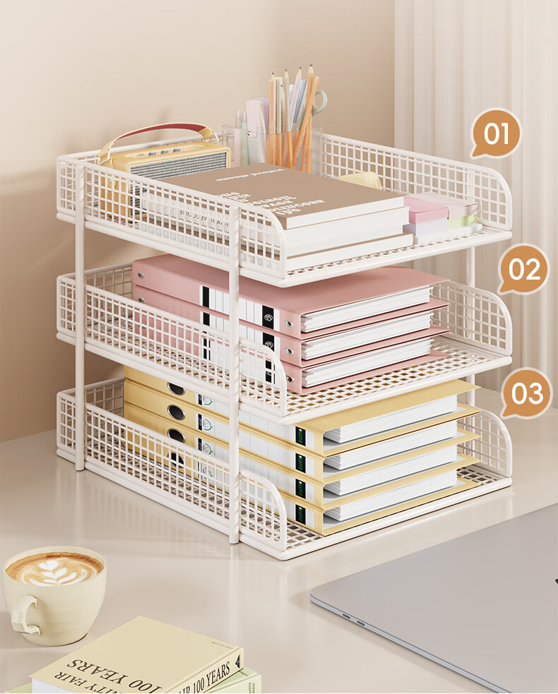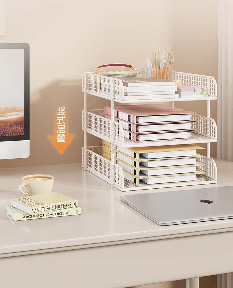 木格格文件置物架办公桌桌面书架桌上多层书本收纳架宿舍储物架书桌收纳 草葱白三联