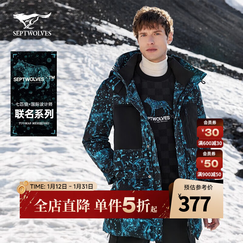 七匹狼【设计师联名款】羽绒服男冬季新款潮流男装外套 001(黑色) XL 175/92A
