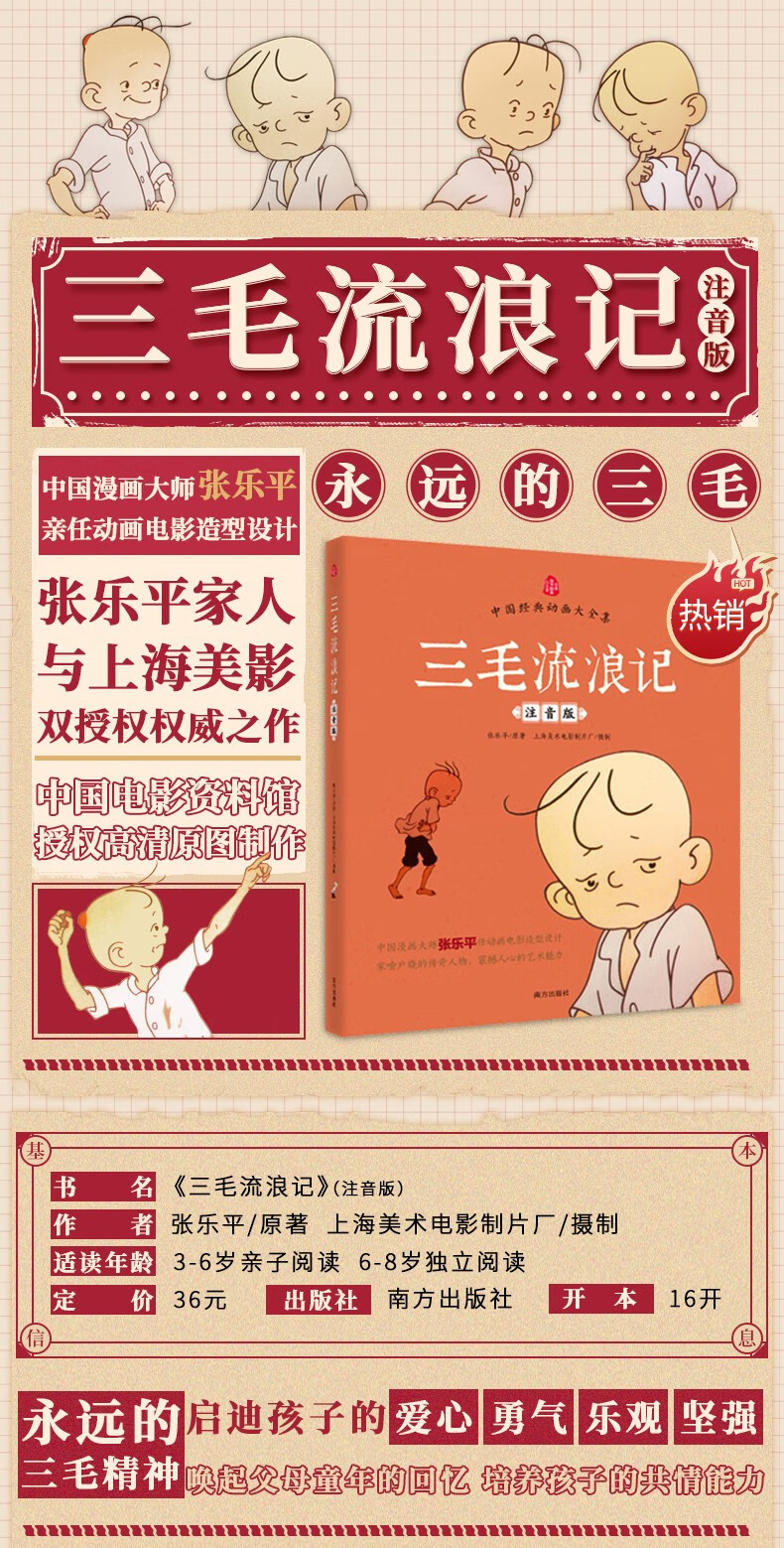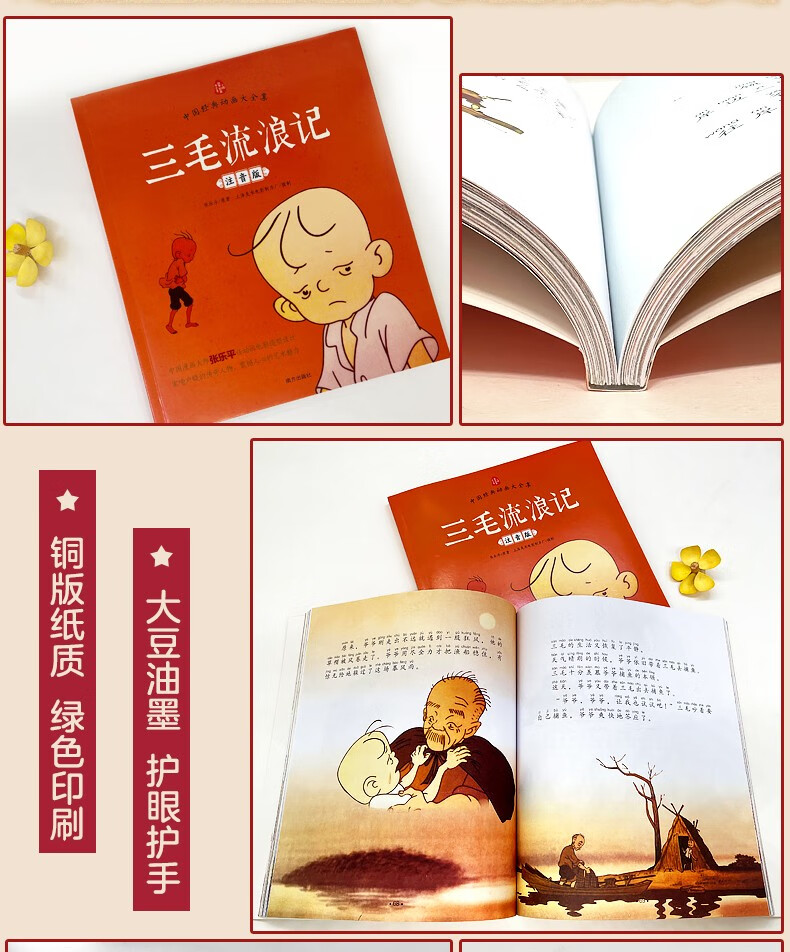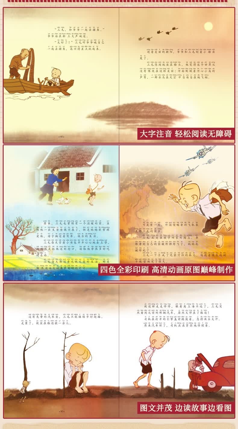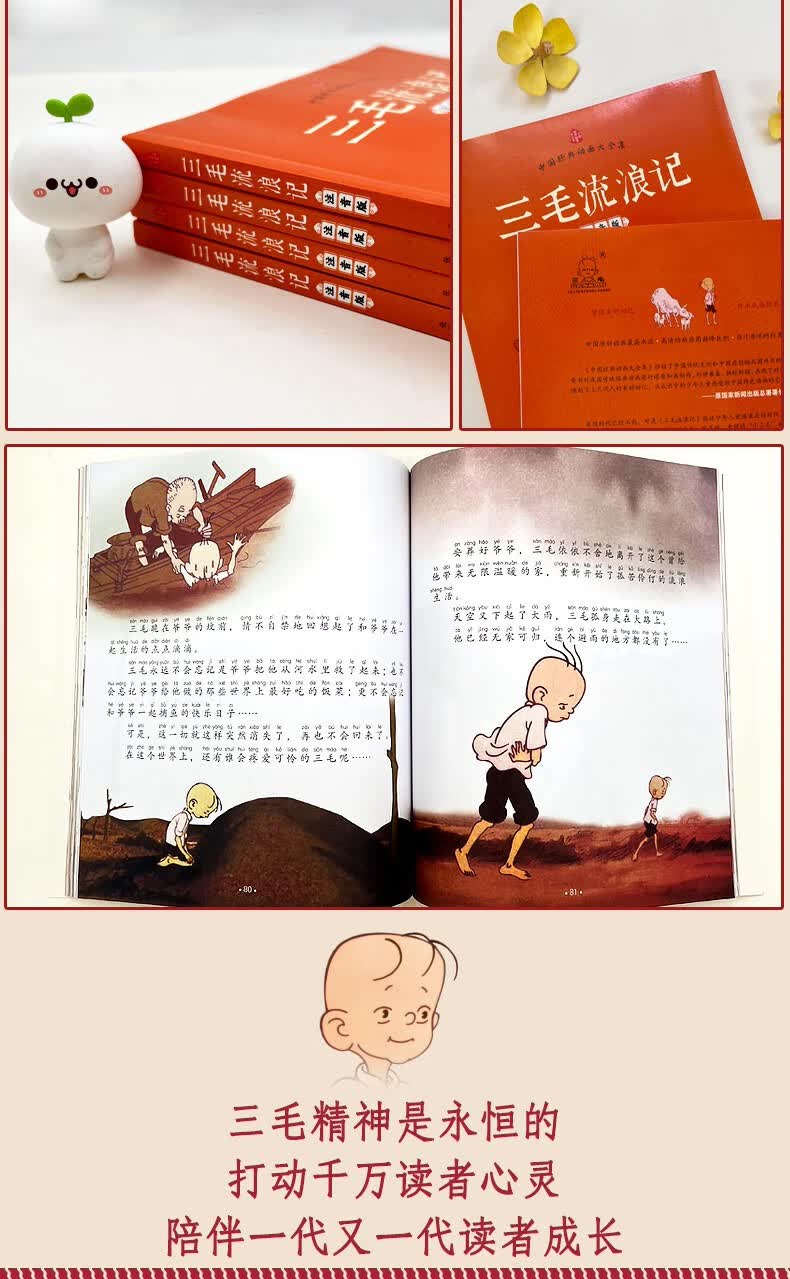 三毛流浪记(注音彩图版)张乐平著3-6岁儿童绘本 幼儿图书儿童绘本0-3岁 一二年级推荐必读课外读物 三毛+没头脑和不高兴(两册)