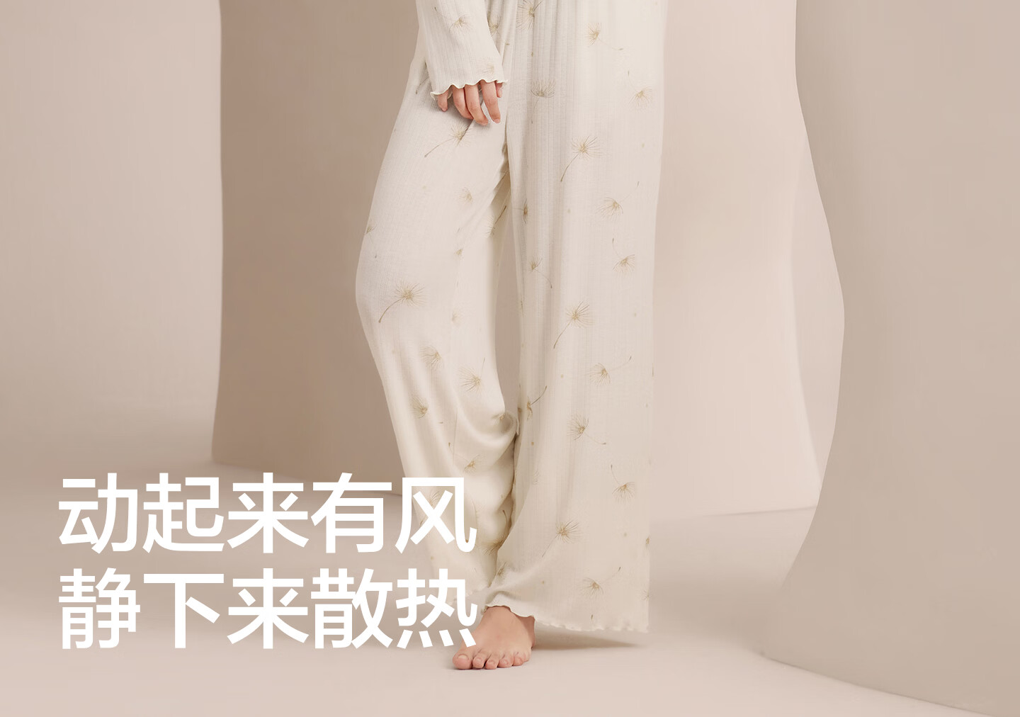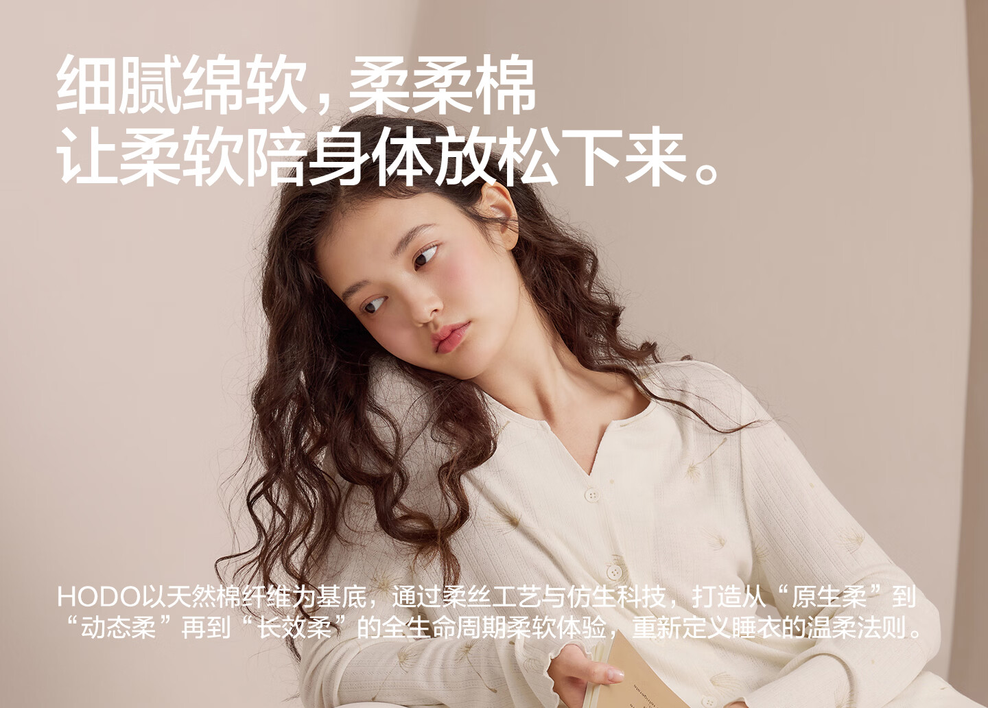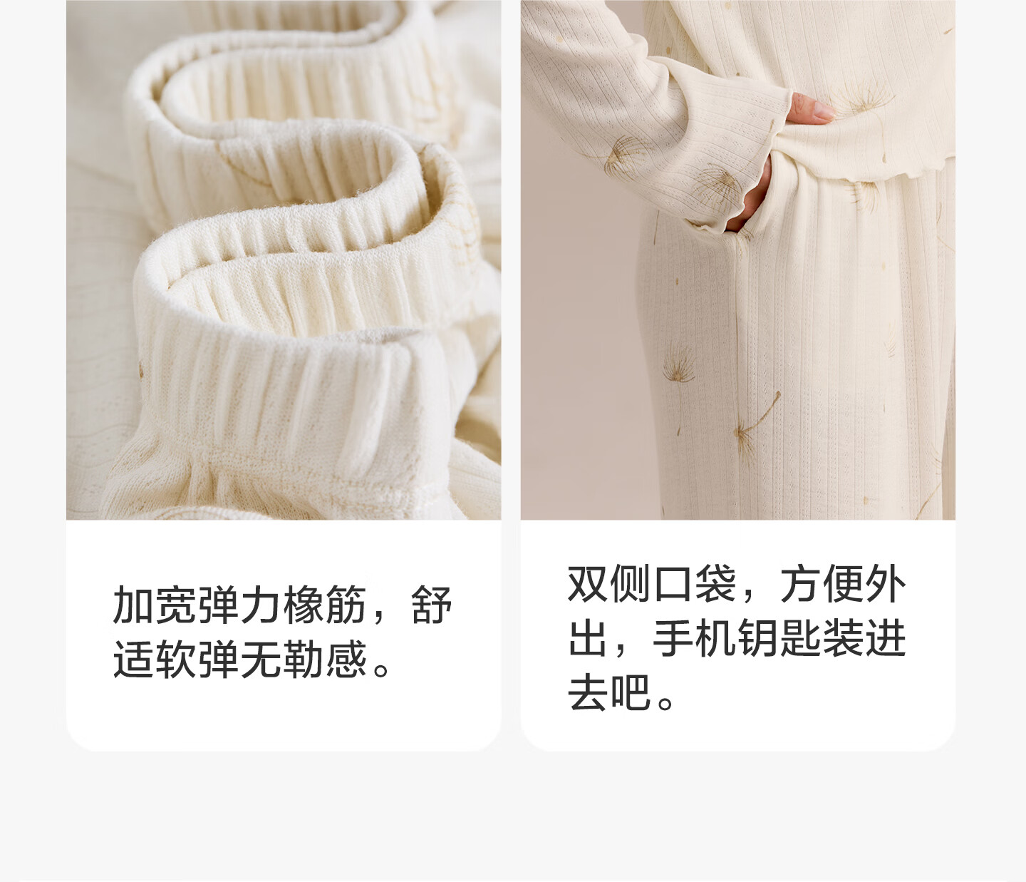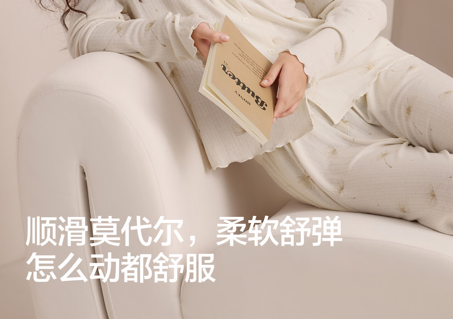 红豆(Hodo)女士长袖睡衣春夏香氛疗愈V领莫代尔印花新款A类可外穿休闲家居服 米糖色 L (165)