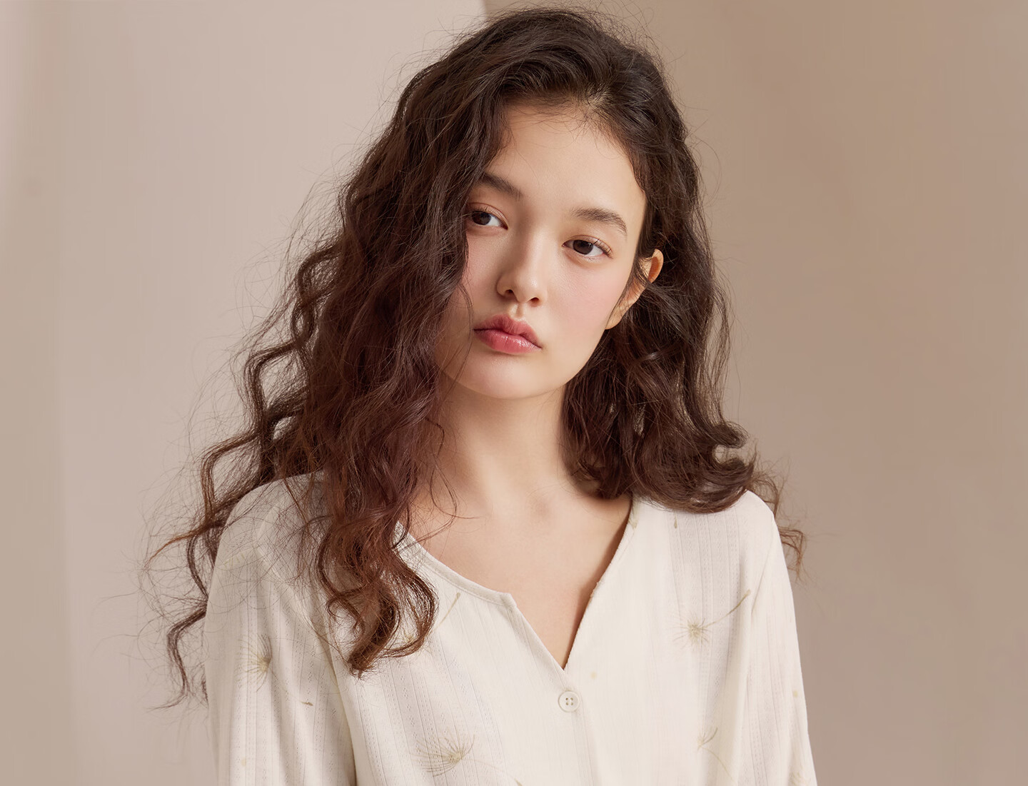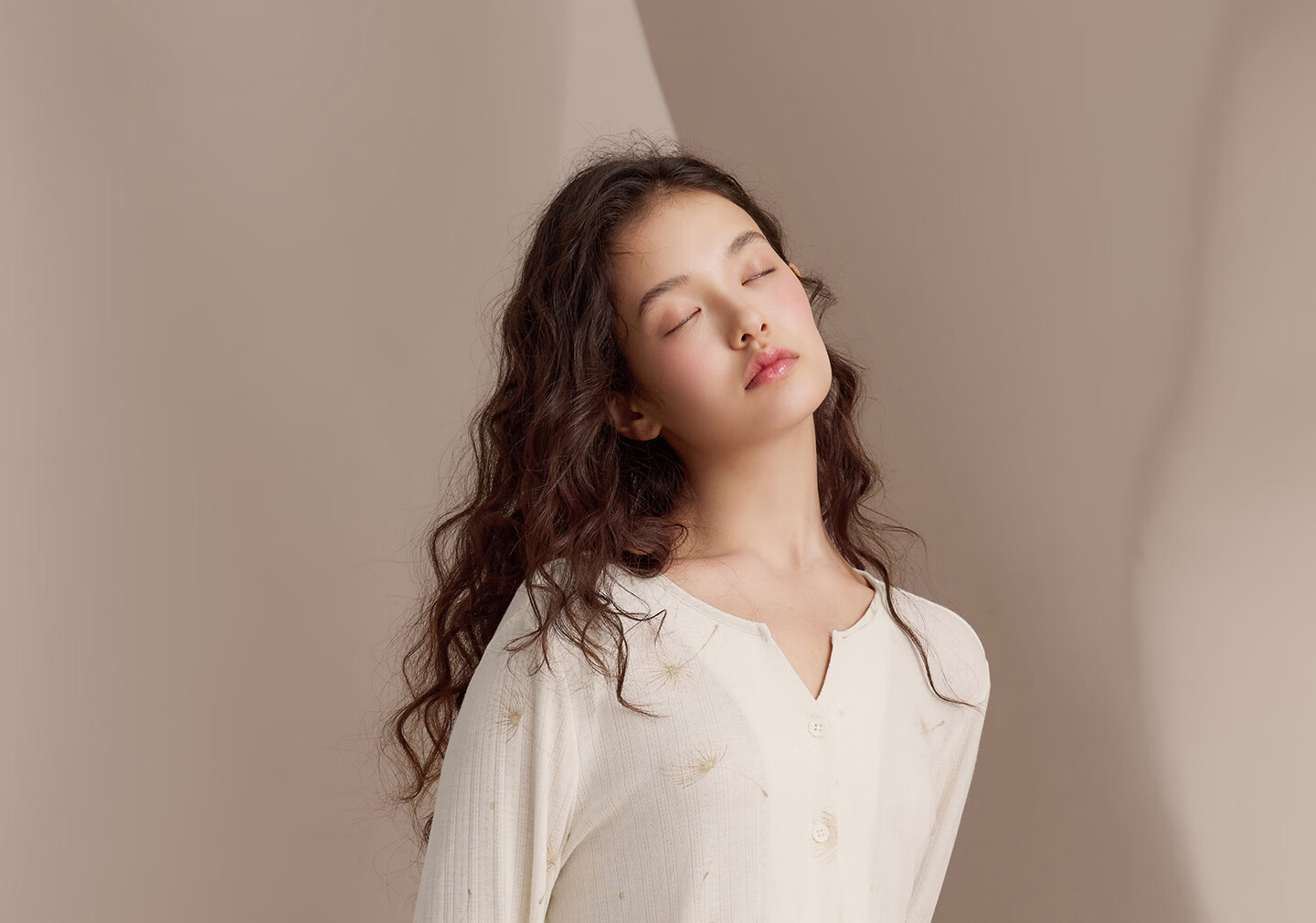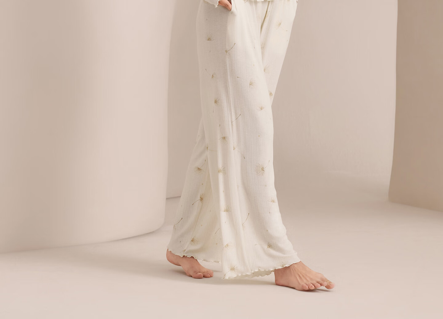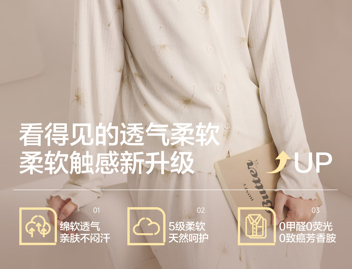 红豆(Hodo)女士长袖睡衣春夏香氛疗愈V领莫代尔印花新款A类可外穿休闲家居服 米糖色 L (165)
