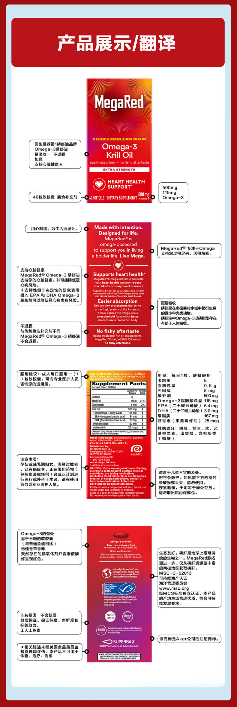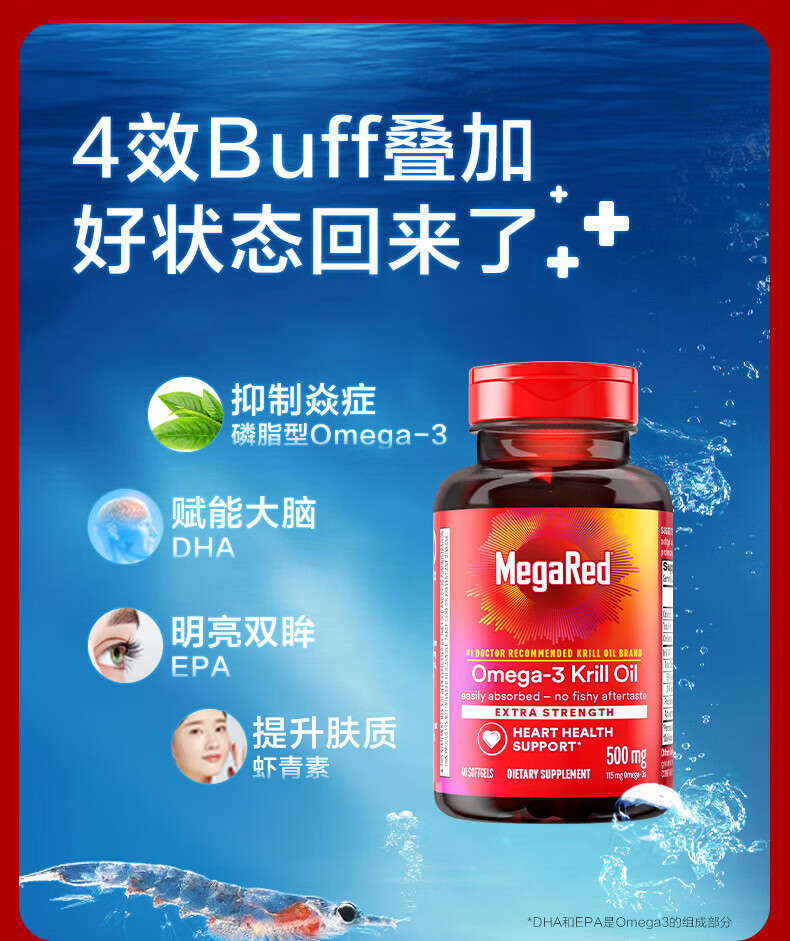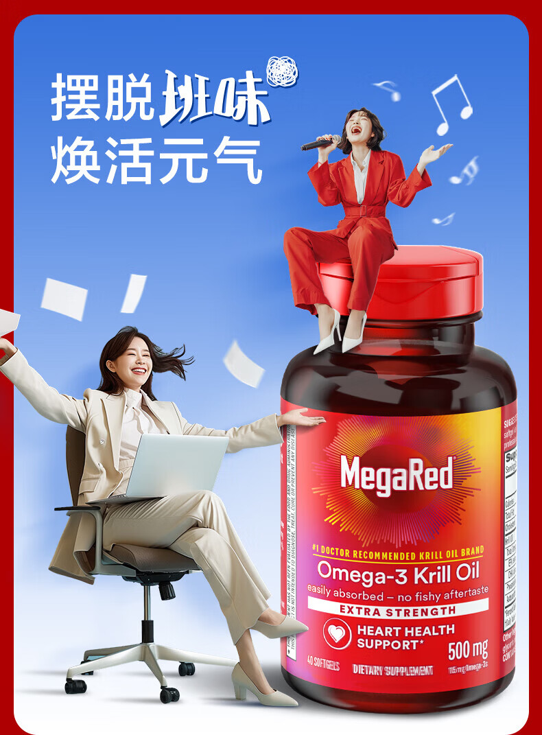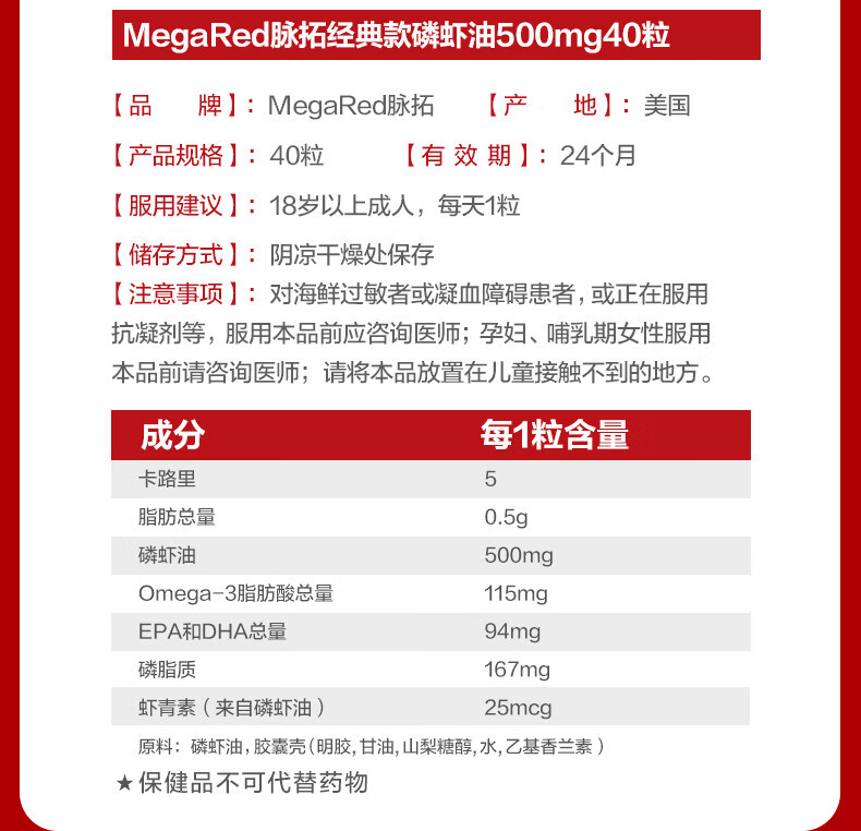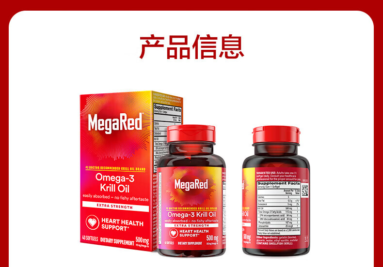 MegaRed脉拓南极磷虾油软胶囊深海鱼油omega-3日常护血管高纯度500mg40粒 【尝鲜装】青春版磷虾油 40粒*1瓶