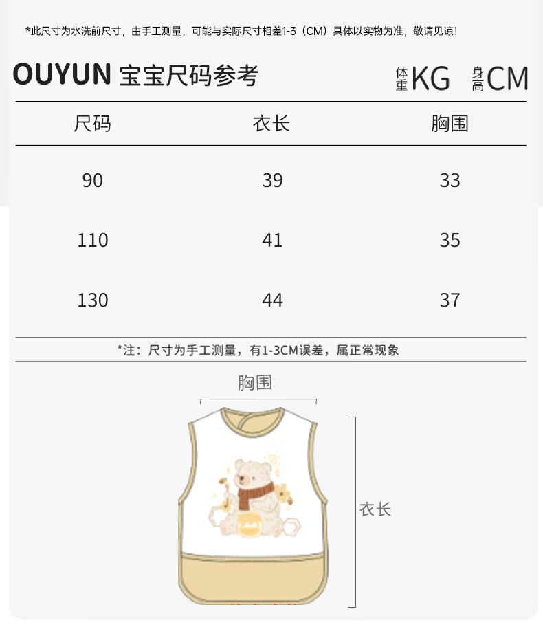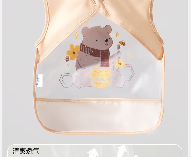 欧孕(OUYUN)吃饭罩衣防水防脏婴儿辅食围兜夏季无袖饭兜围裙反穿衣 熊猫抱抱【防水防污-轻盈透气】 130