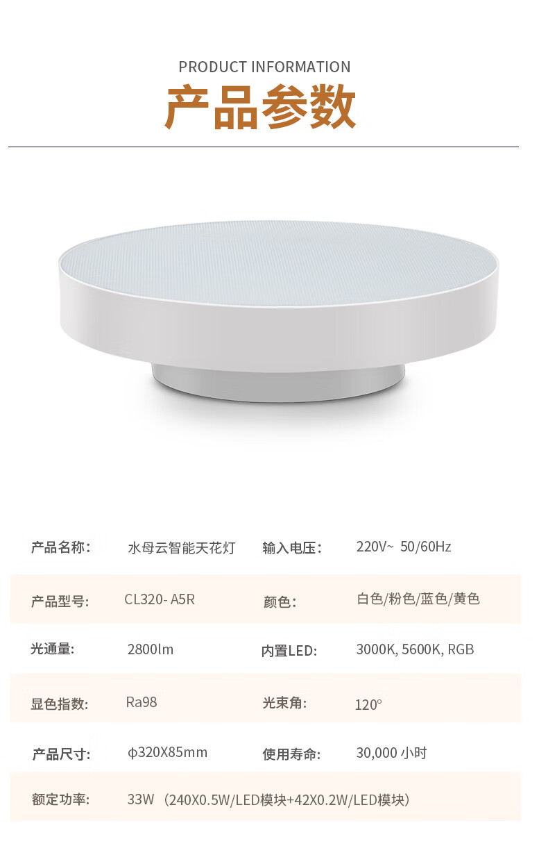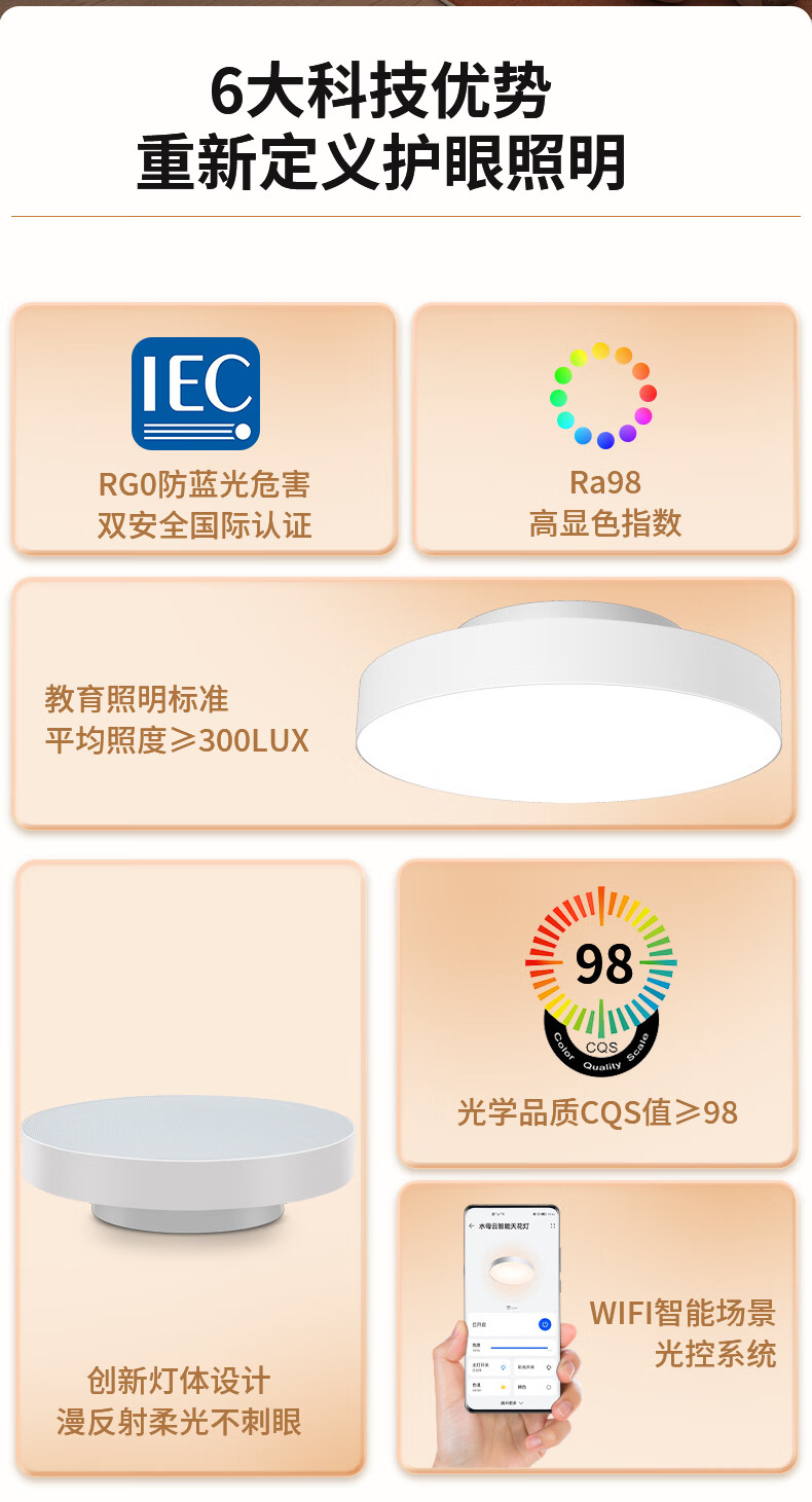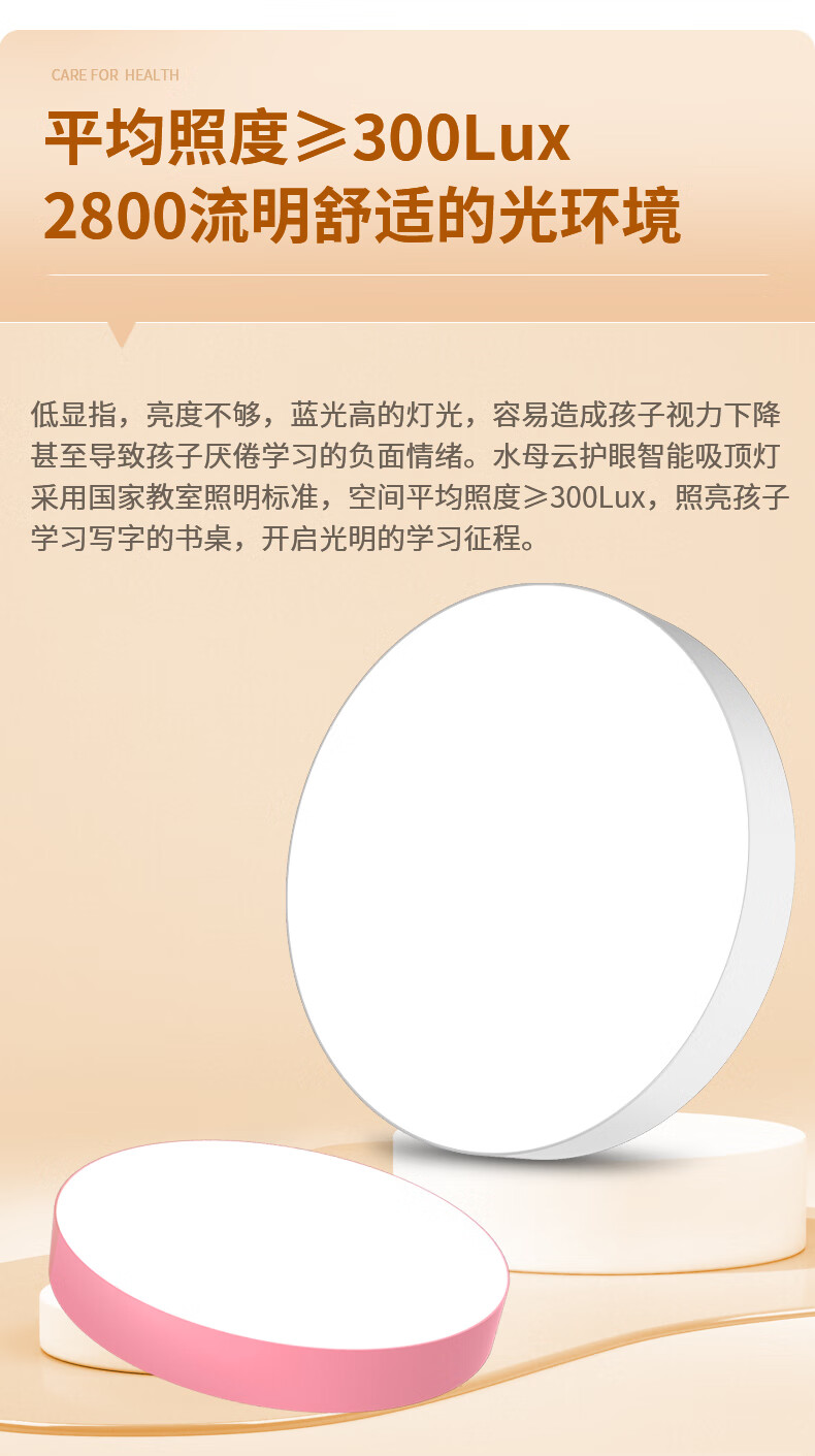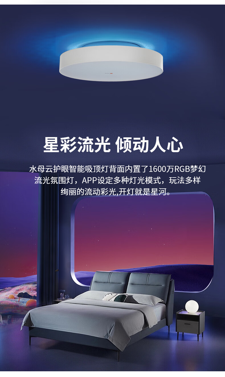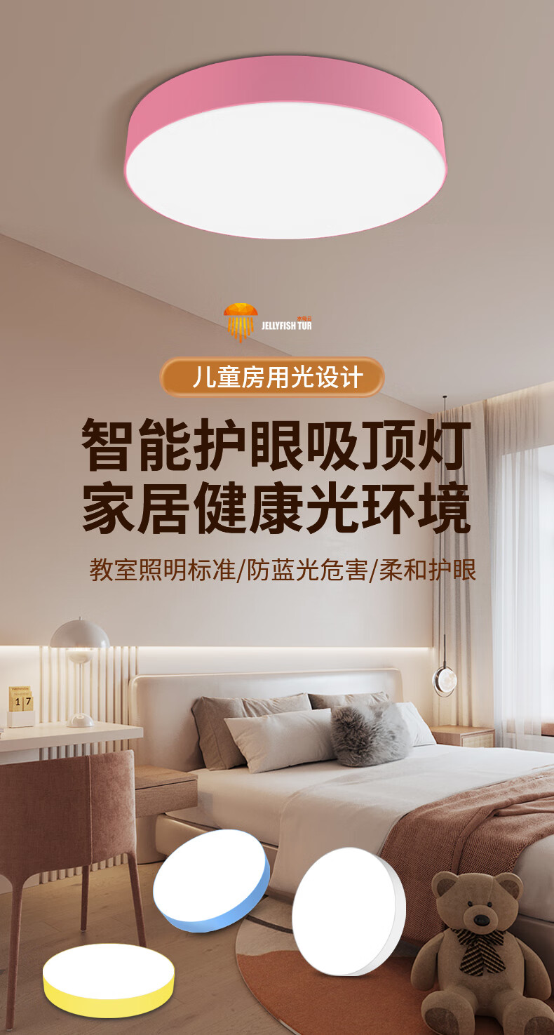 水母云(JELLYFISH TUR)智能全光谱吸顶灯 护眼无蓝光危害无频闪 客厅卧室书房儿童房三防 33W 20㎡内适用 2800lm 暮雪白【鸿蒙智联无极调光】 吸顶+餐吊二合一款