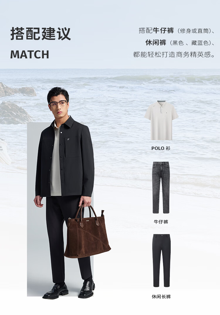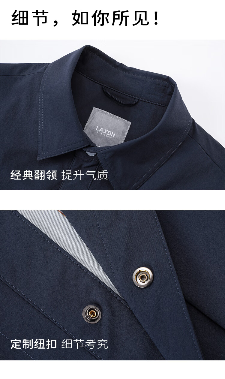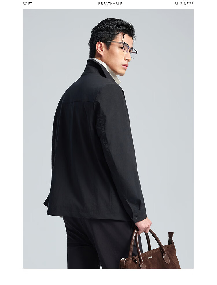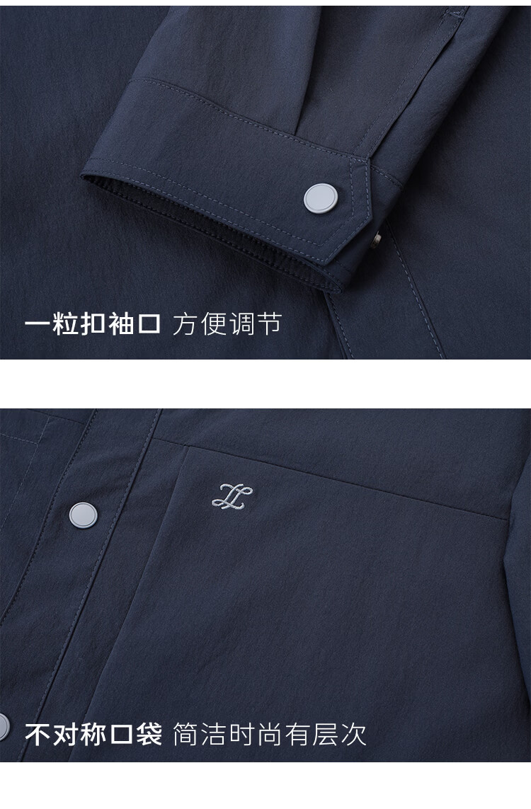 莱克斯顿外套男春夏新款衬衫式夹克外套商务休闲宽松翻领上衣男装 深黑 S