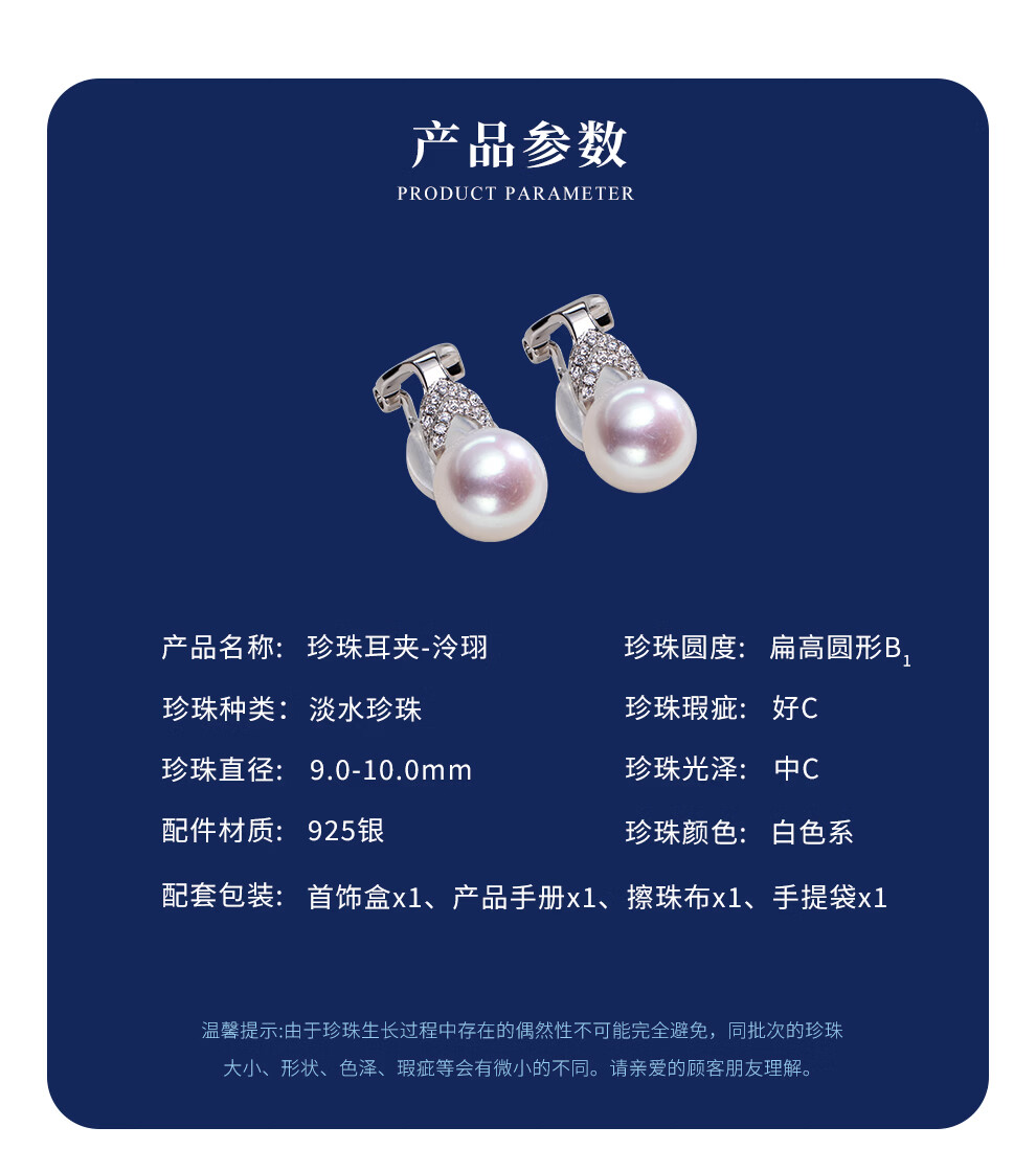 南珠宫泠珝925银淡水珍珠耳环佩戴方便珍珠耳夹简约百搭生日礼物送女友 9.0-10.0mm 925银淡水珍珠耳夹