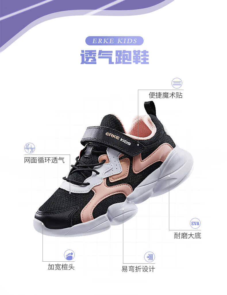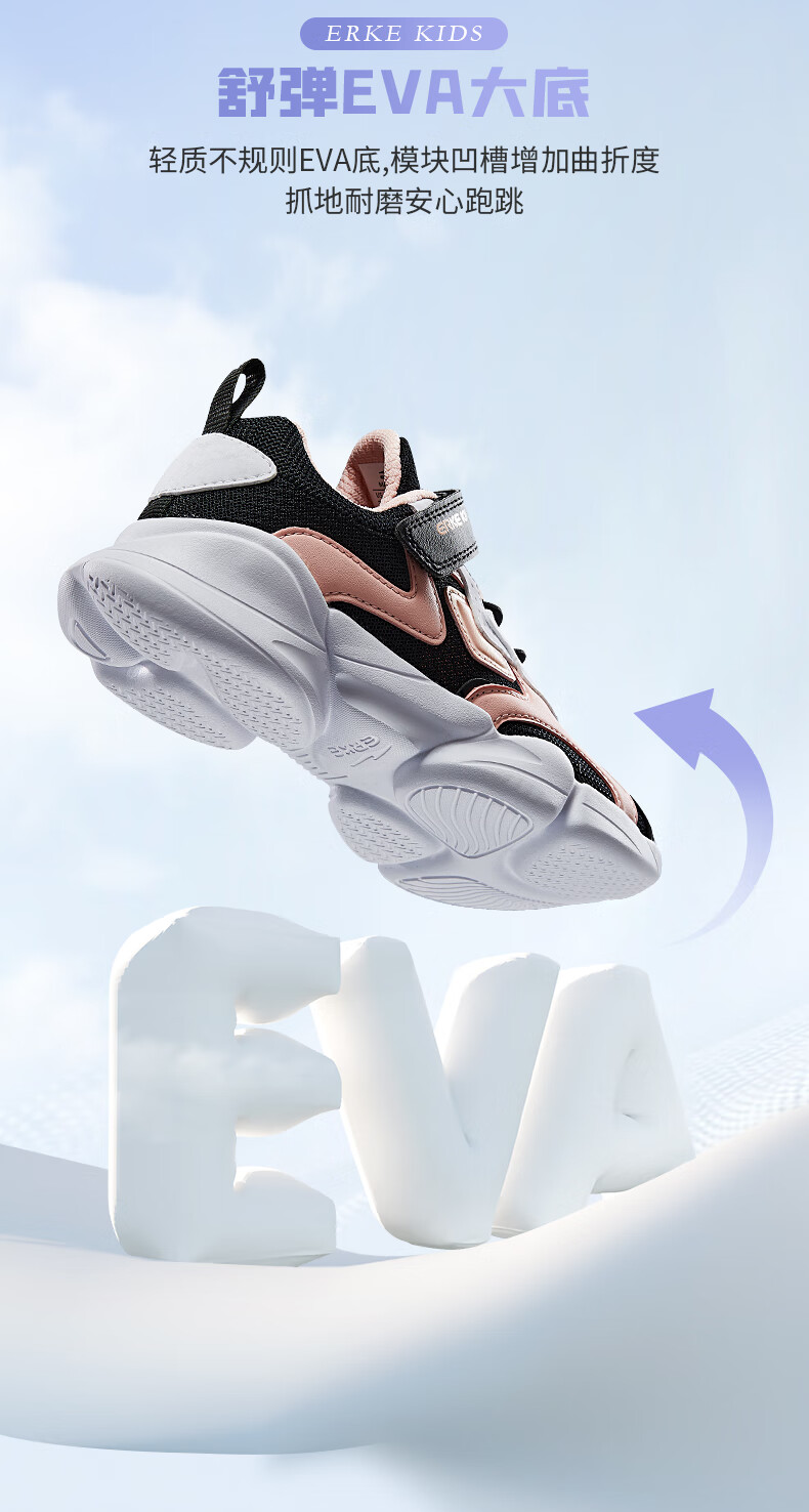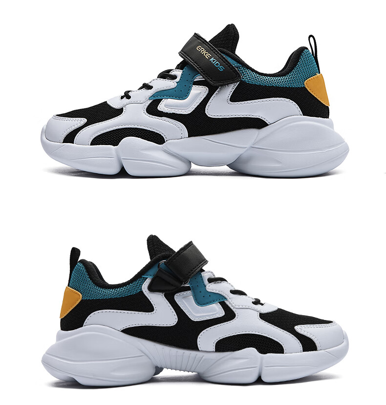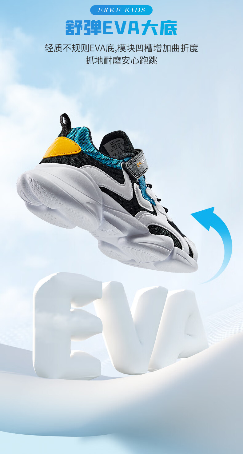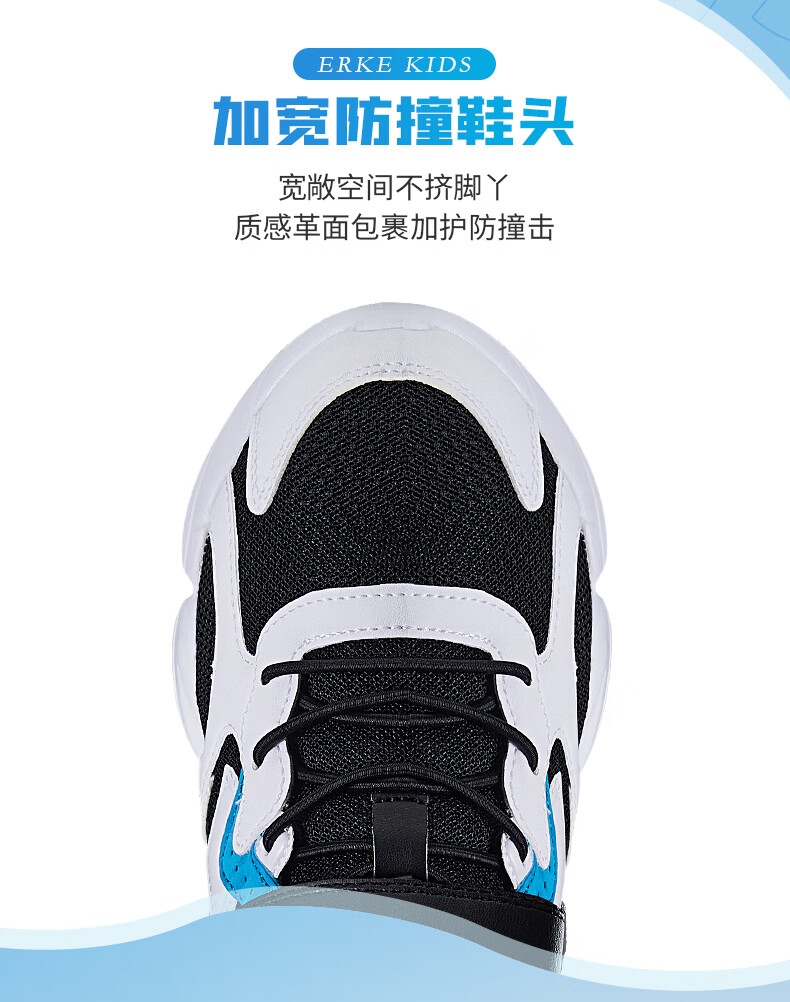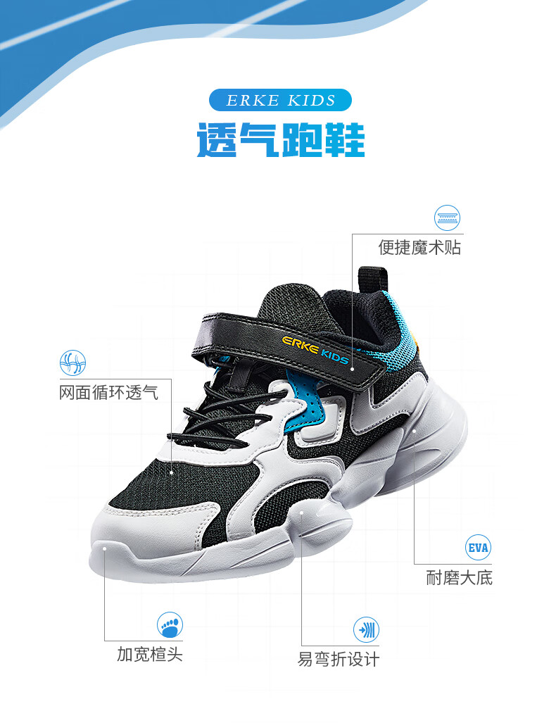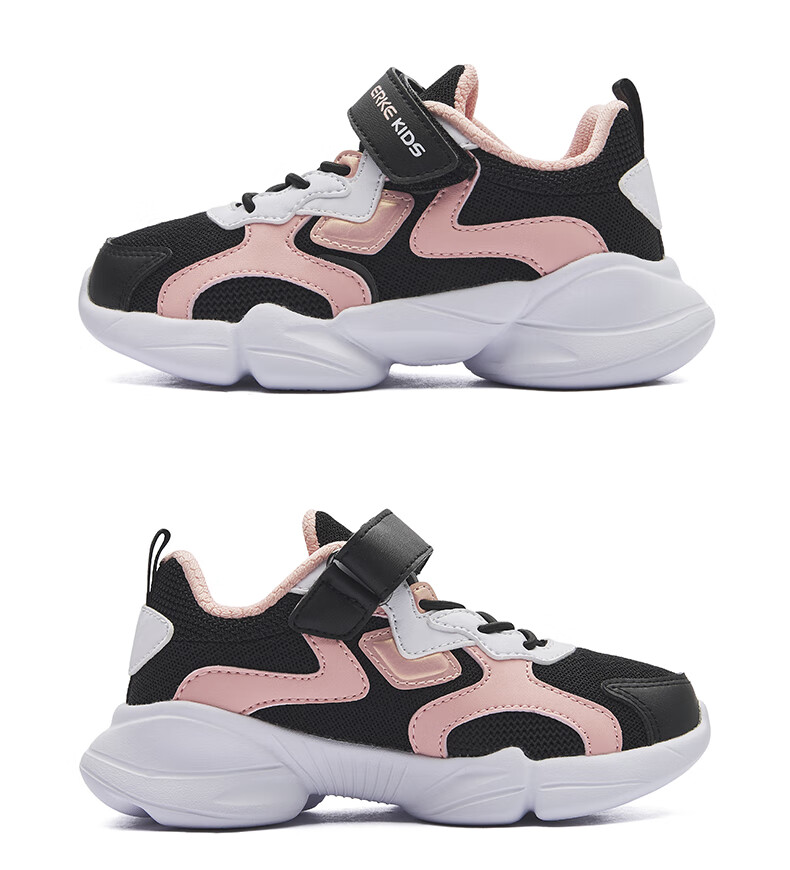 鸿星尔克(ERKE)童鞋中小童男童常规慢跑鞋儿童运动鞋63122120096正黑/正白34