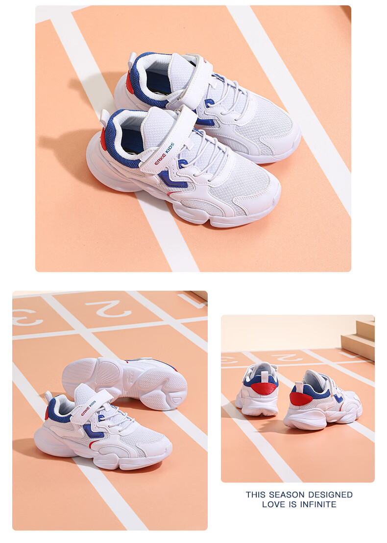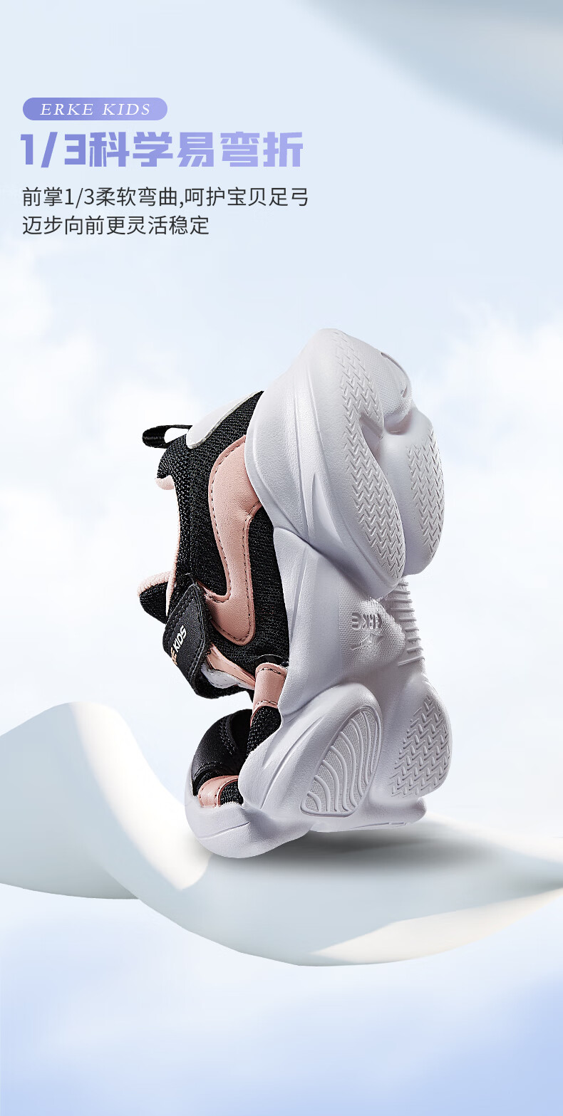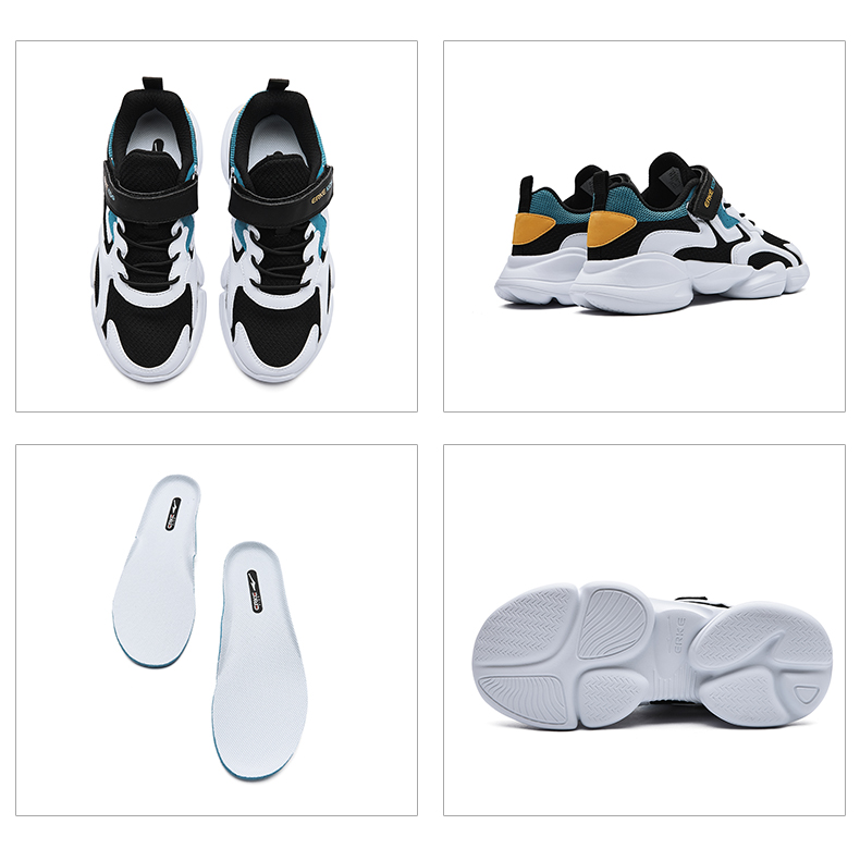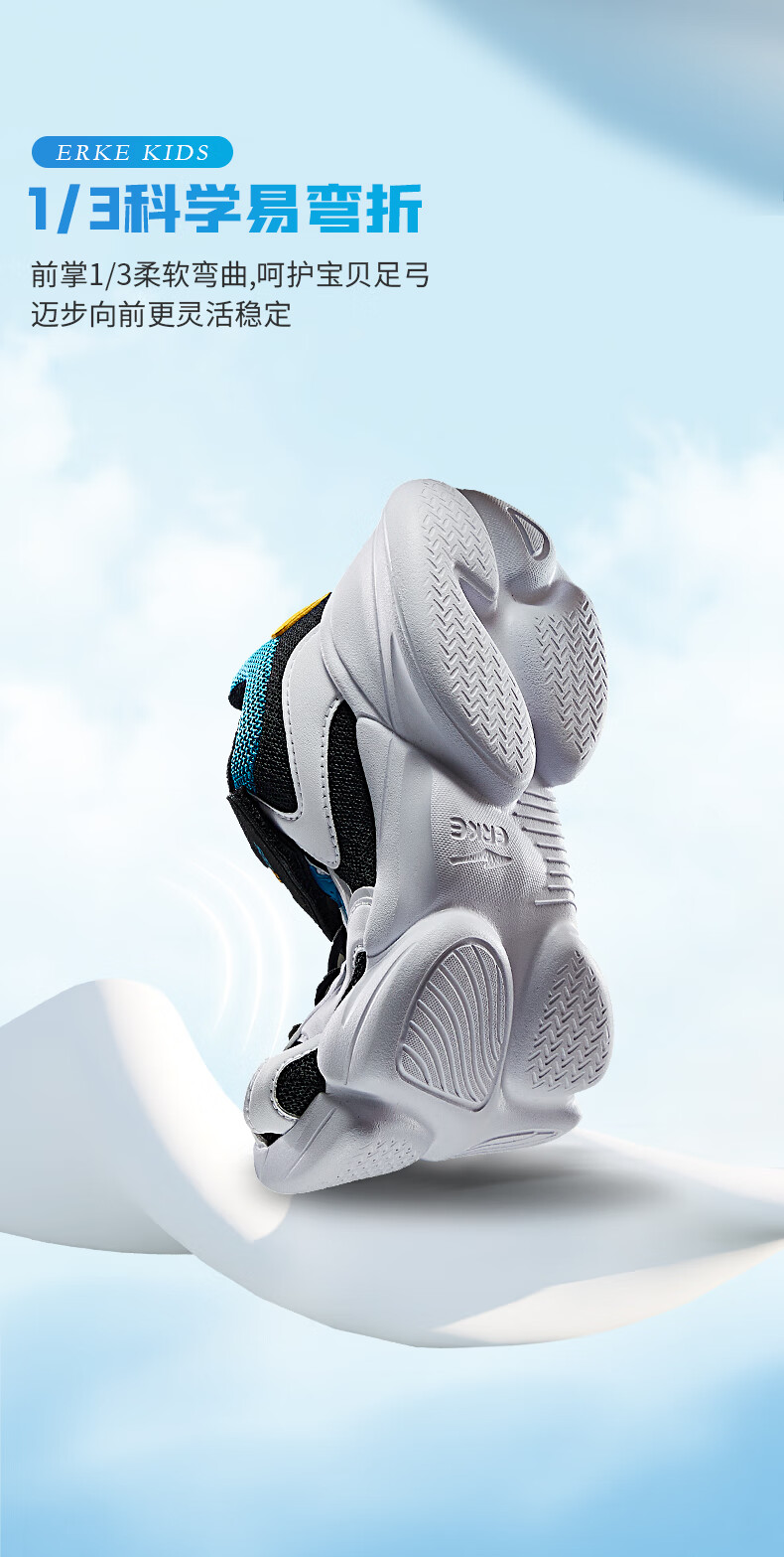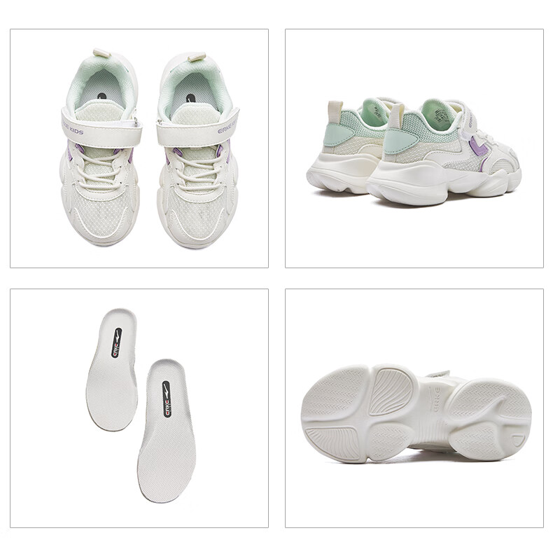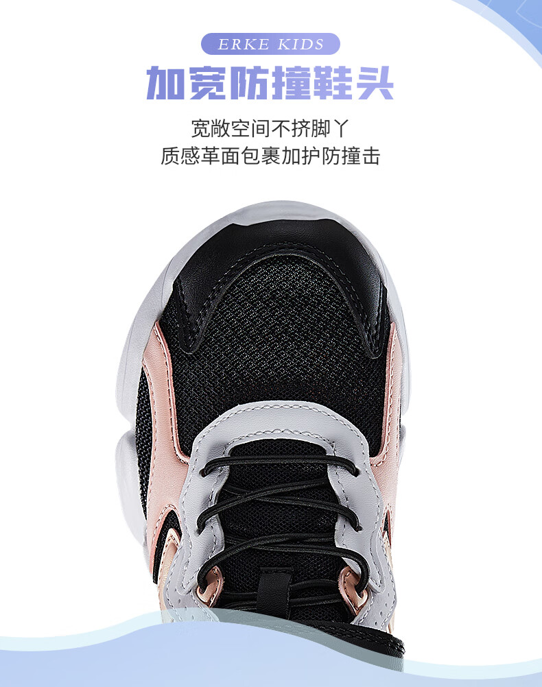 鸿星尔克(ERKE)童鞋中小童男童常规慢跑鞋儿童运动鞋63122120096正黑/正白34
