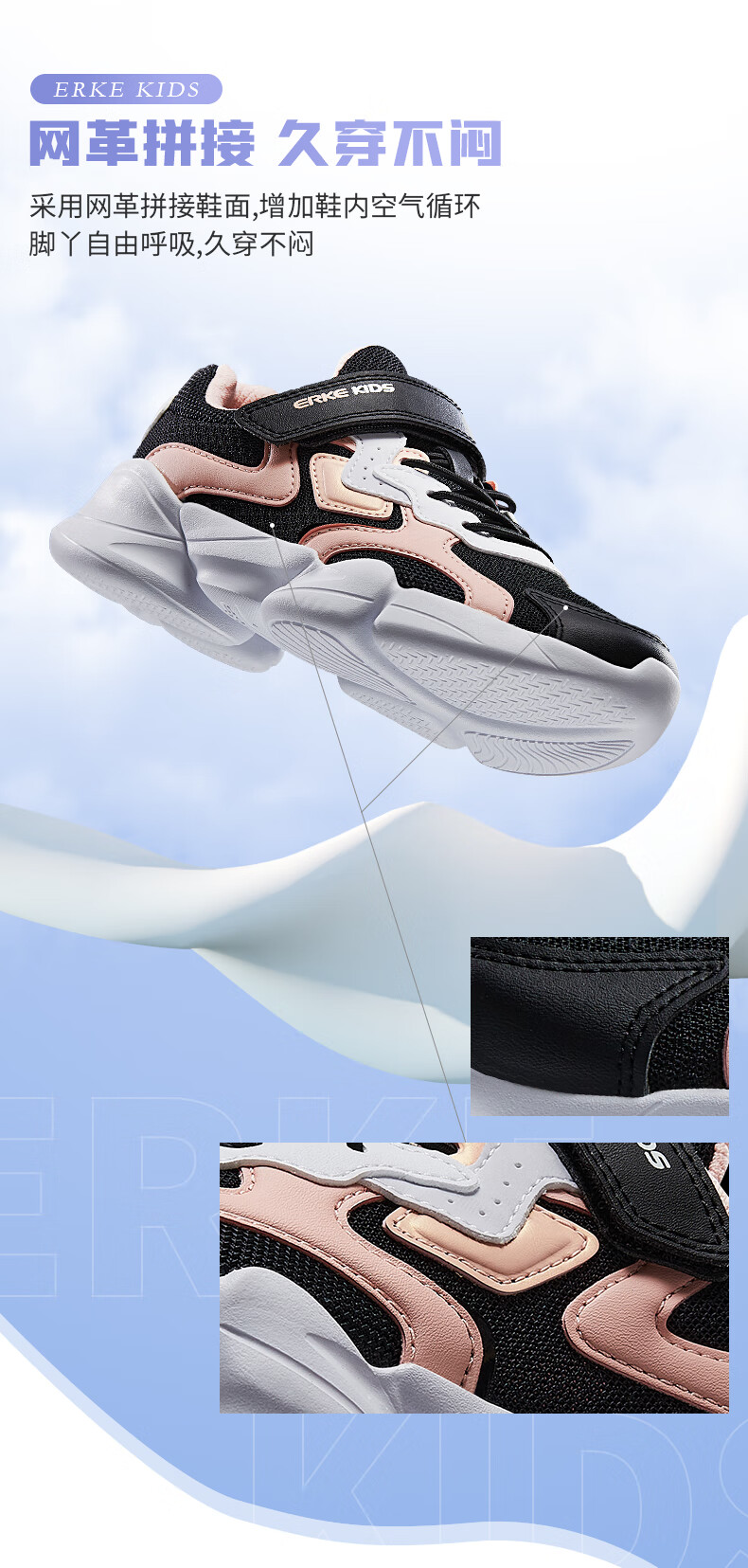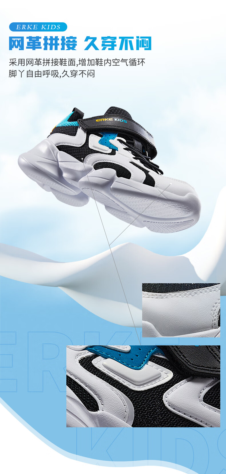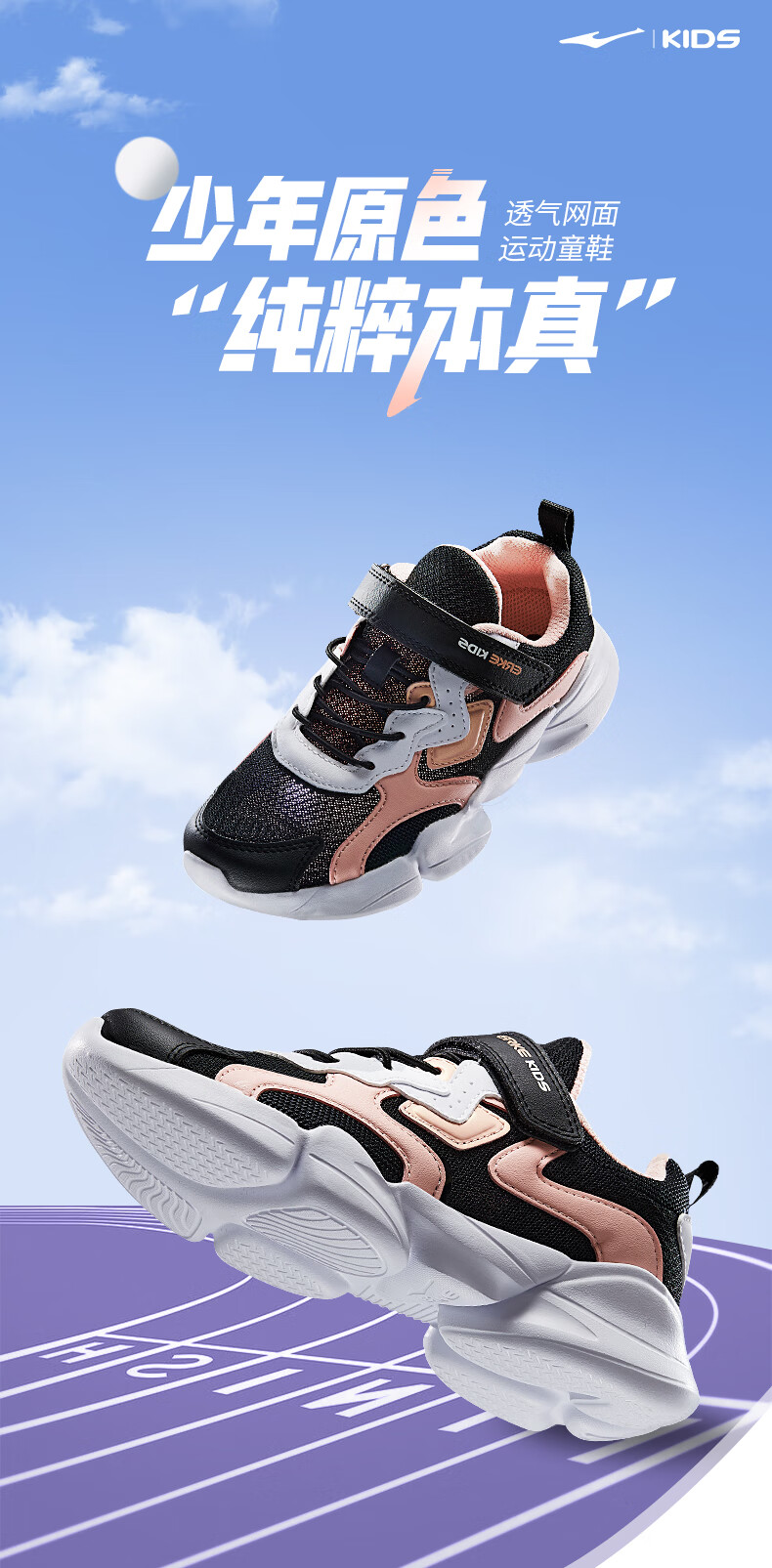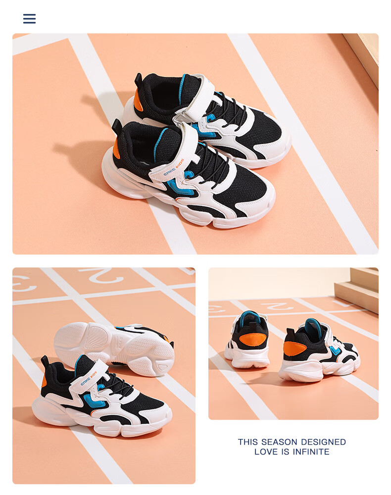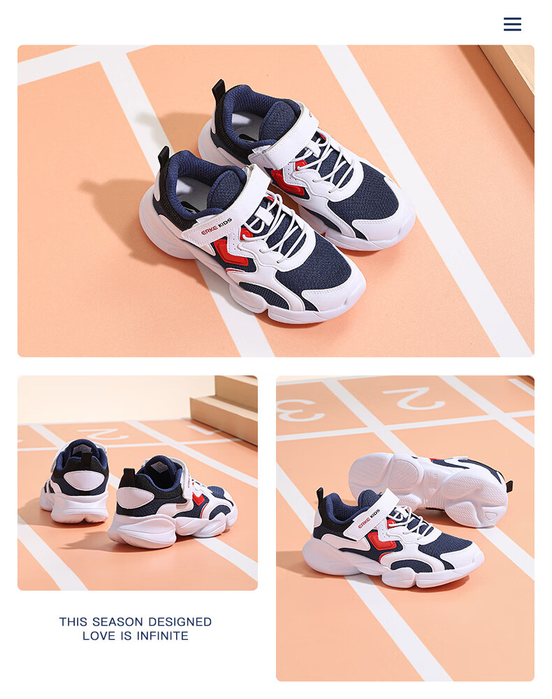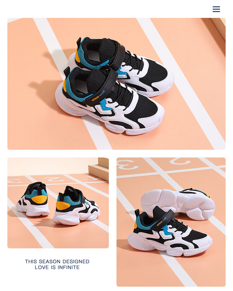 鸿星尔克(ERKE)童鞋中小童男童常规慢跑鞋儿童运动鞋63122120096正黑/正白34