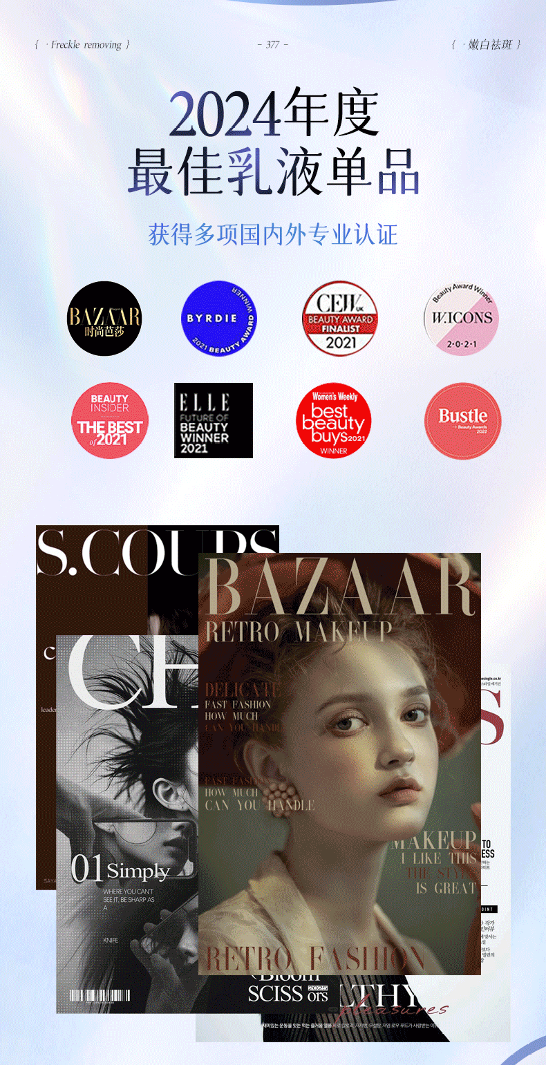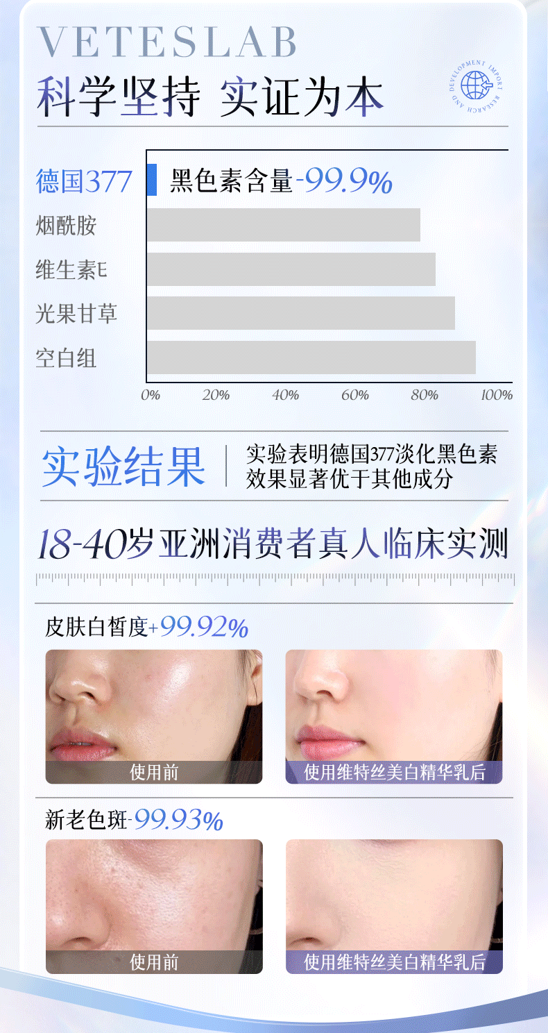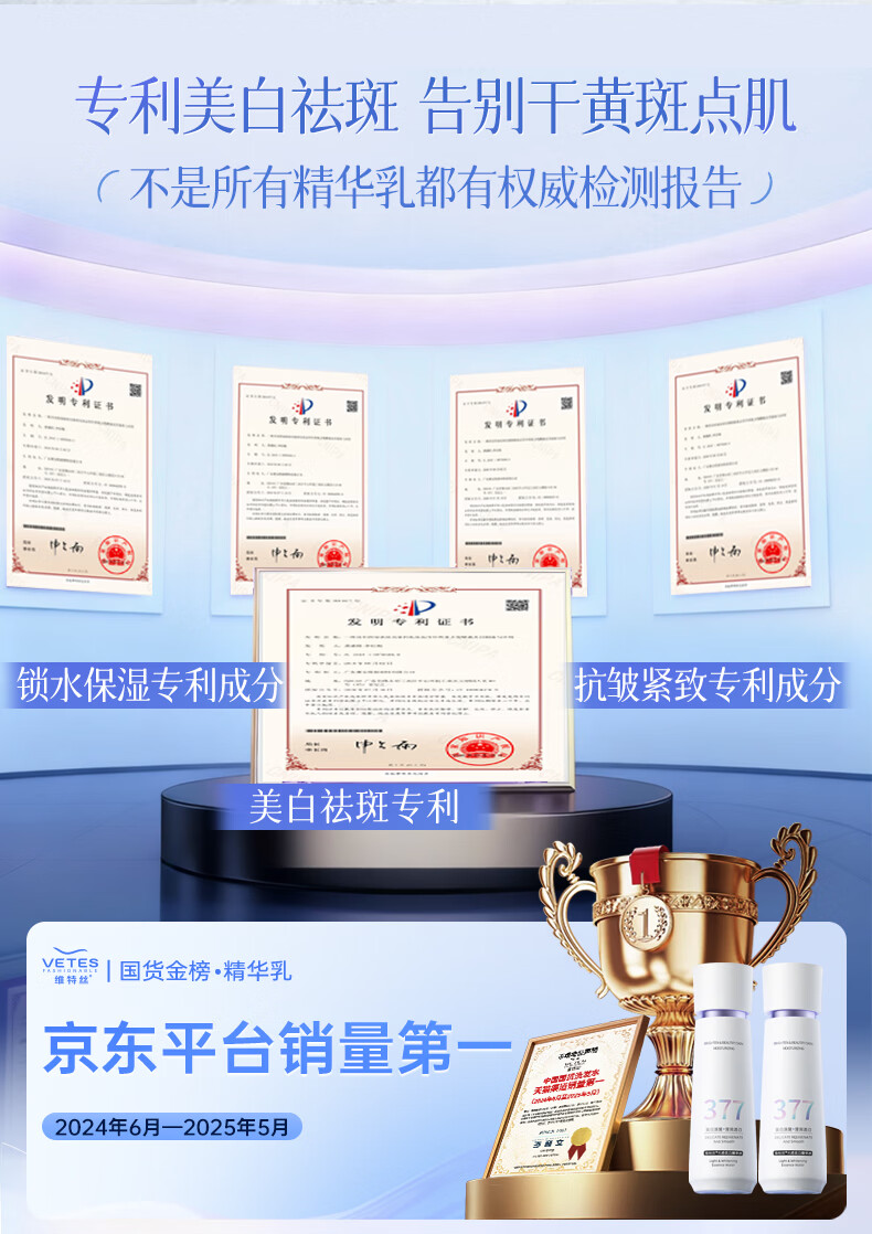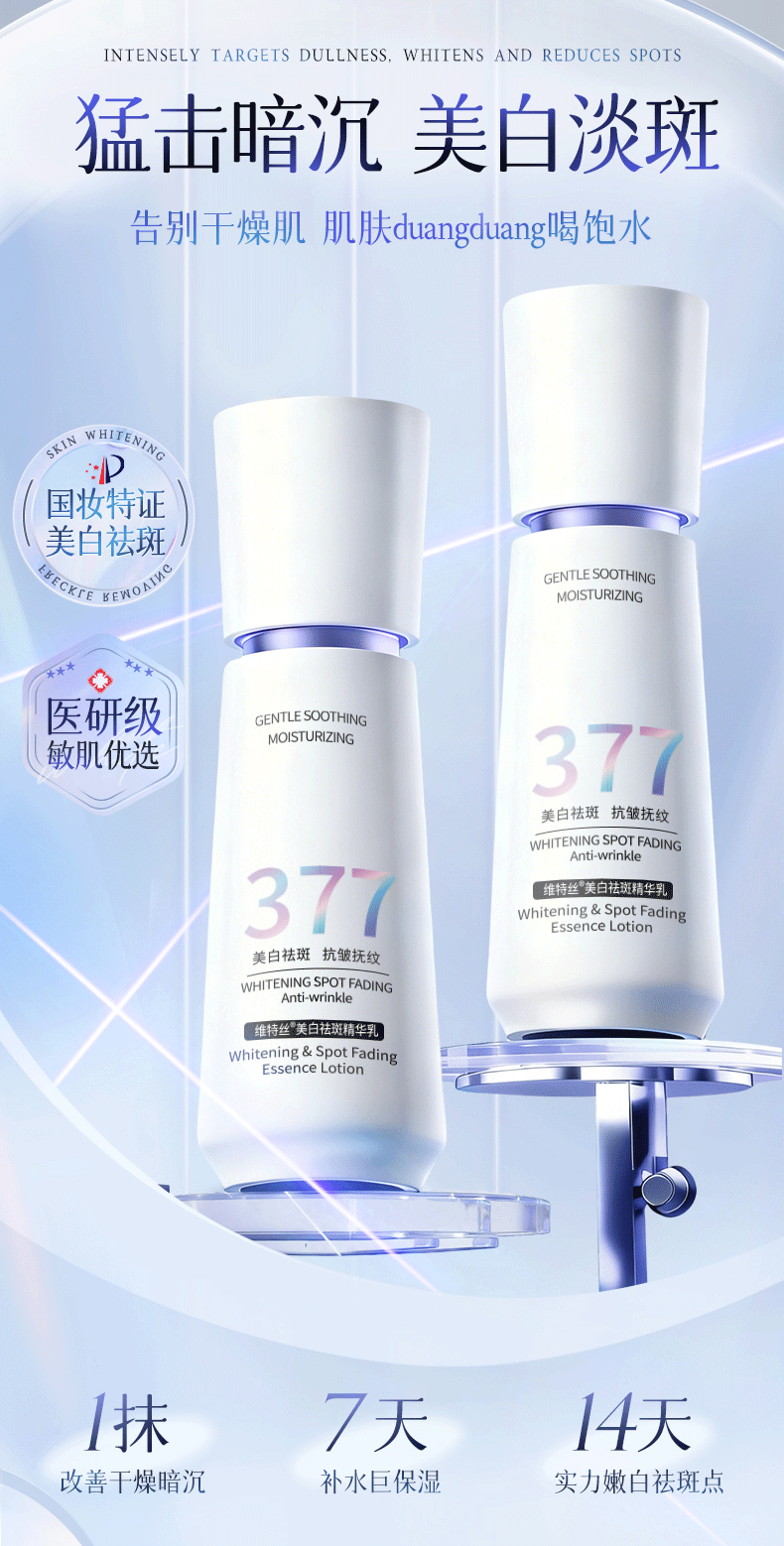 维特丝377水乳液精华美白祛斑补水保湿男女士护肤品淡化黑色素舒缓修护