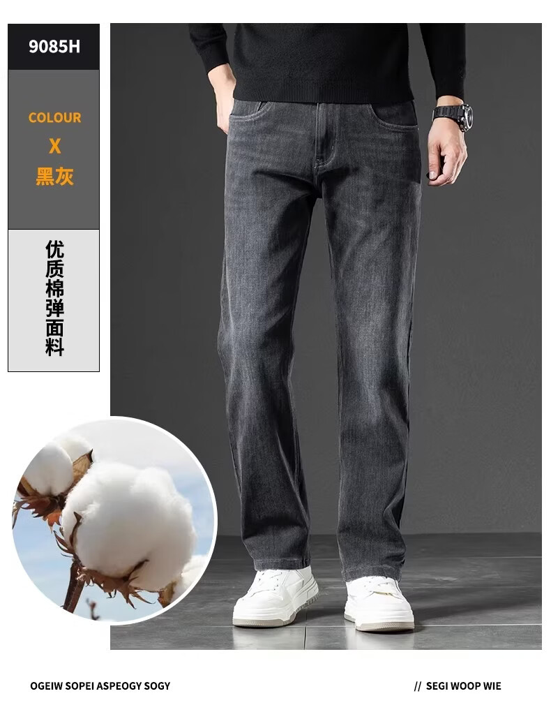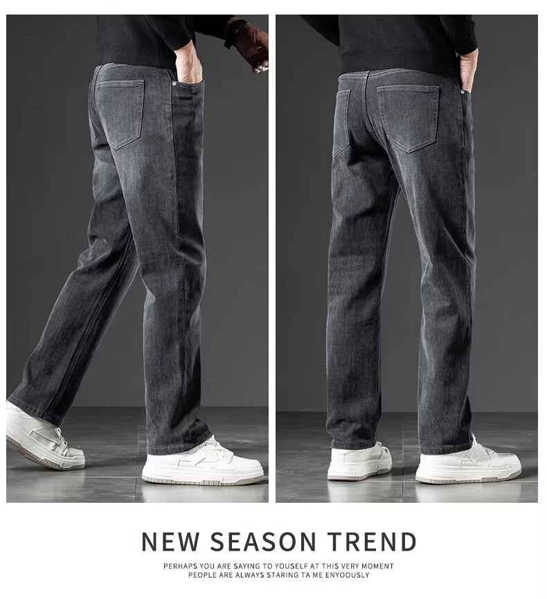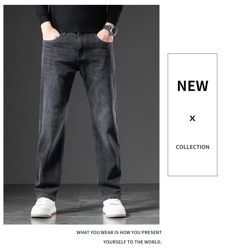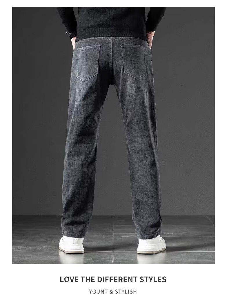 真维斯(Jeanswest)2026秋新款美式潮牌牛仔裤男士复古高街宽松阔腿直筒休闲长裤子男 黑灰色【秋冬厚款】 28
