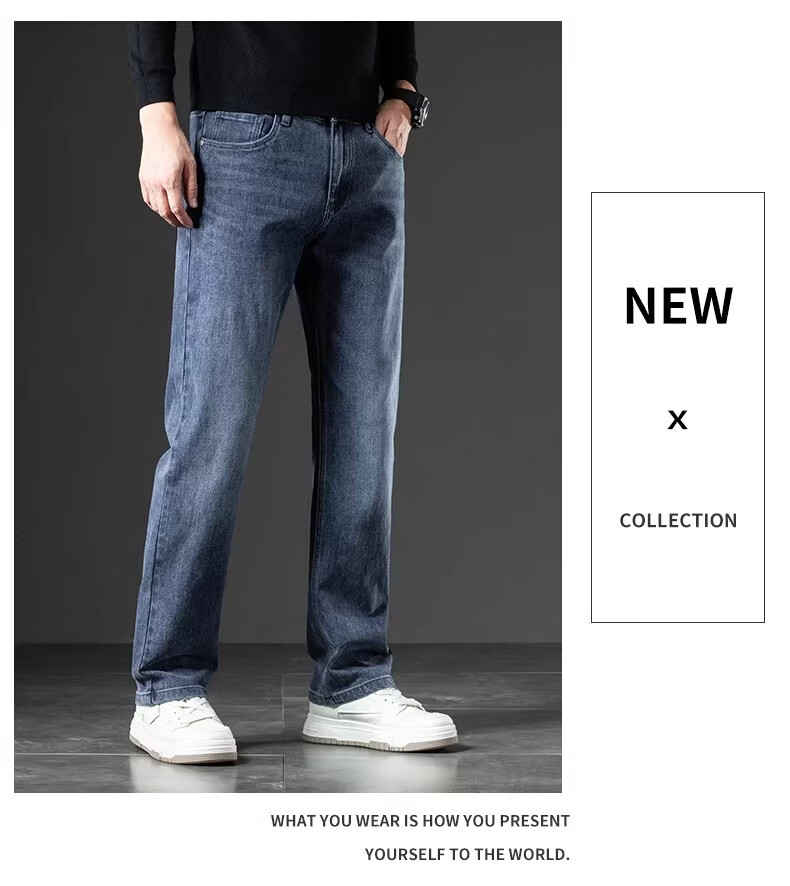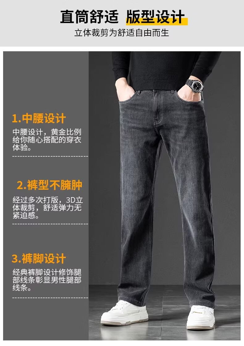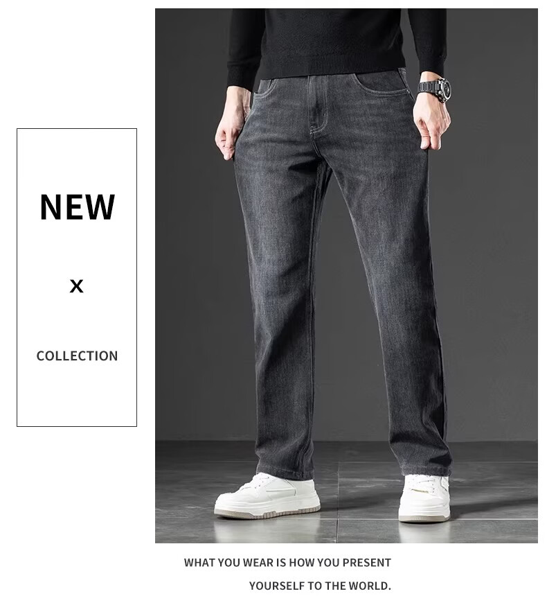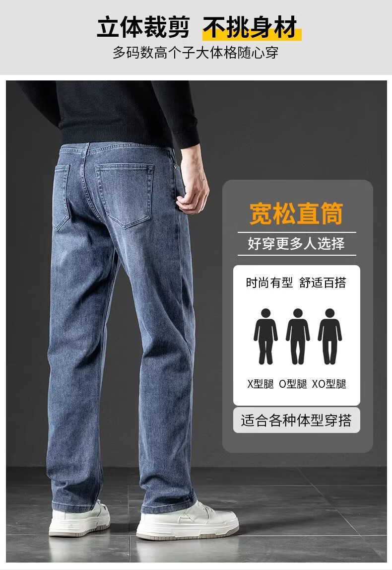 真维斯(Jeanswest)2026秋新款美式潮牌牛仔裤男士复古高街宽松阔腿直筒休闲长裤子男 黑灰色【秋冬厚款】 28