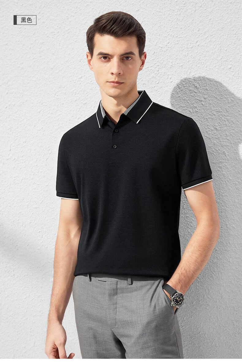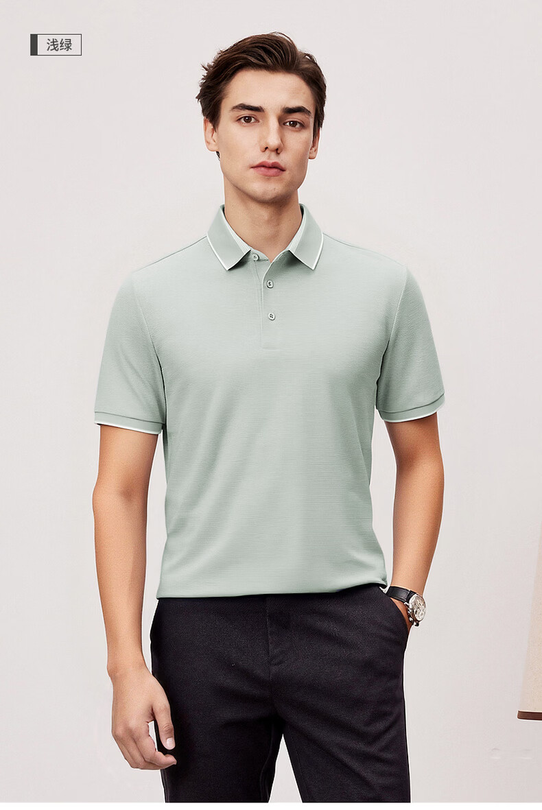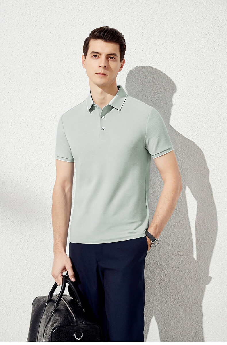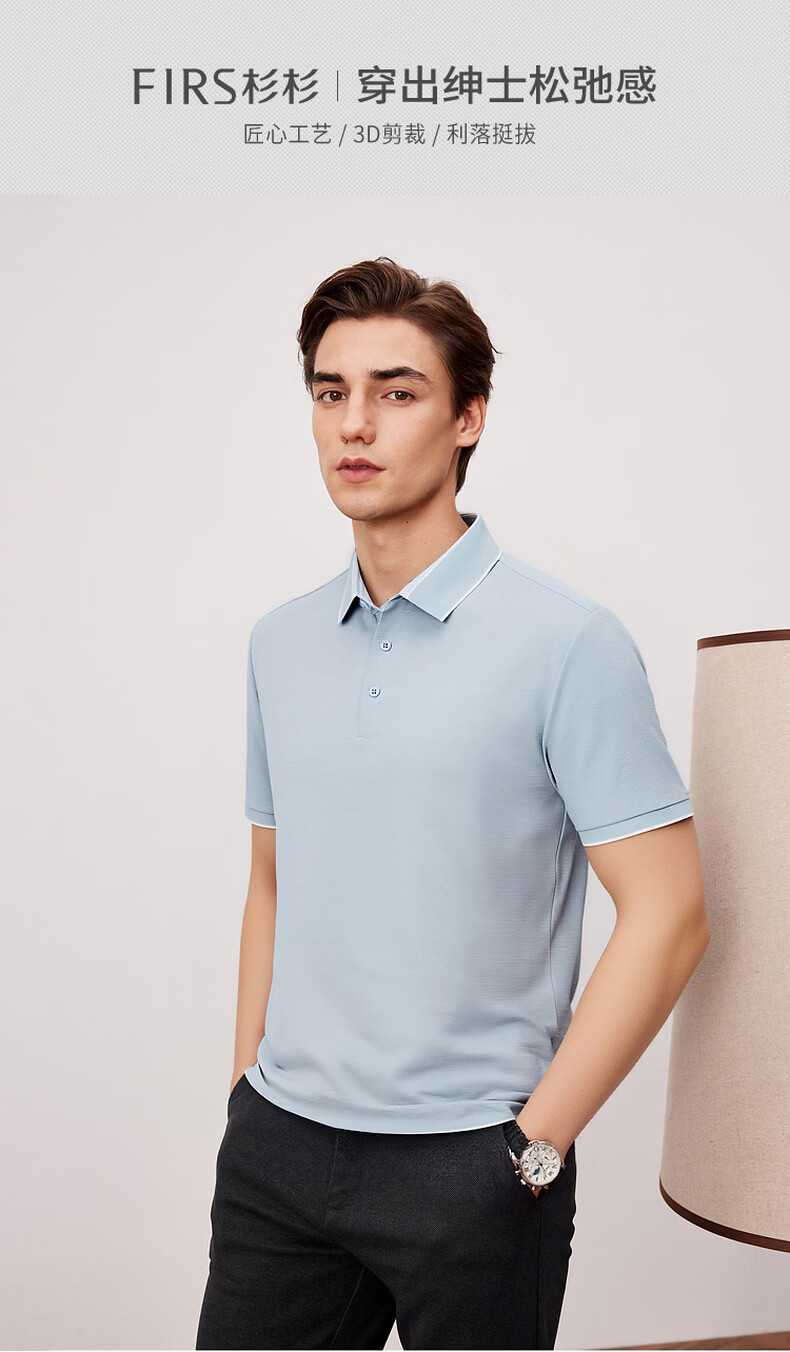 杉杉夏季新款男士撞色短袖Polo衫弹力翻领休闲商务 灰蓝 M