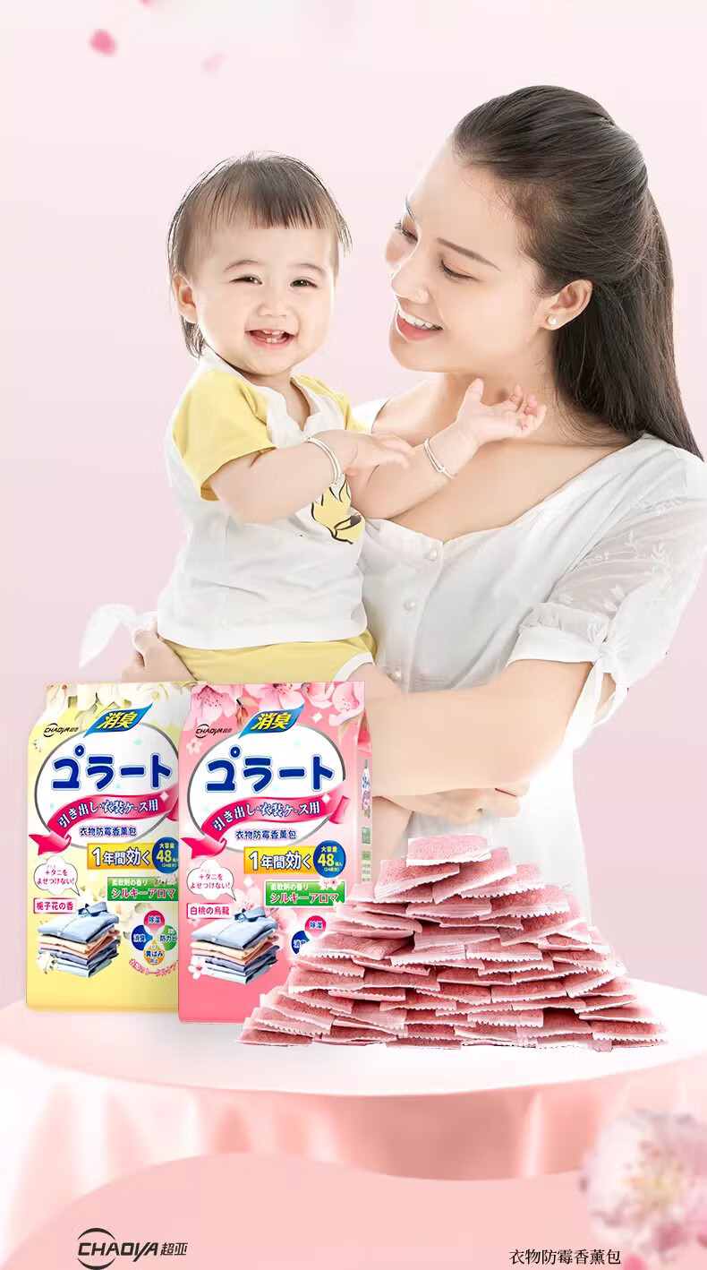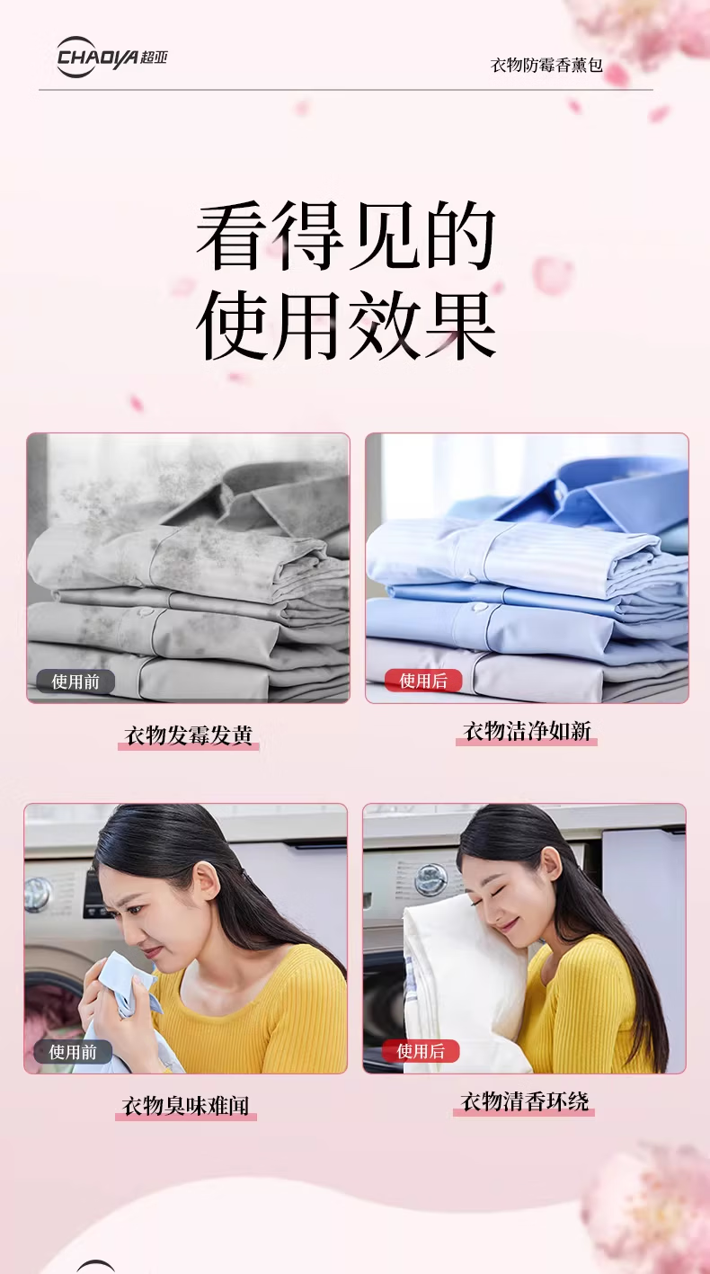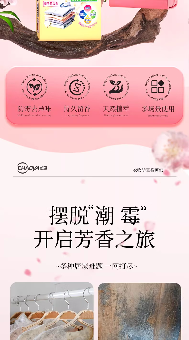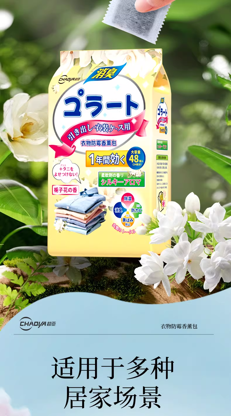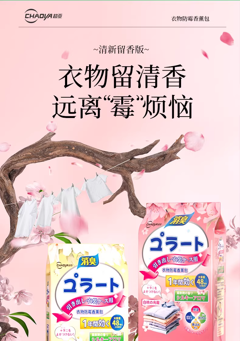 超亚花香香薰包衣柜去潮湿香氛衣物防霉卧室除臭异味鞋柜室内非樟脑丸 防潮防霉【白桃乌龙香+栀子花香共96小包】