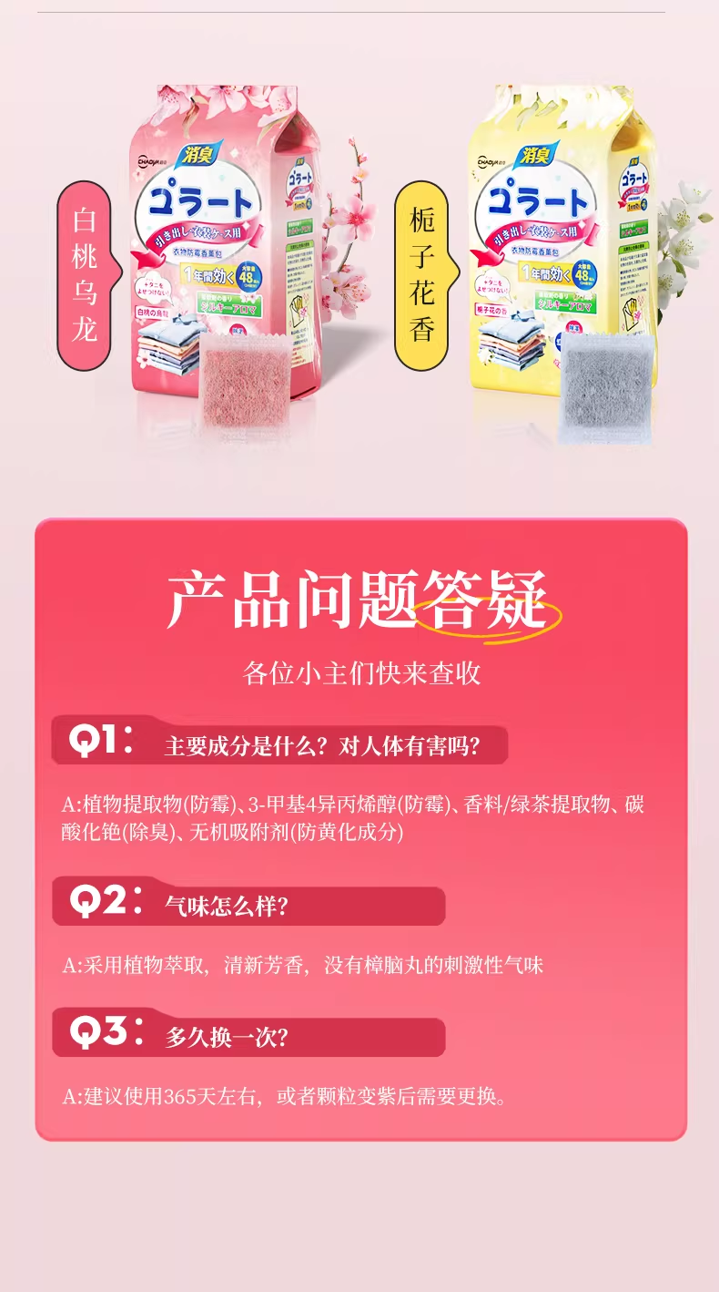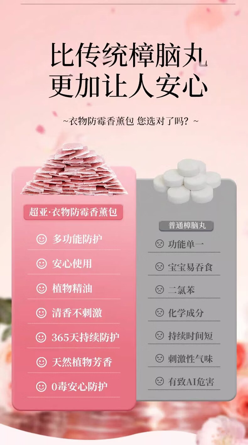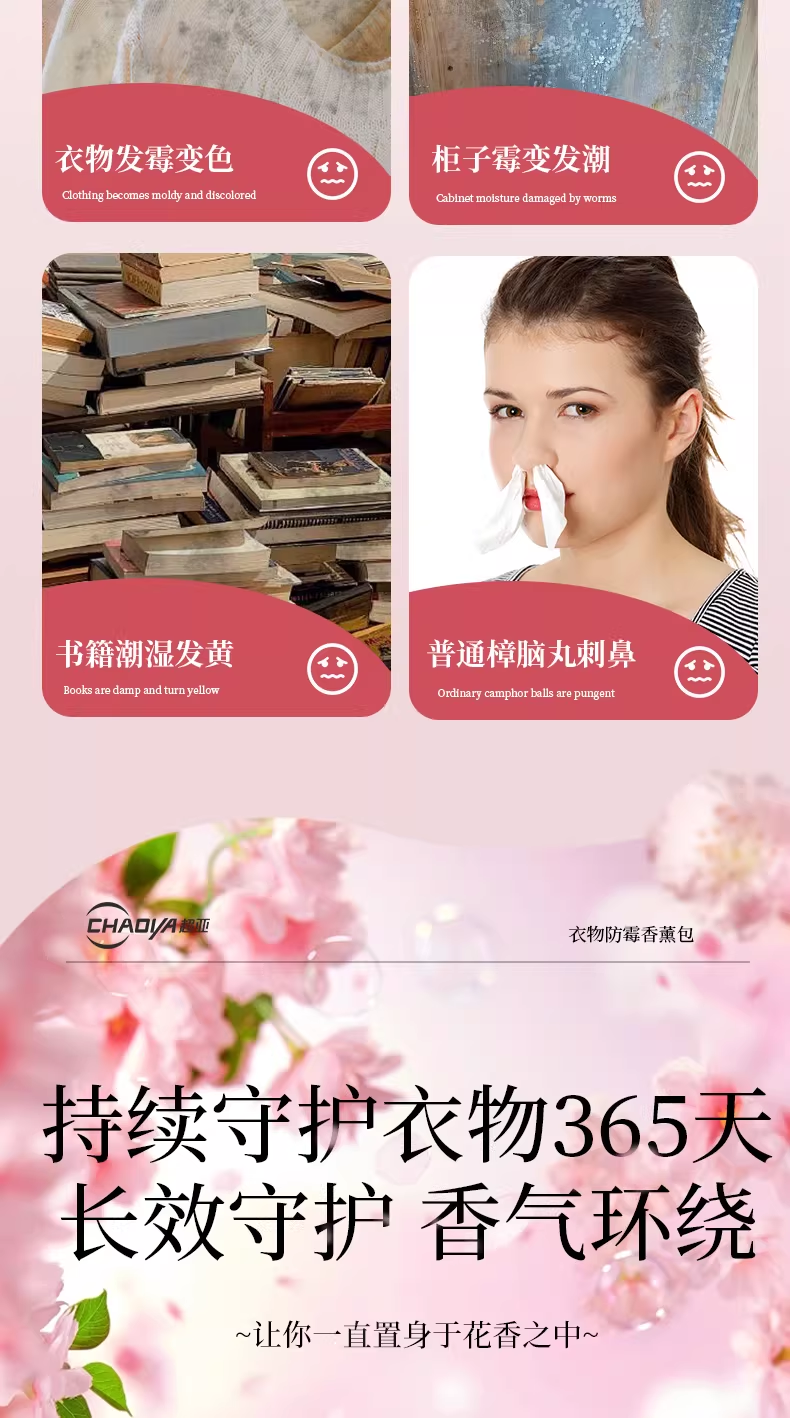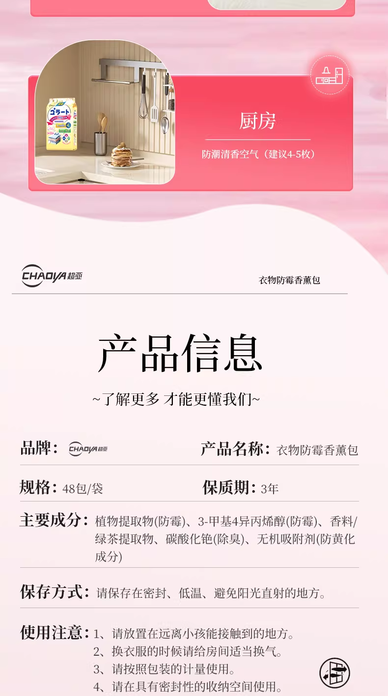 超亚花香香薰包衣柜去潮湿香氛衣物防霉卧室除臭异味鞋柜室内非樟脑丸 防潮防霉【白桃乌龙香+栀子花香共96小包】