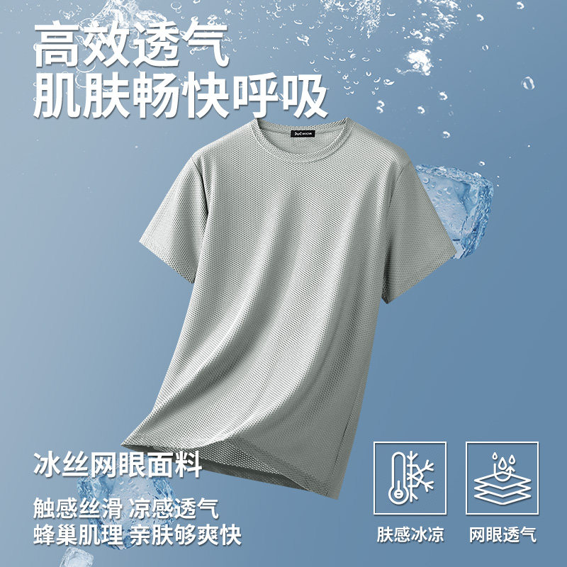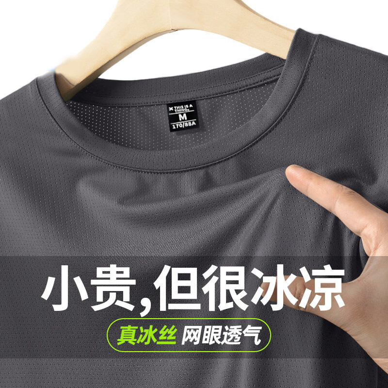 【买2件送1件】短袖t恤男2026夏季冰丝休闲大码运动透气上衣CJDP 短袖【网眼】深灰 L 【赠品可选尺码】