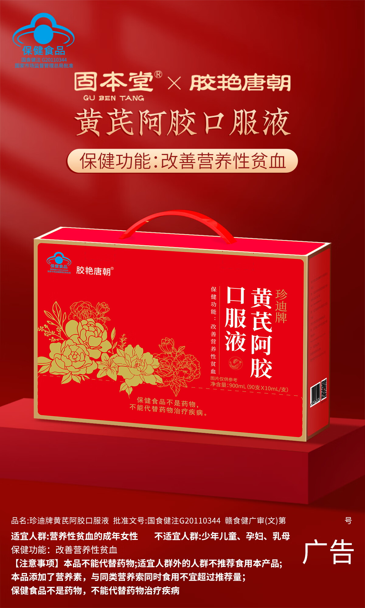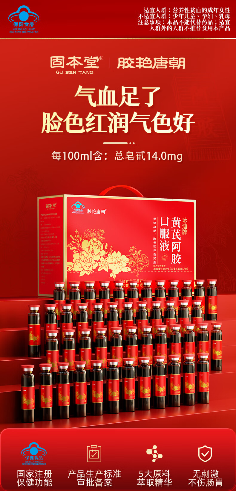 固本堂黄芪补气补血口服液补气血女补气养血提高免疫力睡眠养生营养品
