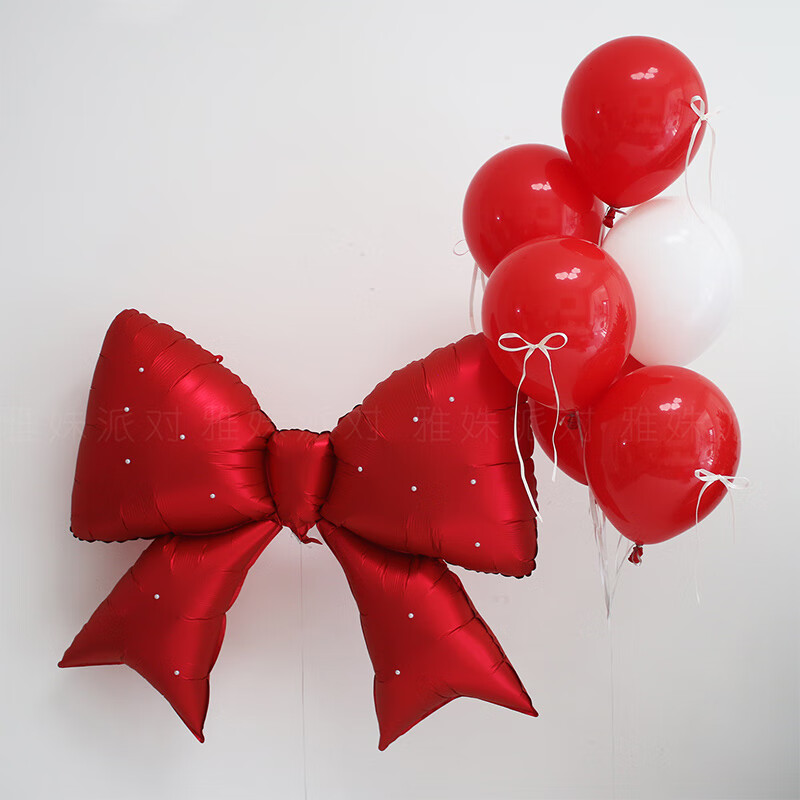 丽庆过新年春节红色珍珠蝴蝶结装饰气球大号铝膜女孩生日写真道具场景 单色蝴蝶结-哑光红
