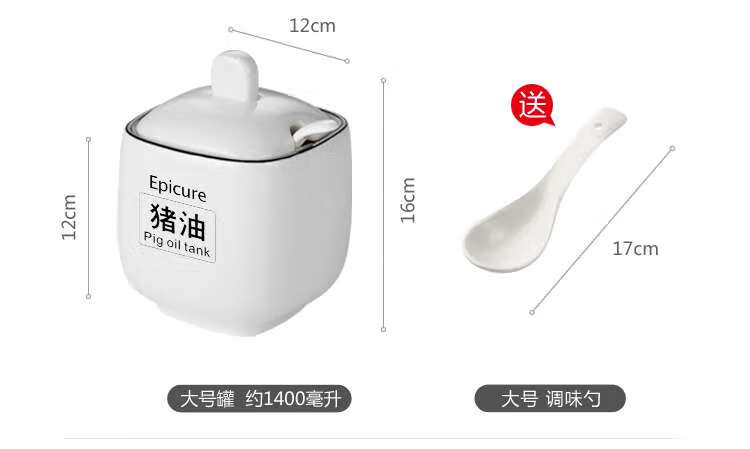 HX家用耐高温陶瓷猪油罐厨房红油罐子油泼辣子罐辣椒罐荤油罐装油 黑线方罐大中小各1个