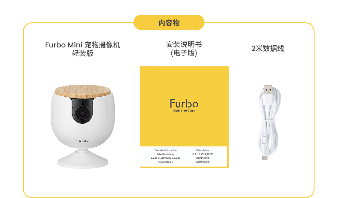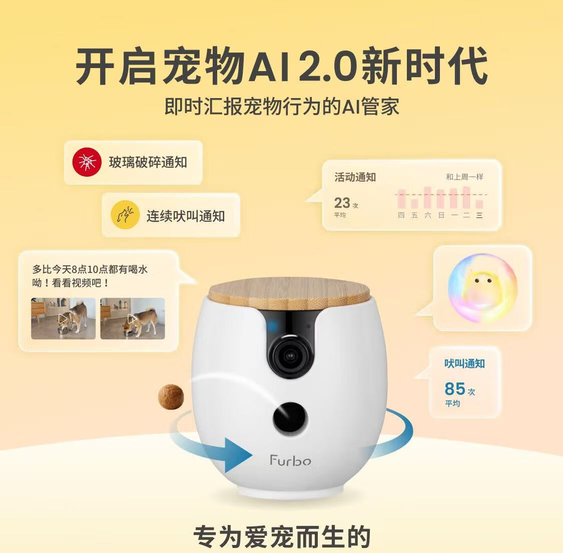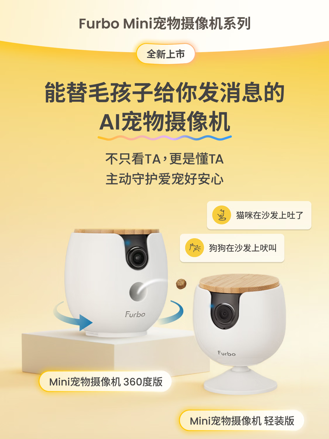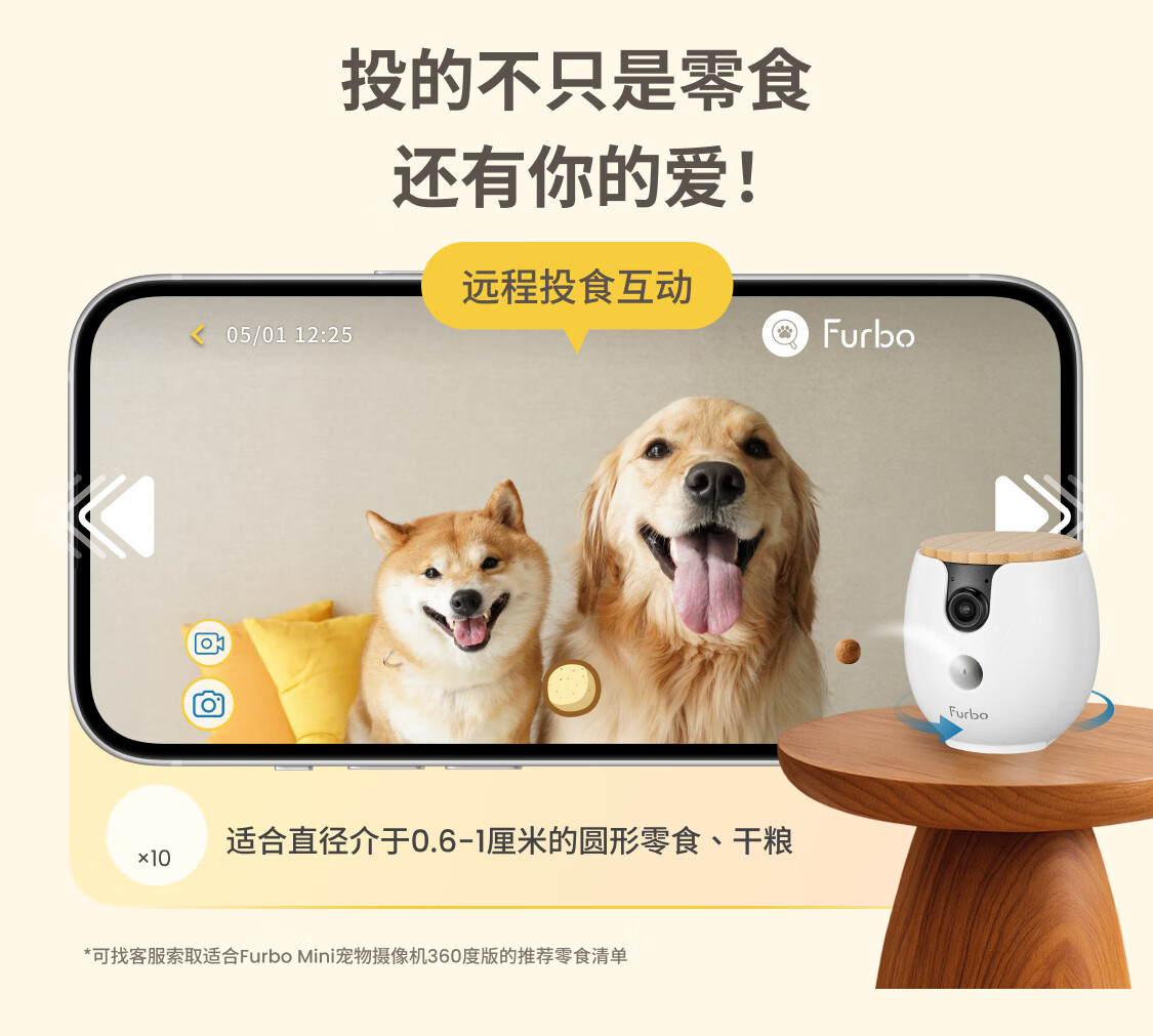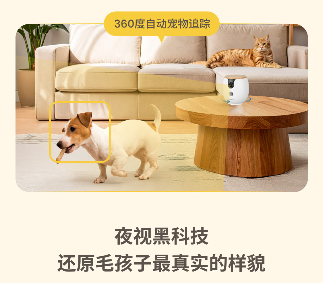 FURBO宠物摄像头Mini版 猫狗通用AI摄像机 360度旋转通用AI宠物监控 宠物陪伴语音互动 手机远程监控 Mini宠物摄像机 360度版 -赠3个月付费会员