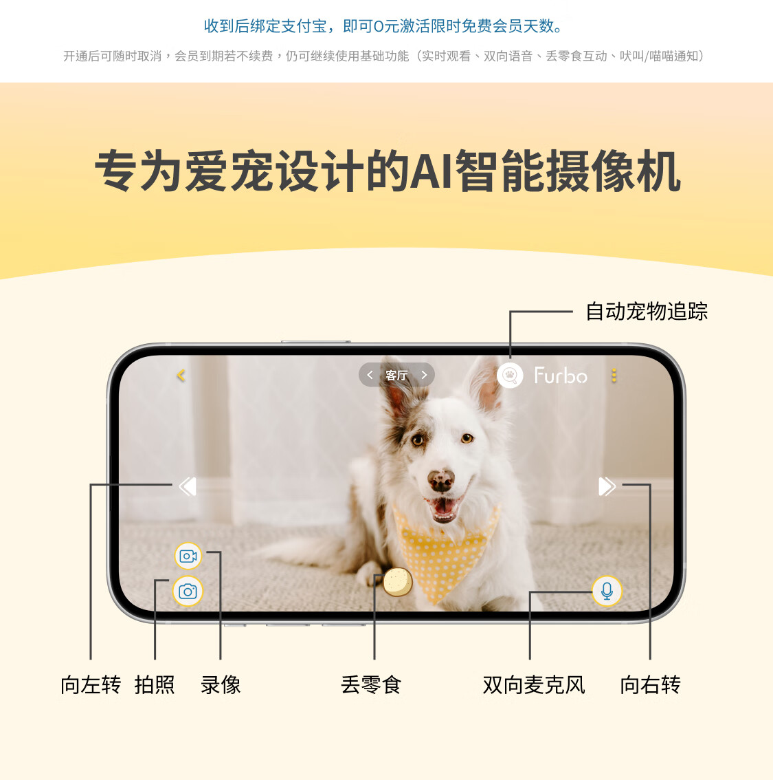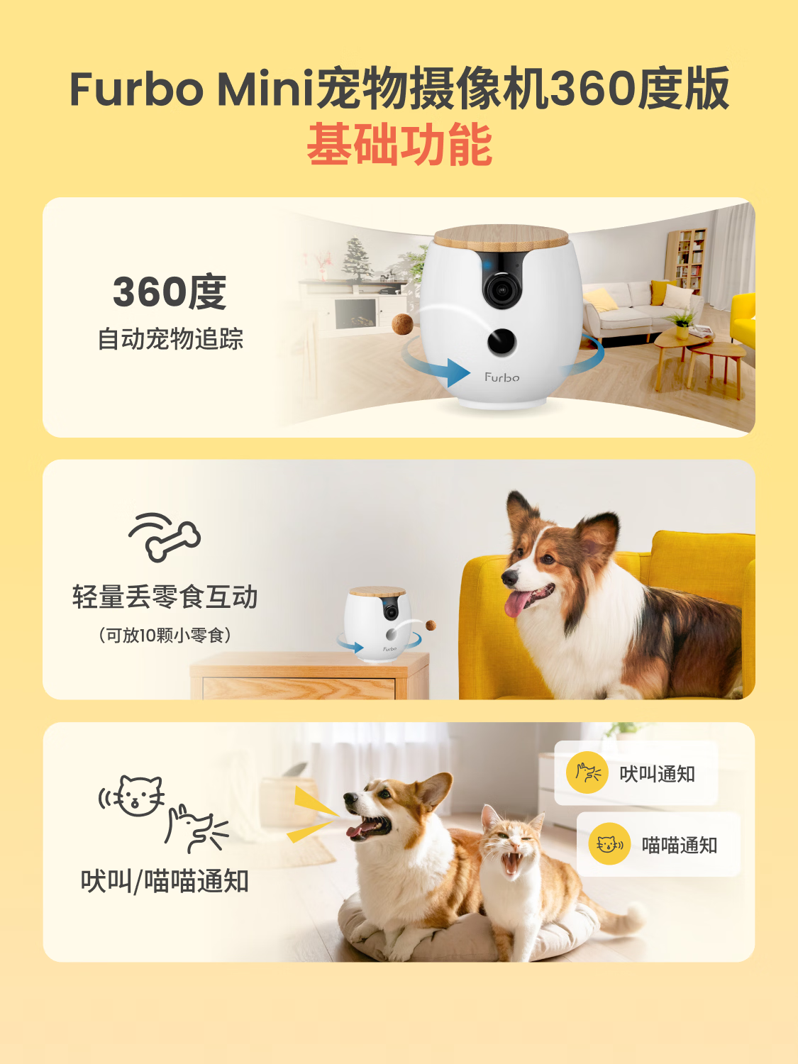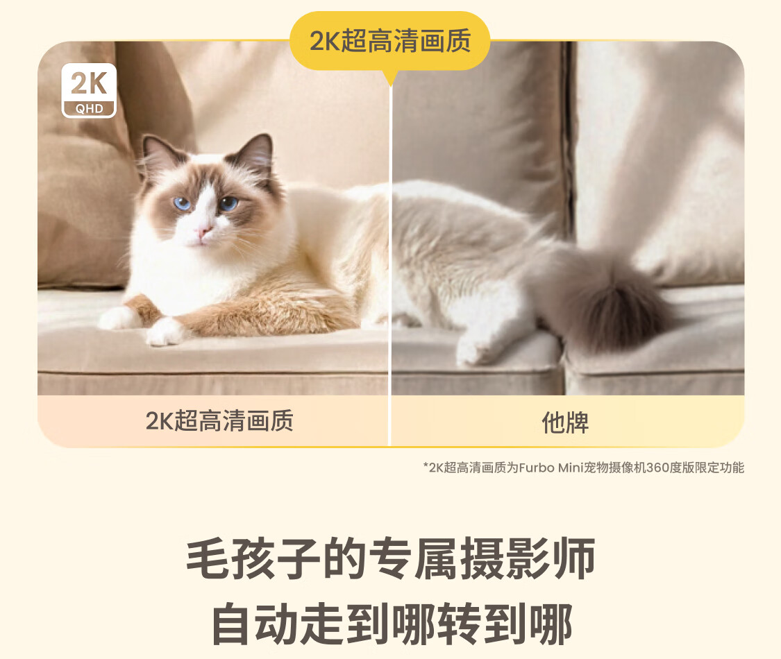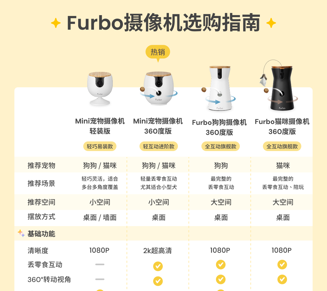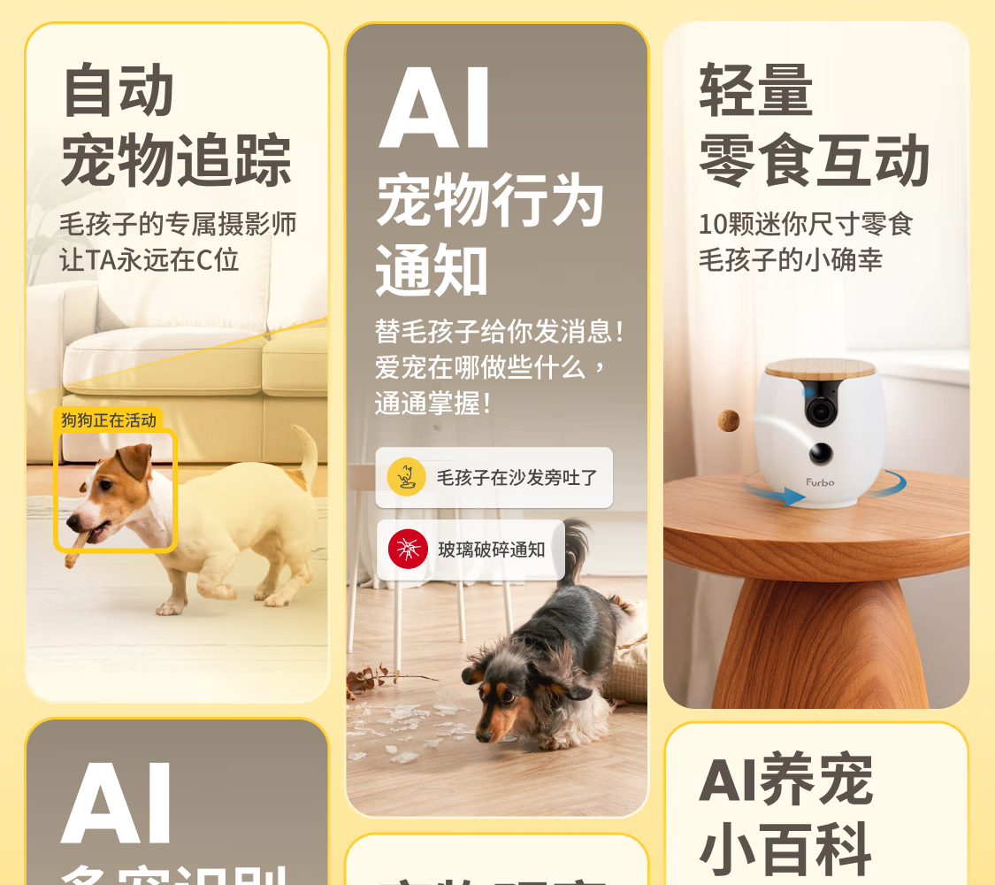 FURBO宠物摄像头Mini版 猫狗通用AI摄像机 360度旋转通用AI宠物监控 宠物陪伴语音互动 手机远程监控 Mini宠物摄像机 360度版 -赠3个月付费会员