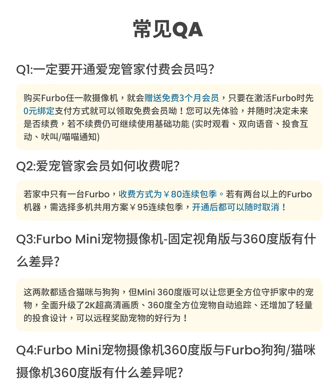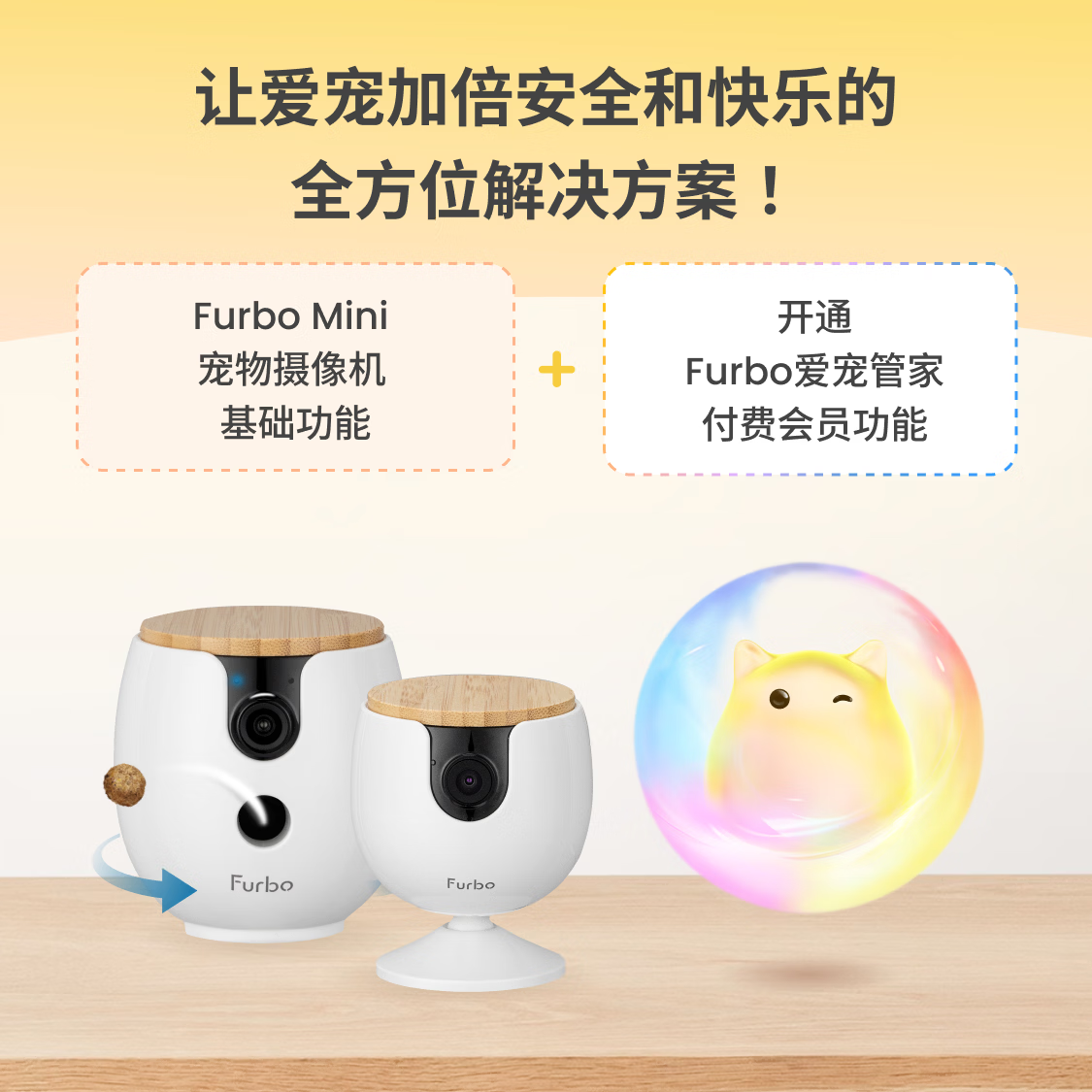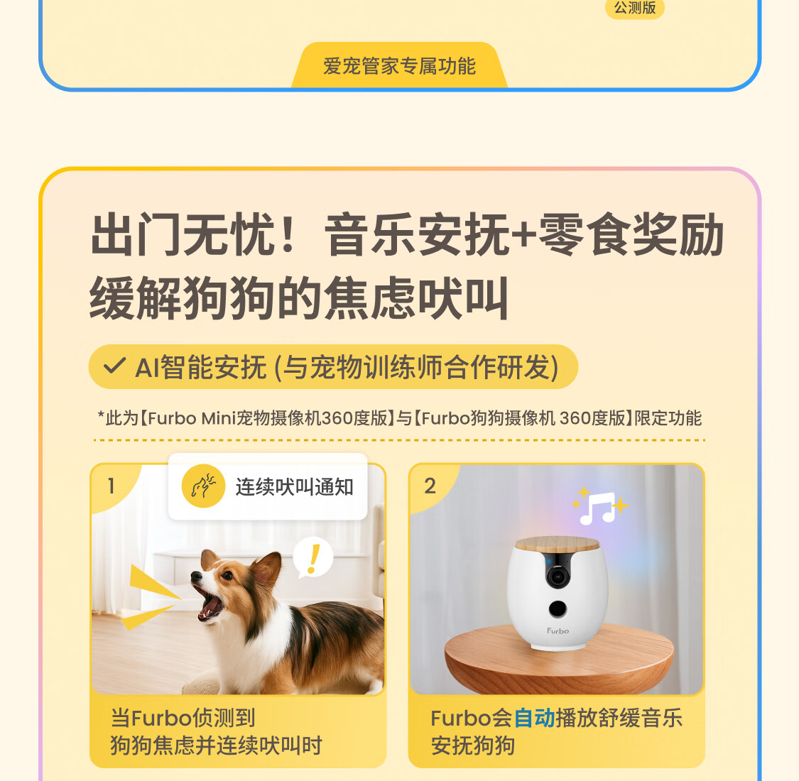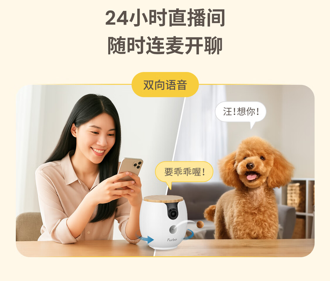 FURBO宠物摄像头Mini版 猫狗通用AI摄像机 360度旋转通用AI宠物监控 宠物陪伴语音互动 手机远程监控 Mini宠物摄像机 360度版 -赠3个月付费会员