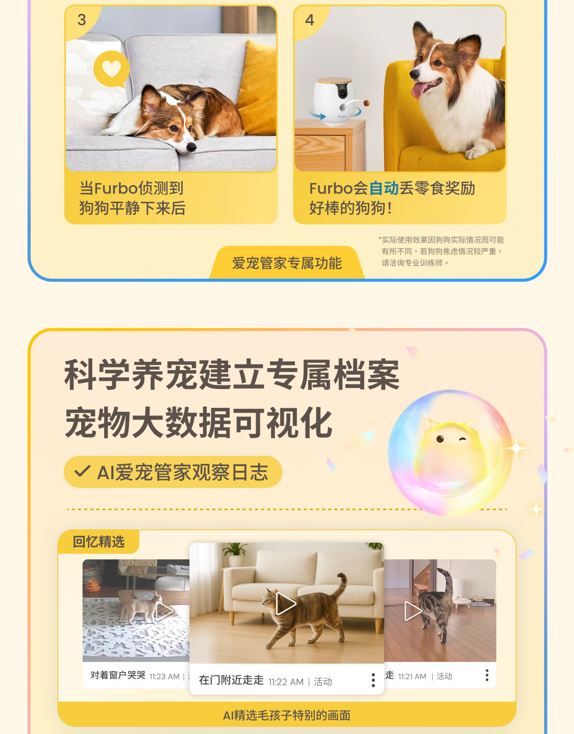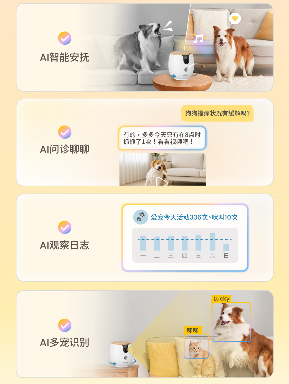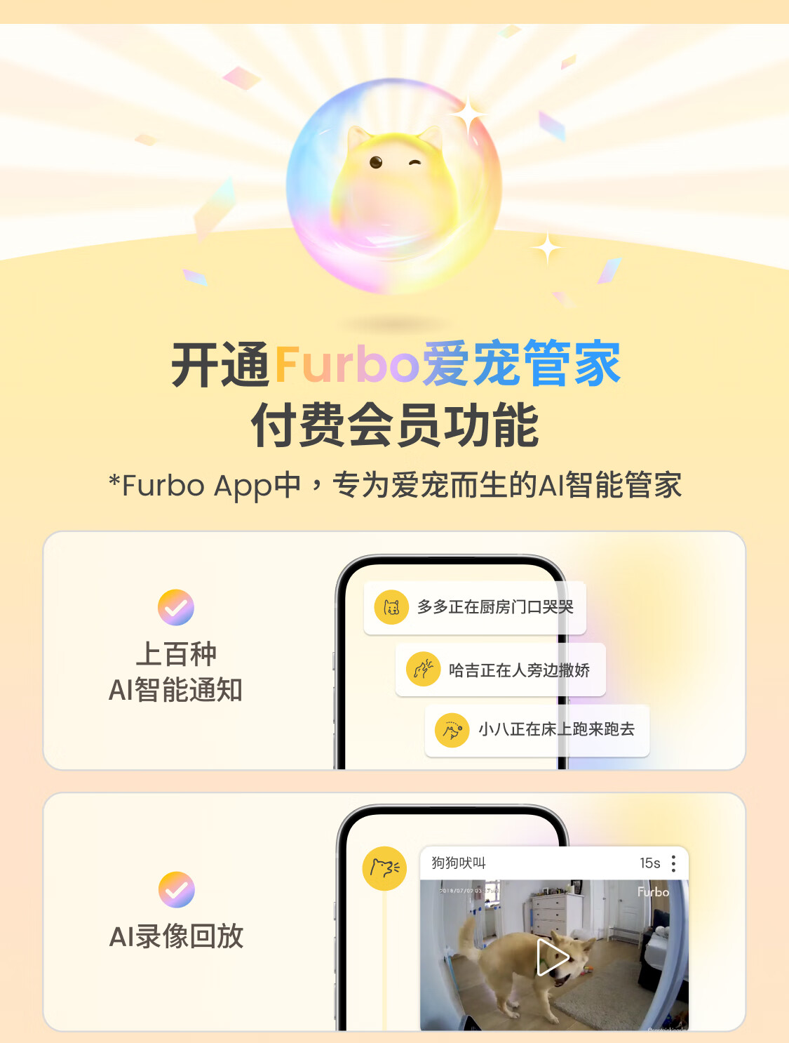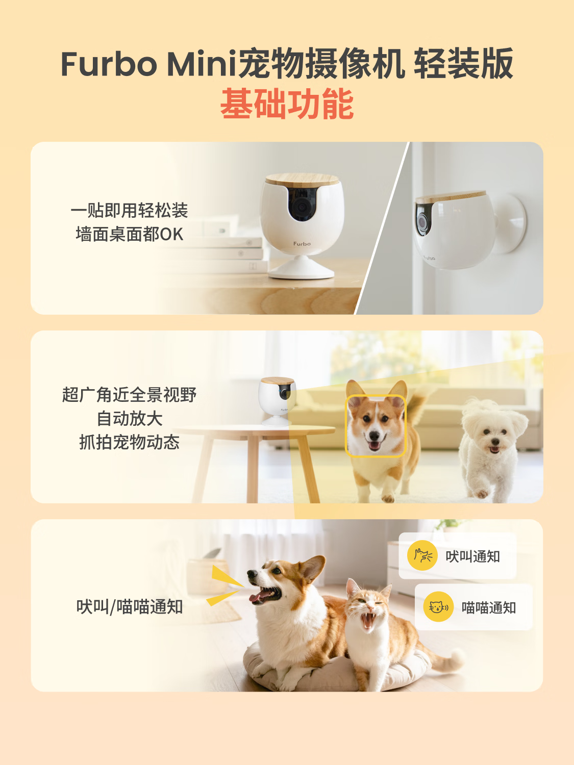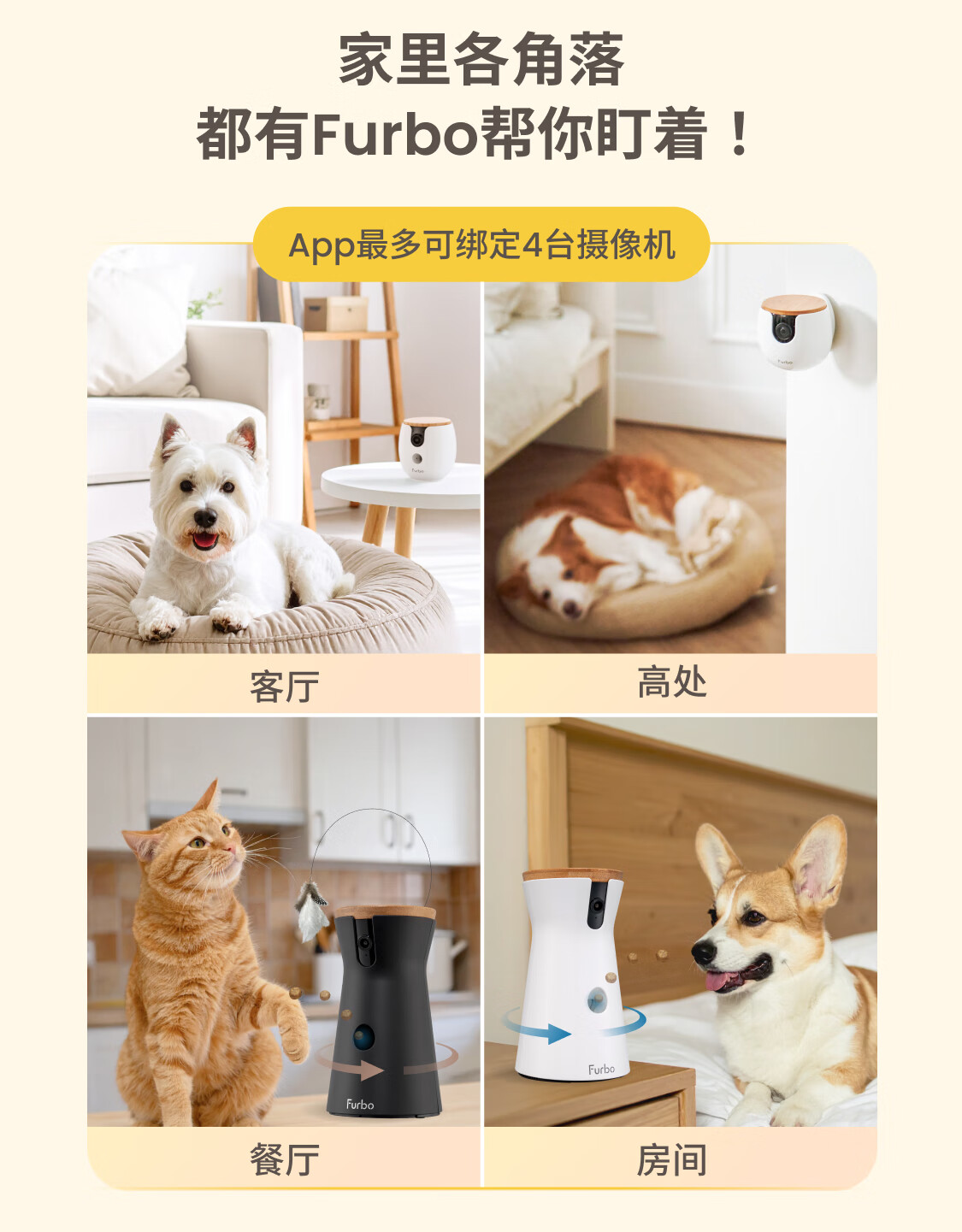 FURBO宠物摄像头Mini版 猫狗通用AI摄像机 360度旋转通用AI宠物监控 宠物陪伴语音互动 手机远程监控 Mini宠物摄像机 360度版 -赠3个月付费会员