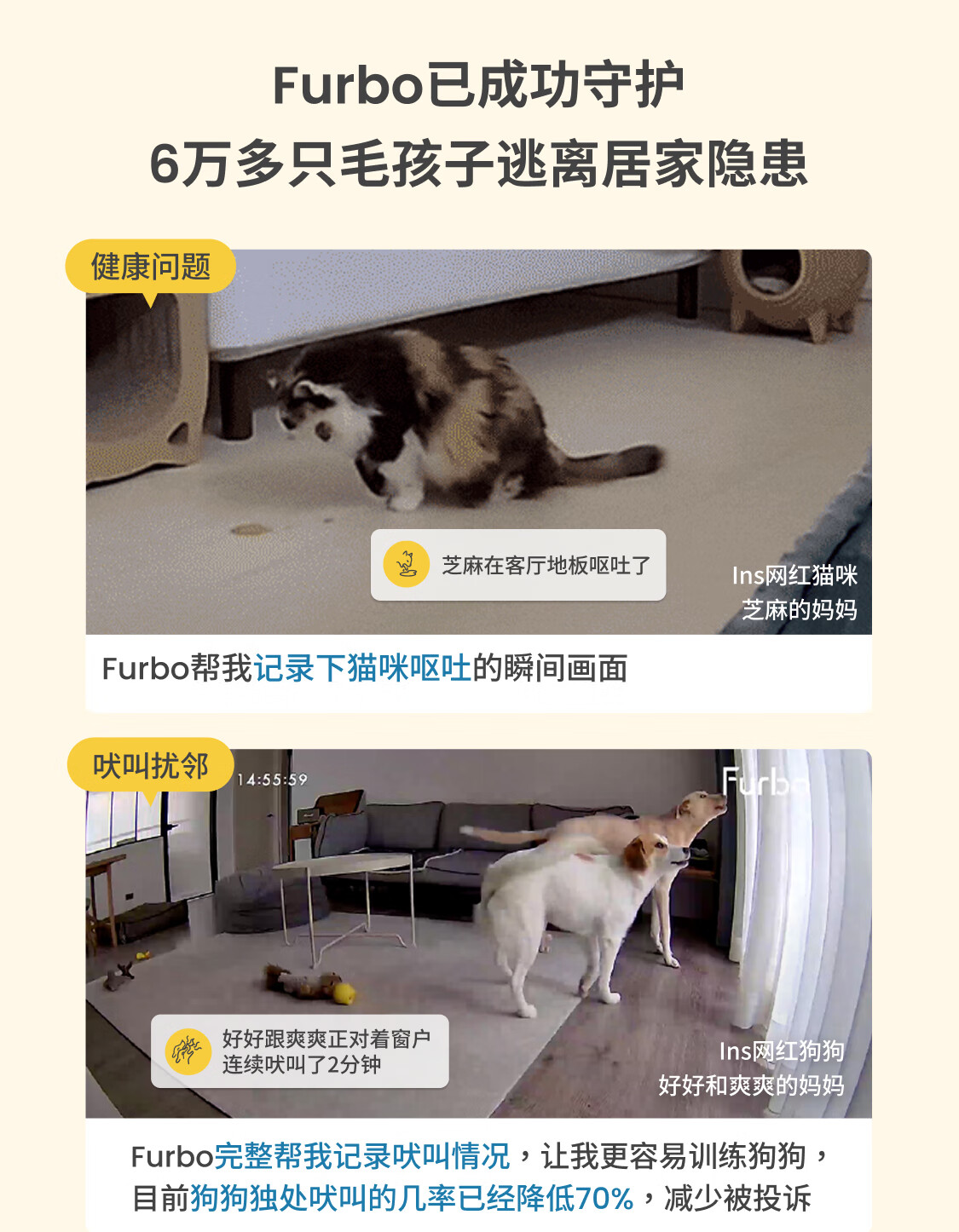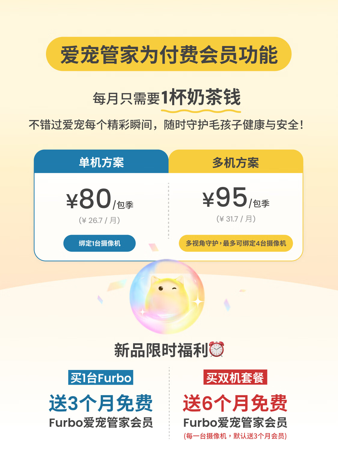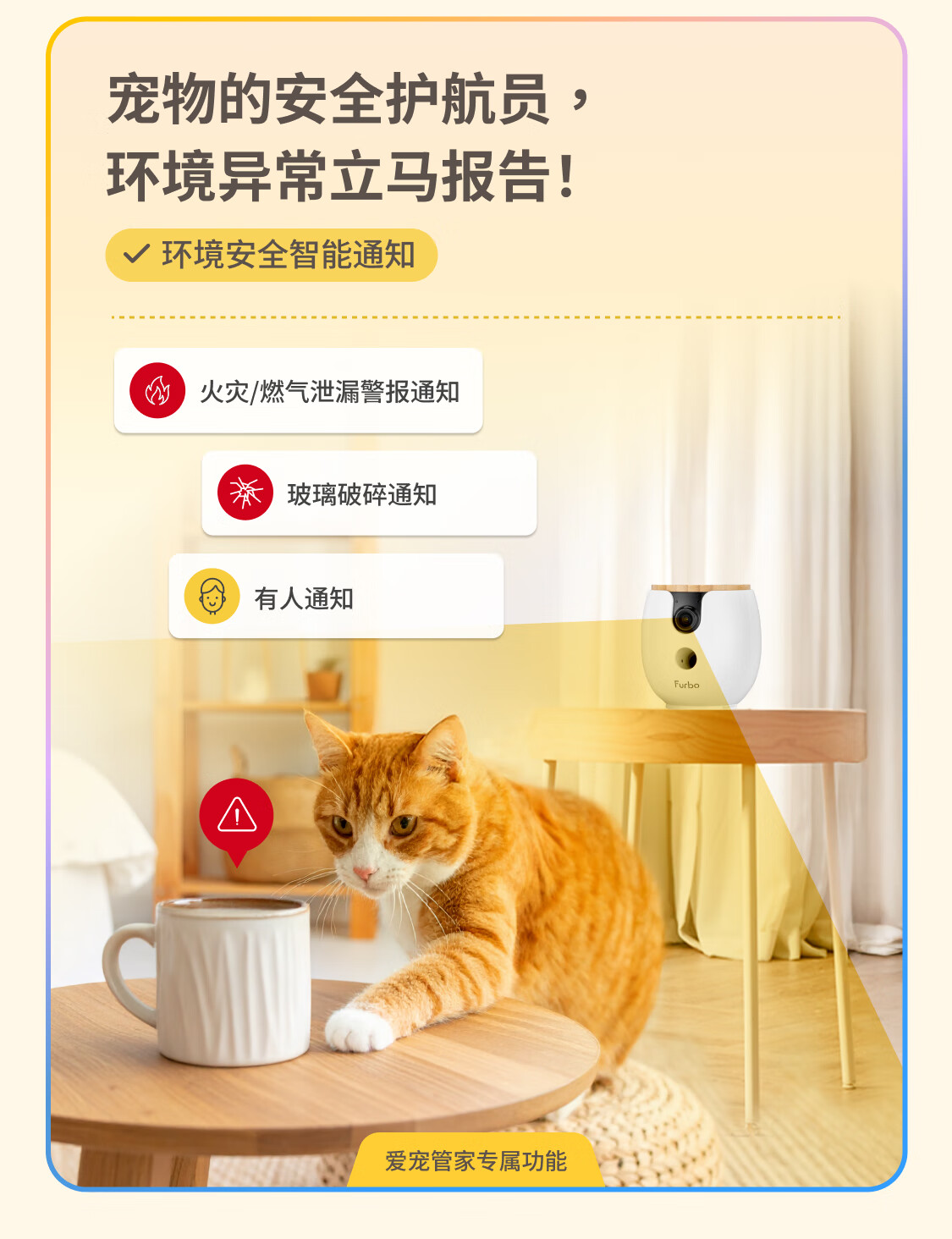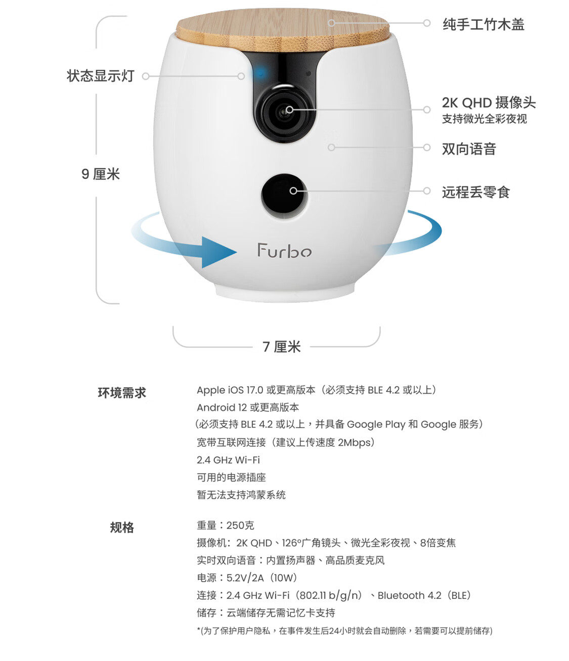 FURBO宠物摄像头Mini版 猫狗通用AI摄像机 360度旋转通用AI宠物监控 宠物陪伴语音互动 手机远程监控 Mini宠物摄像机 360度版 -赠3个月付费会员