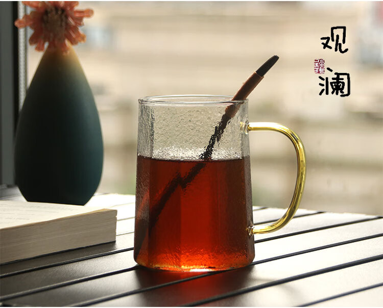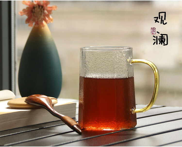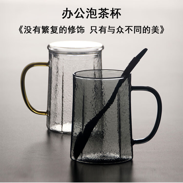 耐热玻璃杯可微波炉加热牛奶杯早餐杯大容量办公室泡茶杯喝水杯子 黄色把筑铭水杯(单杯)