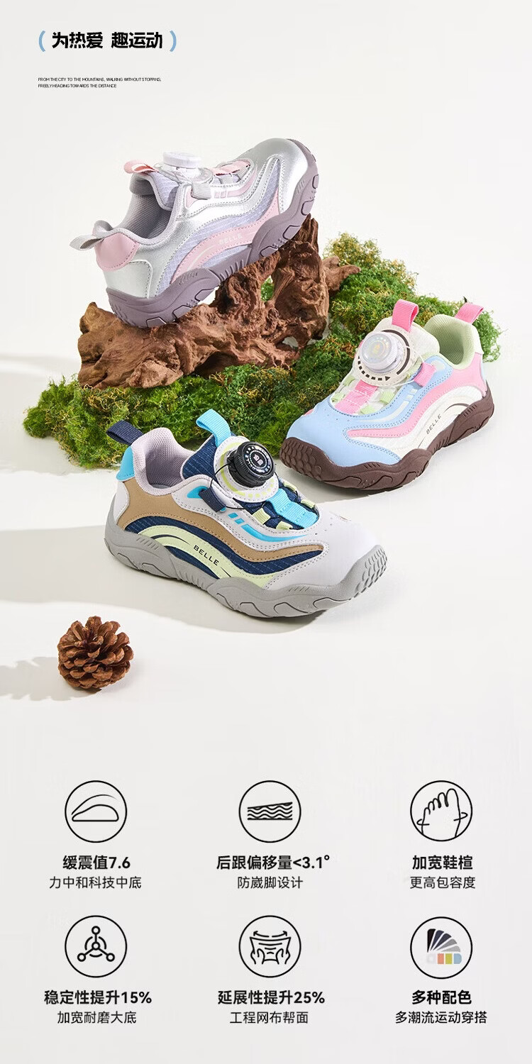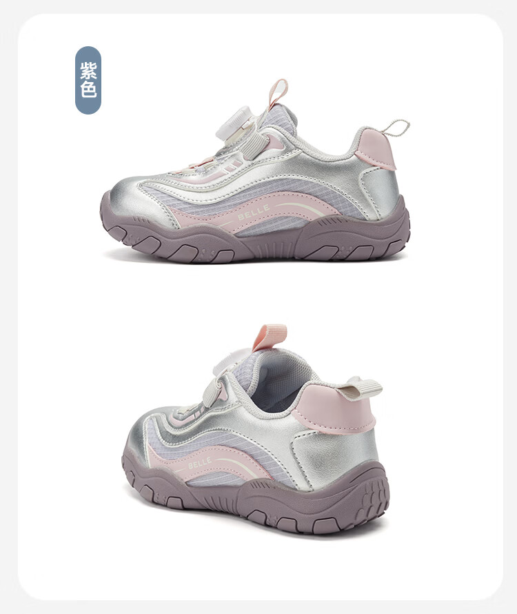 百丽童鞋女童鞋子儿童运动鞋26年春秋新款透气网面鞋男孩中大童休闲鞋 紫色 30 (建议脚长176-183mm)