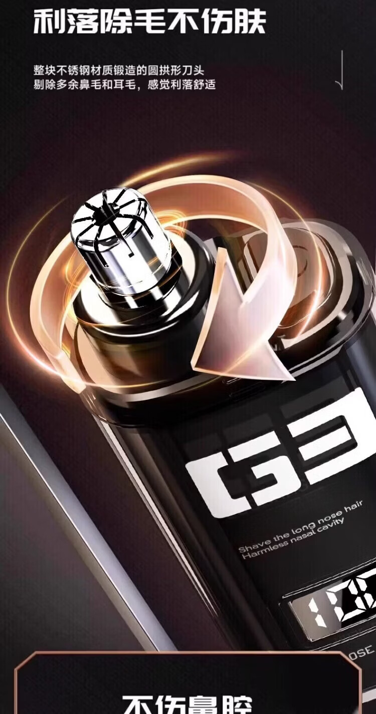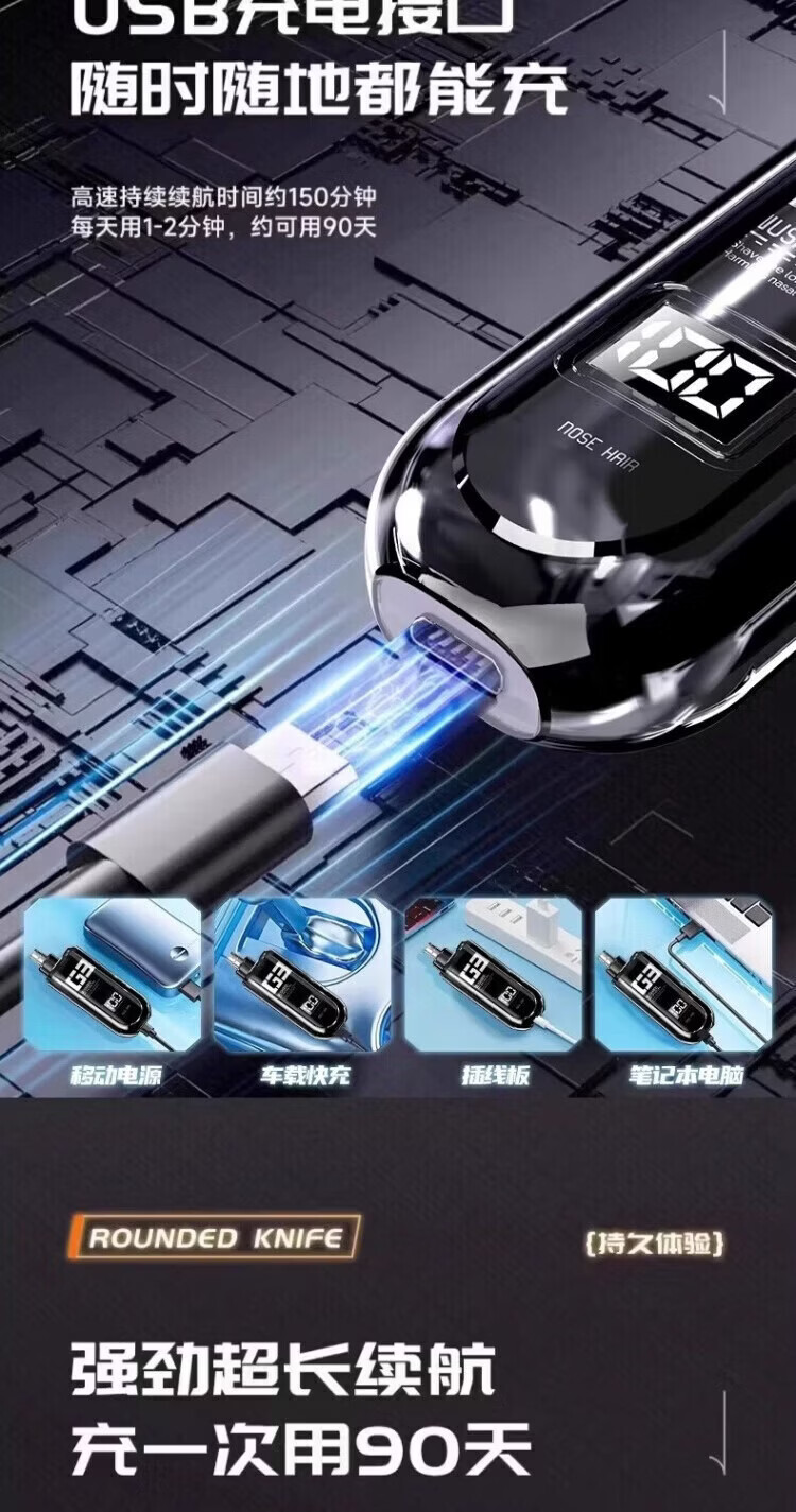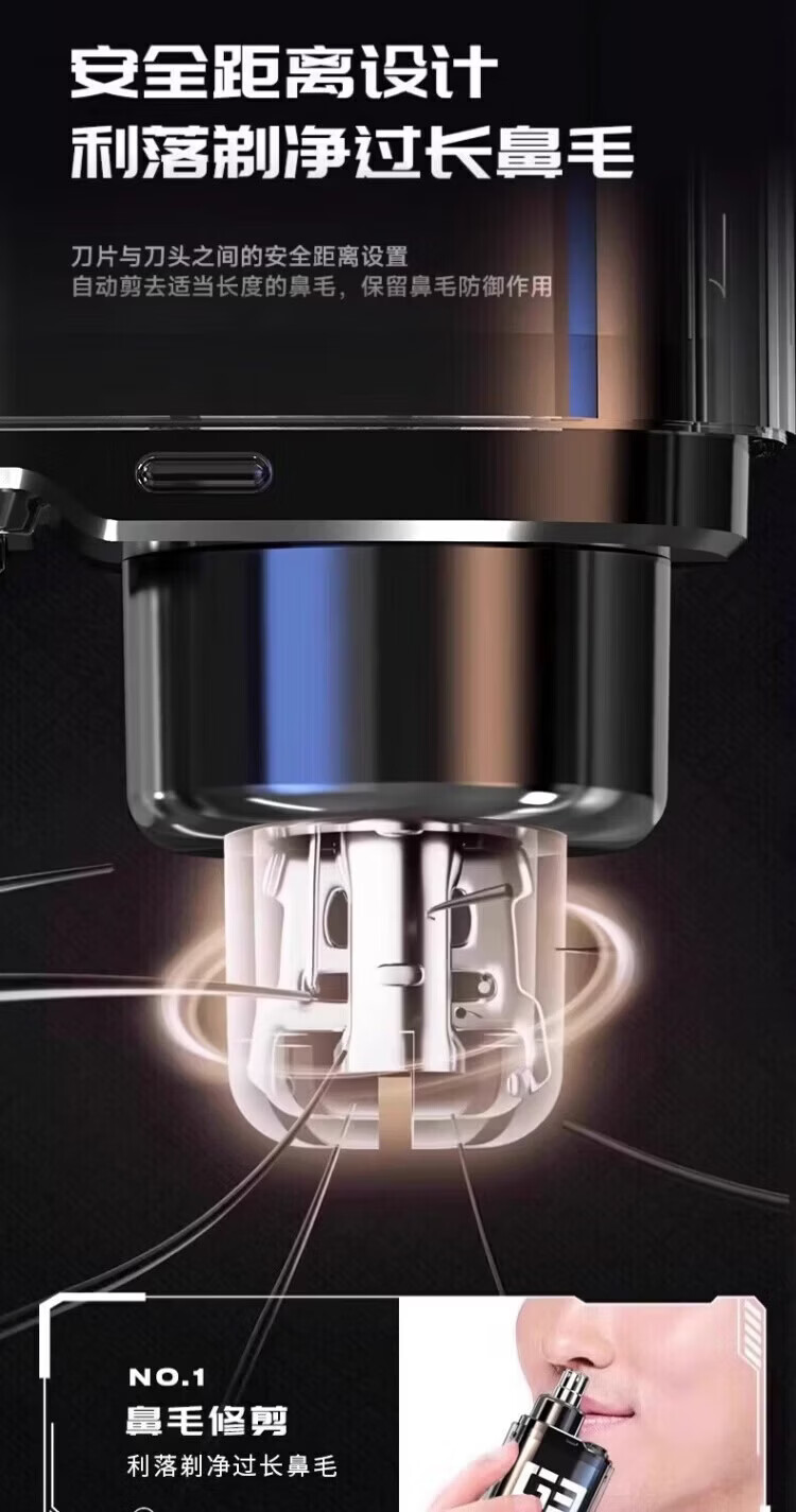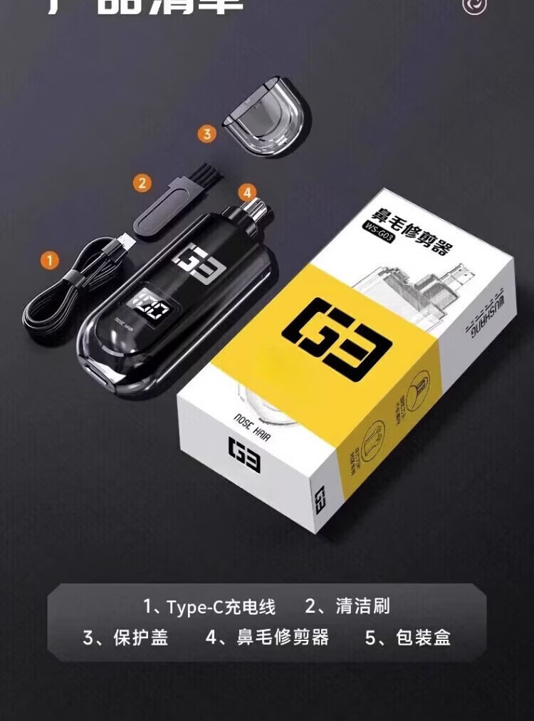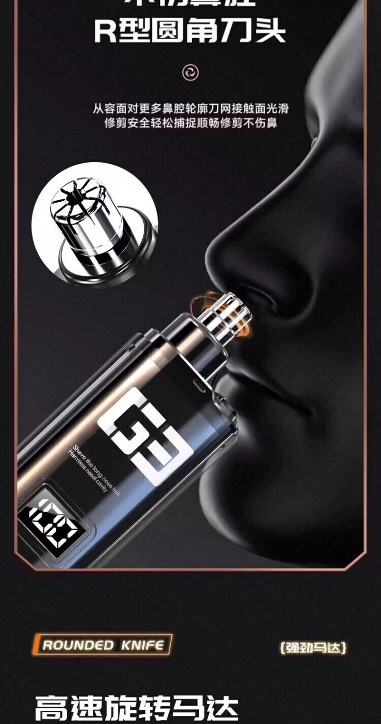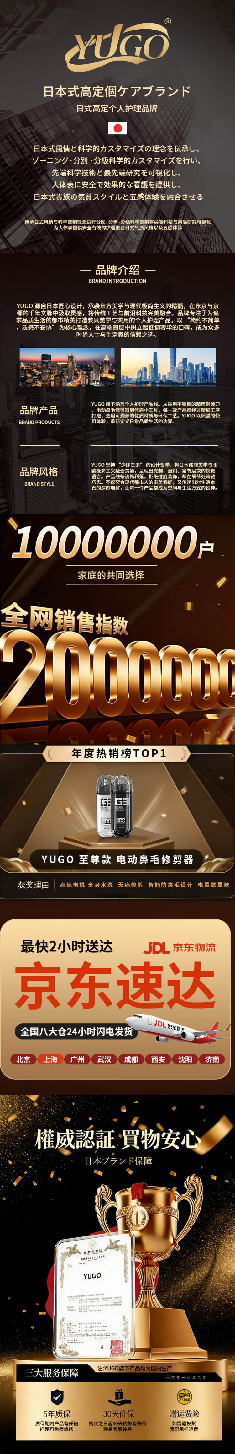 YUGO日本电动鼻毛修剪器耳鼻毛男士女士专用无痛可水洗旅行便携充电款 【曜夜黑】旗舰数显-闪充款【送防尘盖+毛刷+充电线】