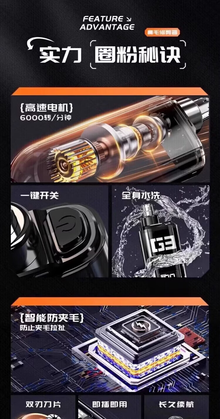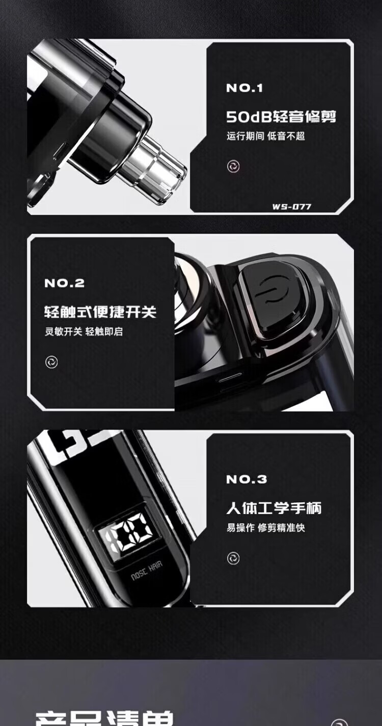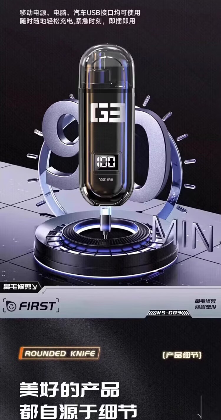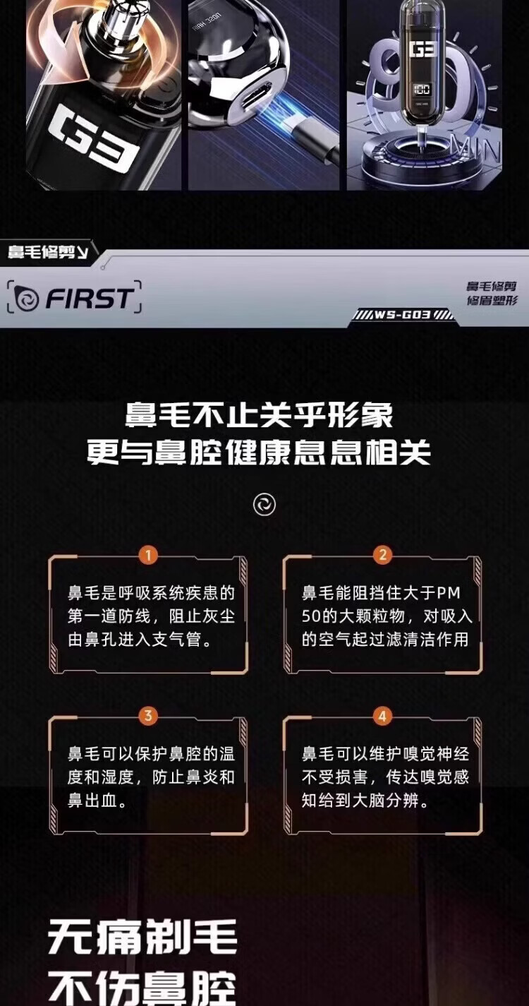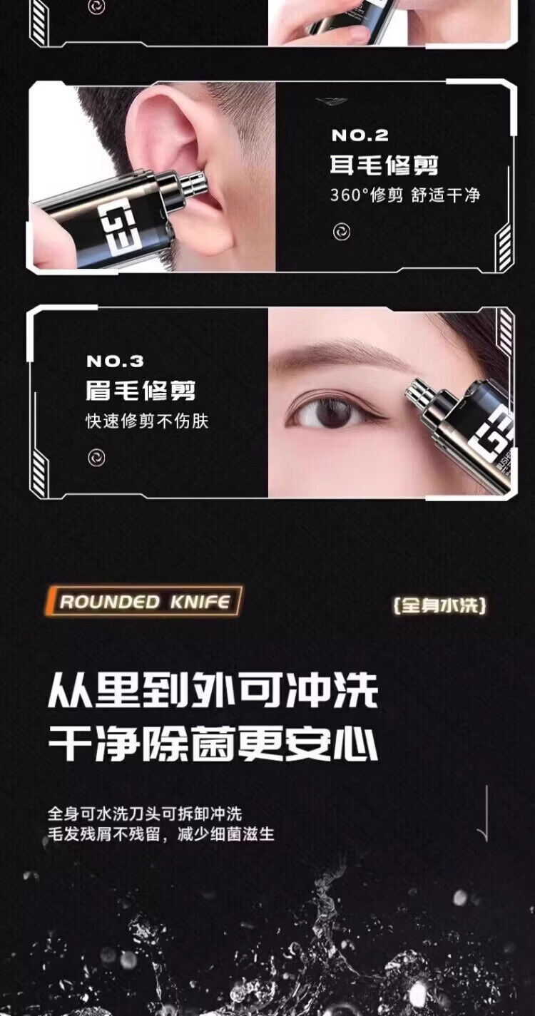 YUGO日本电动鼻毛修剪器耳鼻毛男士女士专用无痛可水洗旅行便携充电款 【曜夜黑】旗舰数显-闪充款【送防尘盖+毛刷+充电线】