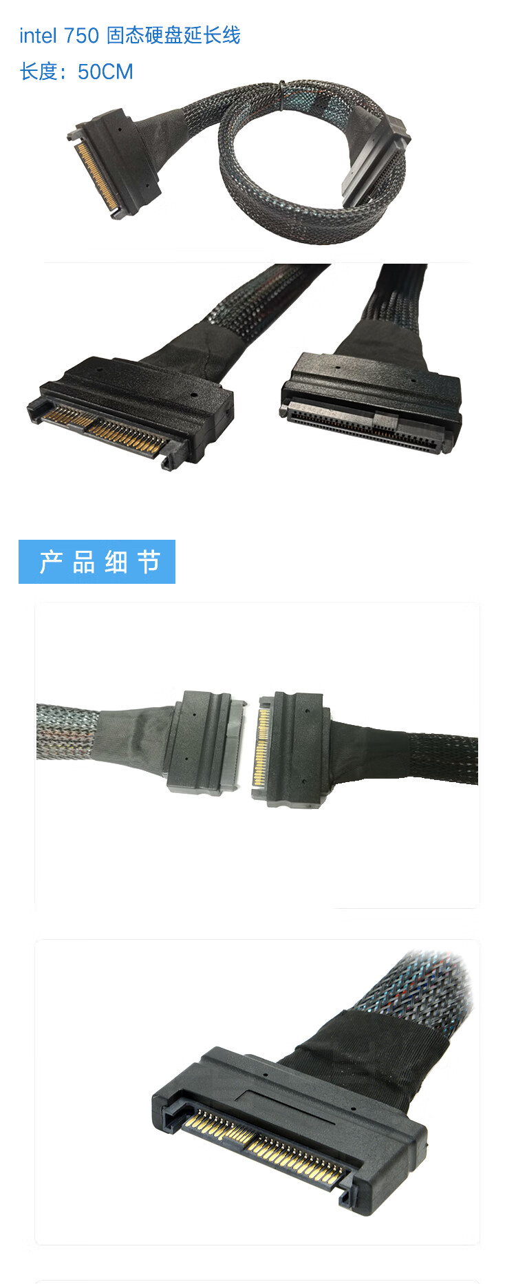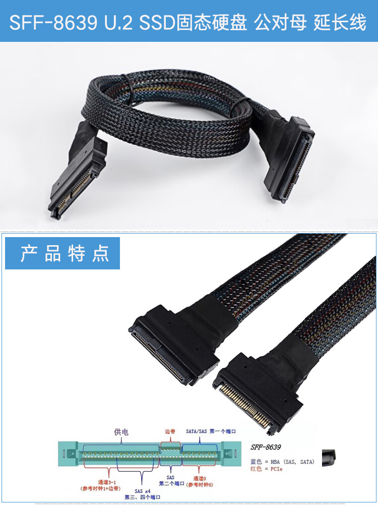 CableDeconn服务器SFF-8639公对母延长线U.2 SDD固态硬盘SAS 68Pin转接线 SFF-8639公对母 延长线 0.5米