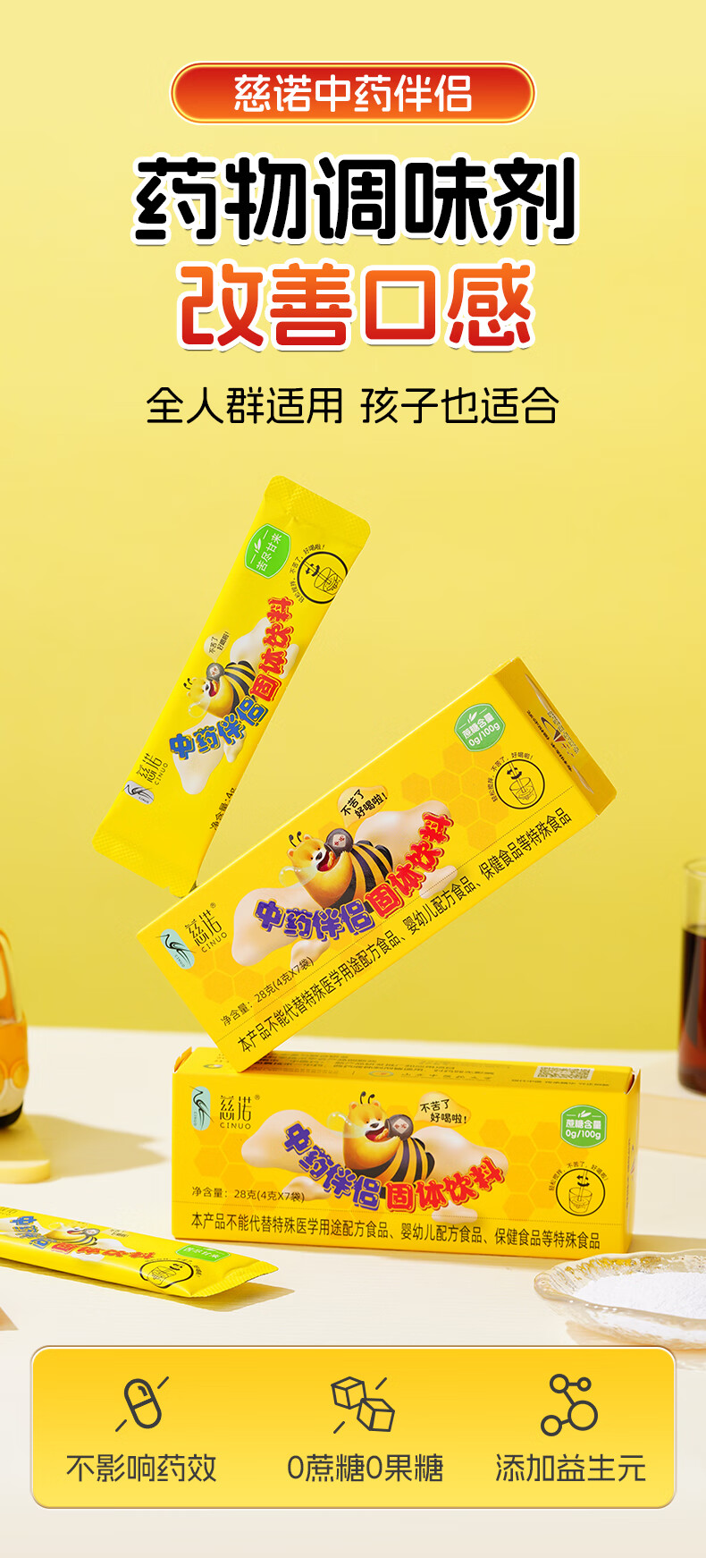 慈诺中药伴侣顺丰空运包邮宝宝儿童喝药神器不影响药效中西药适用 3盒装 4g*21袋 +3袋试用装