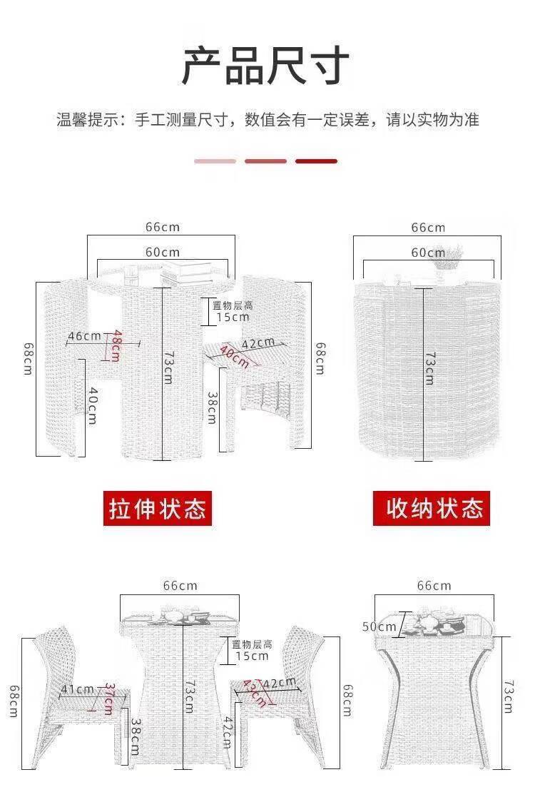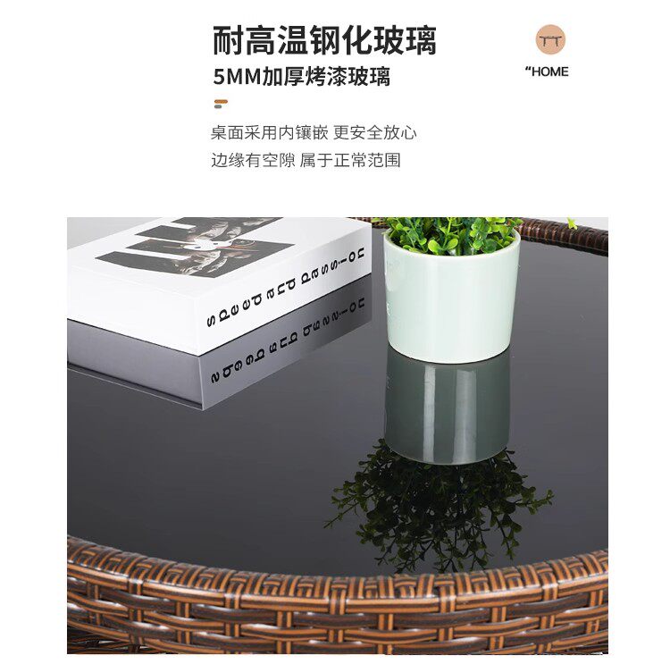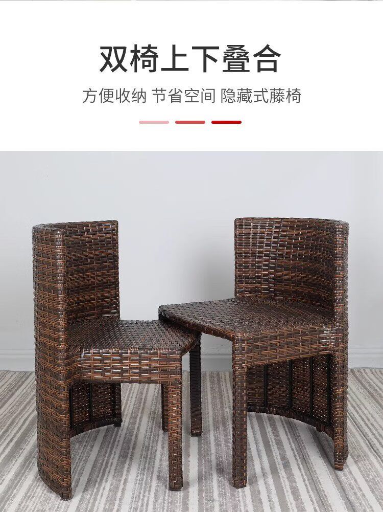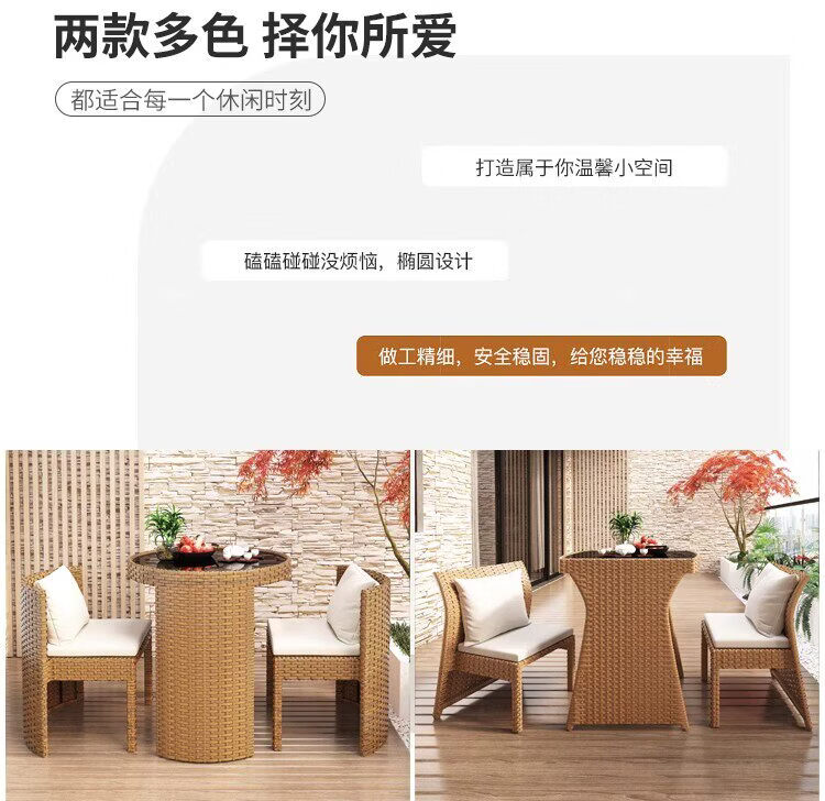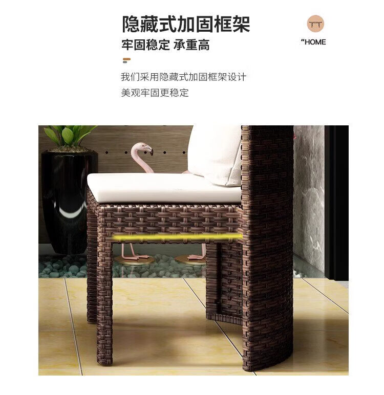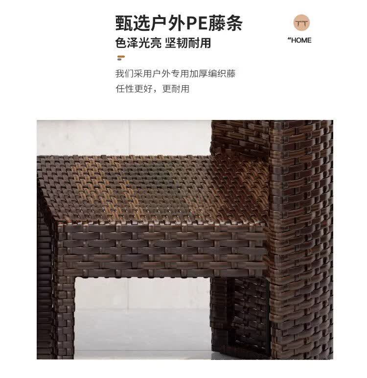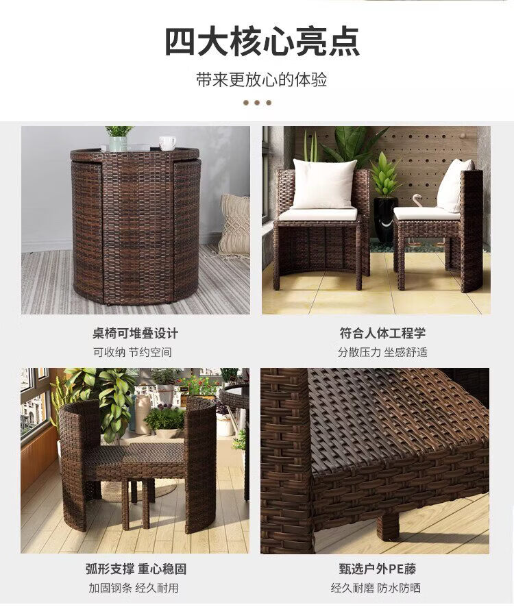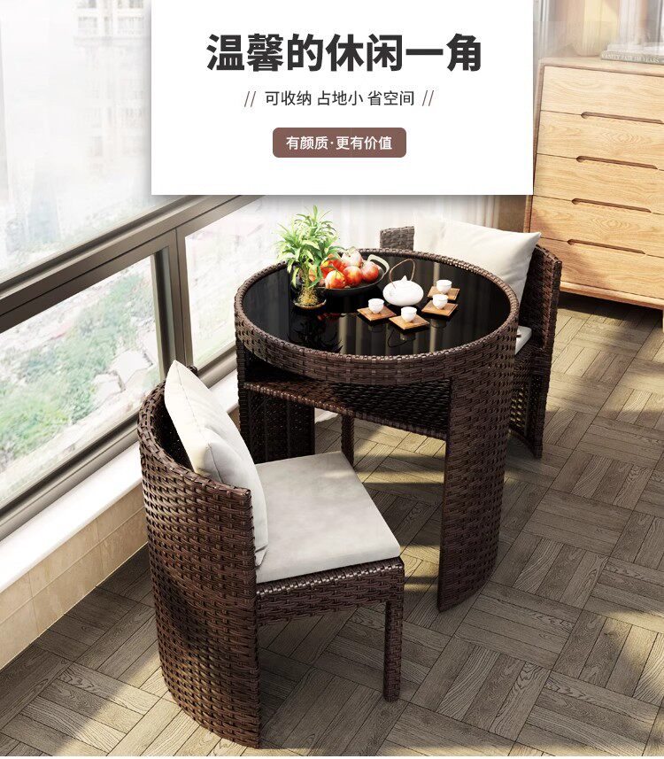馨霂尚品阳台小桌椅可收纳家用茶桌椅组合户外藤椅三件套休闲茶几椅子套装 咖色2椅+圆桌【坐垫+抱枕】