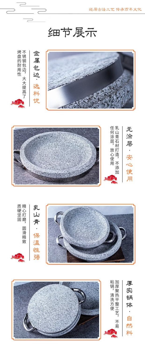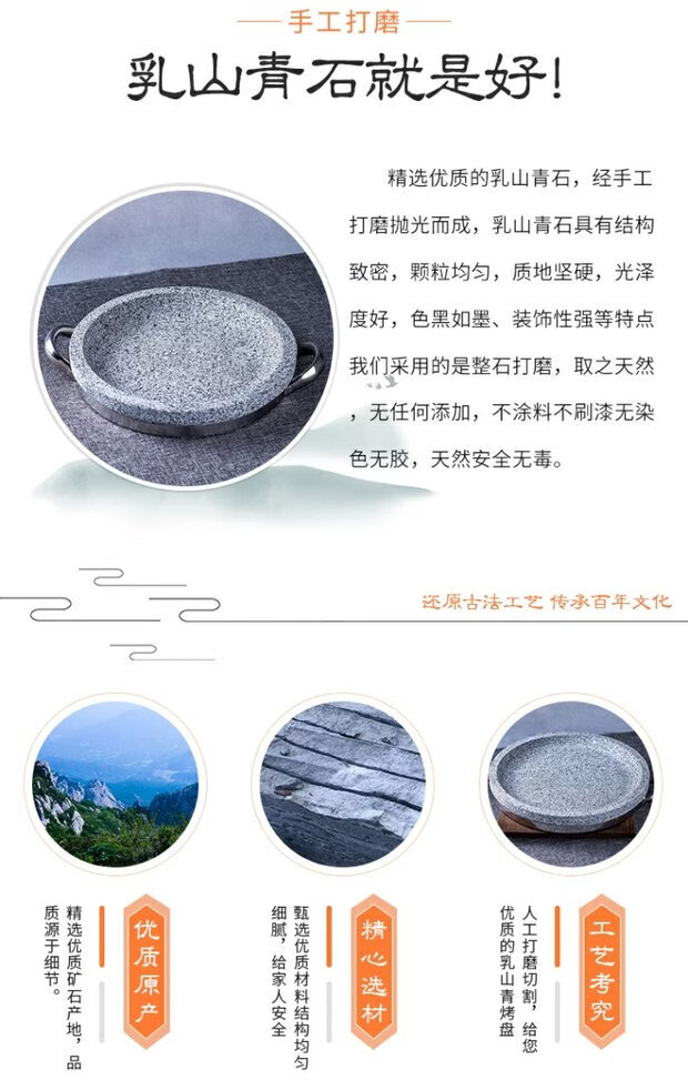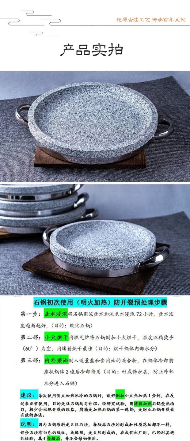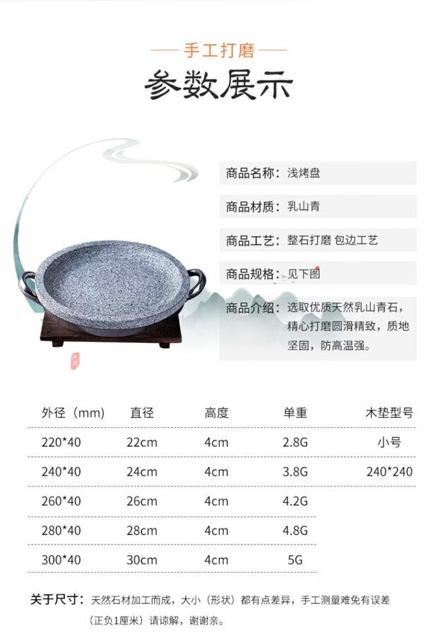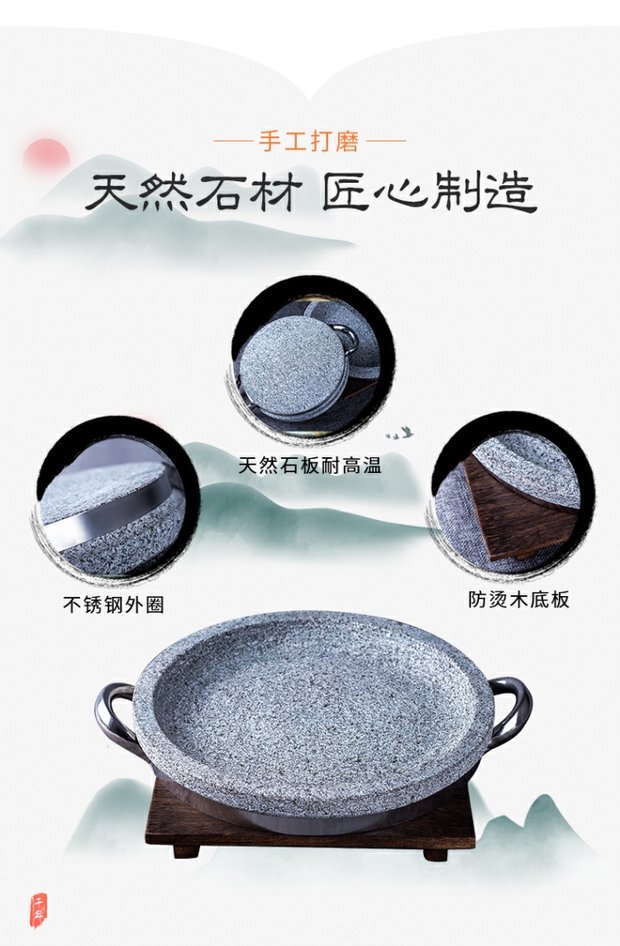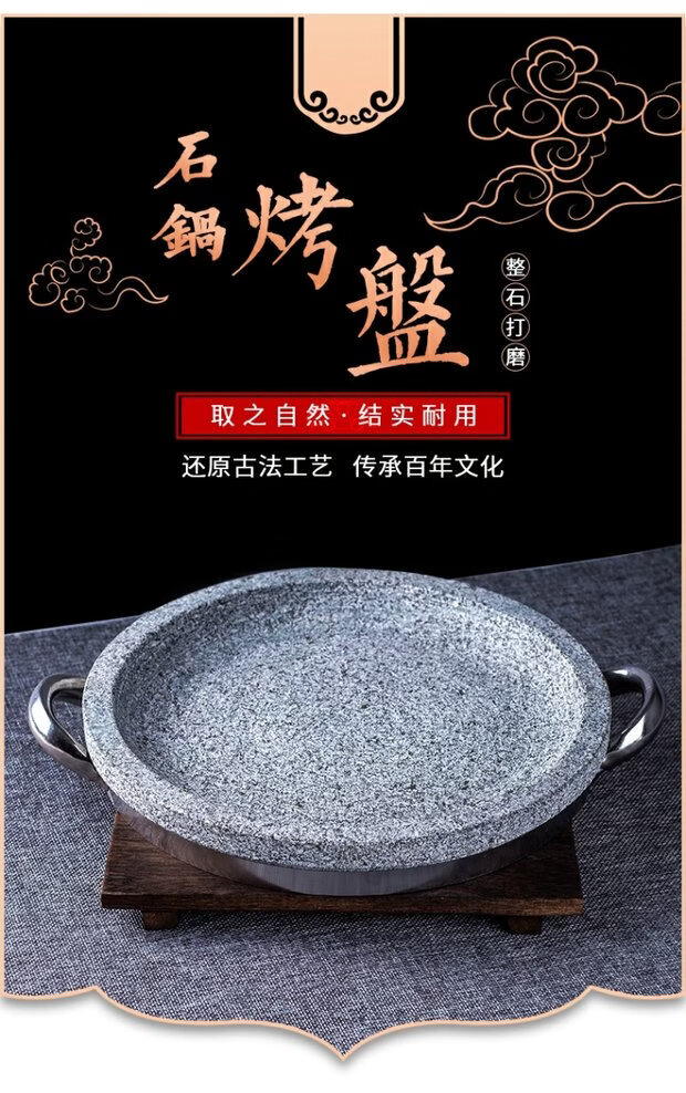溥畔天然石锅拌饭石烤盘韩式盘石板天然石板盘煎牛扒锅石碗烤肉烧烤盘 石碗直径18厘米 0ml