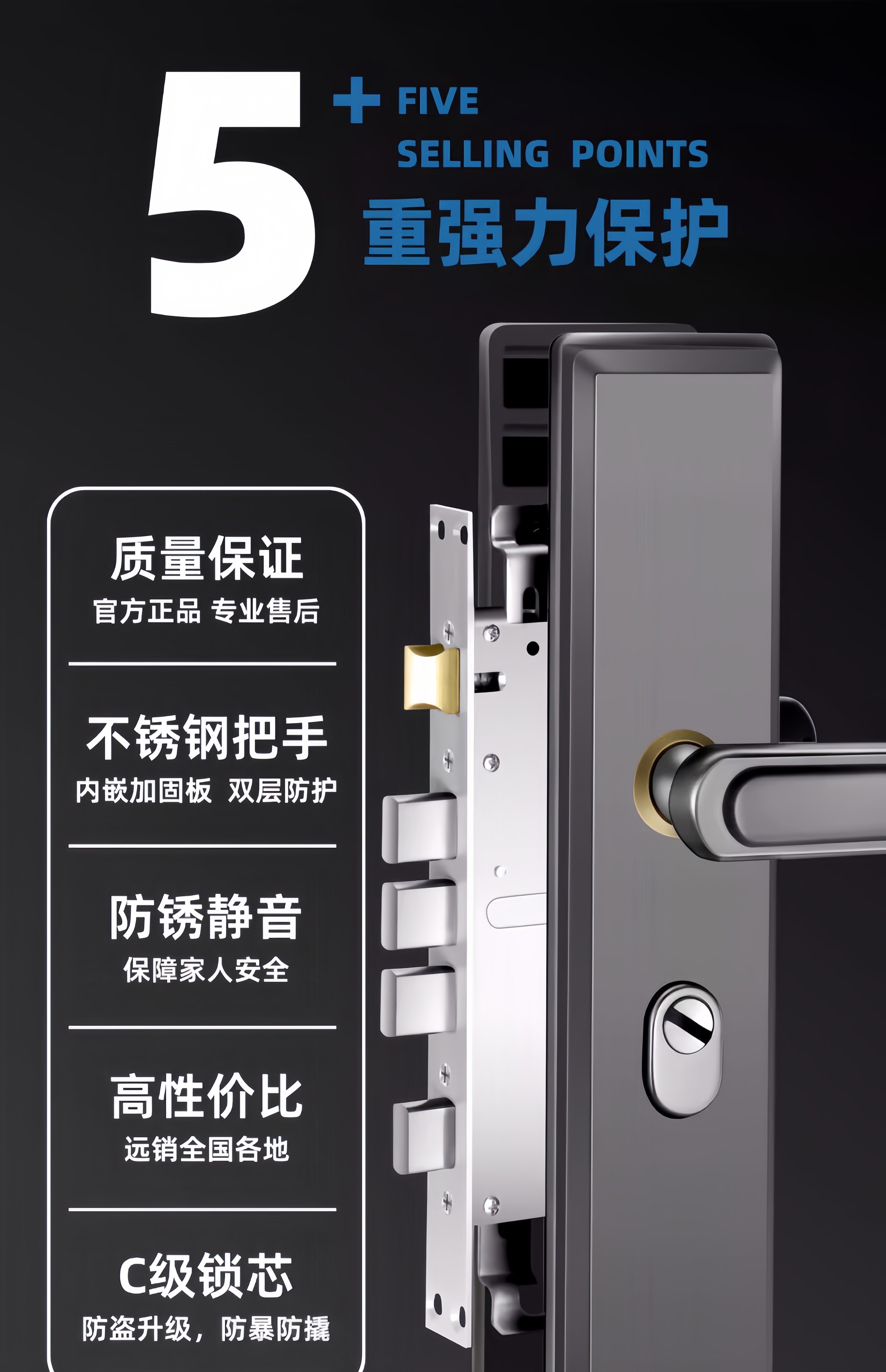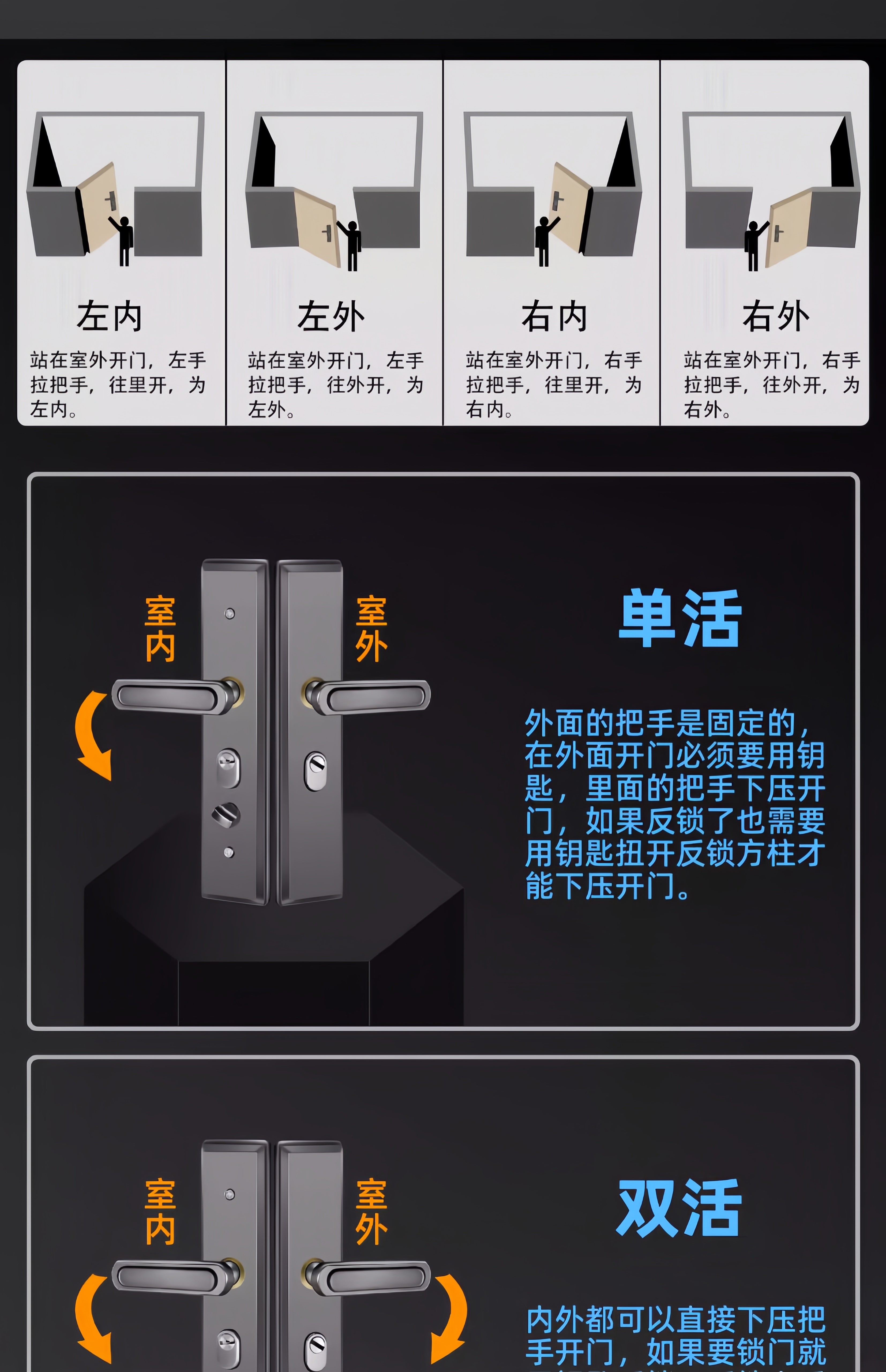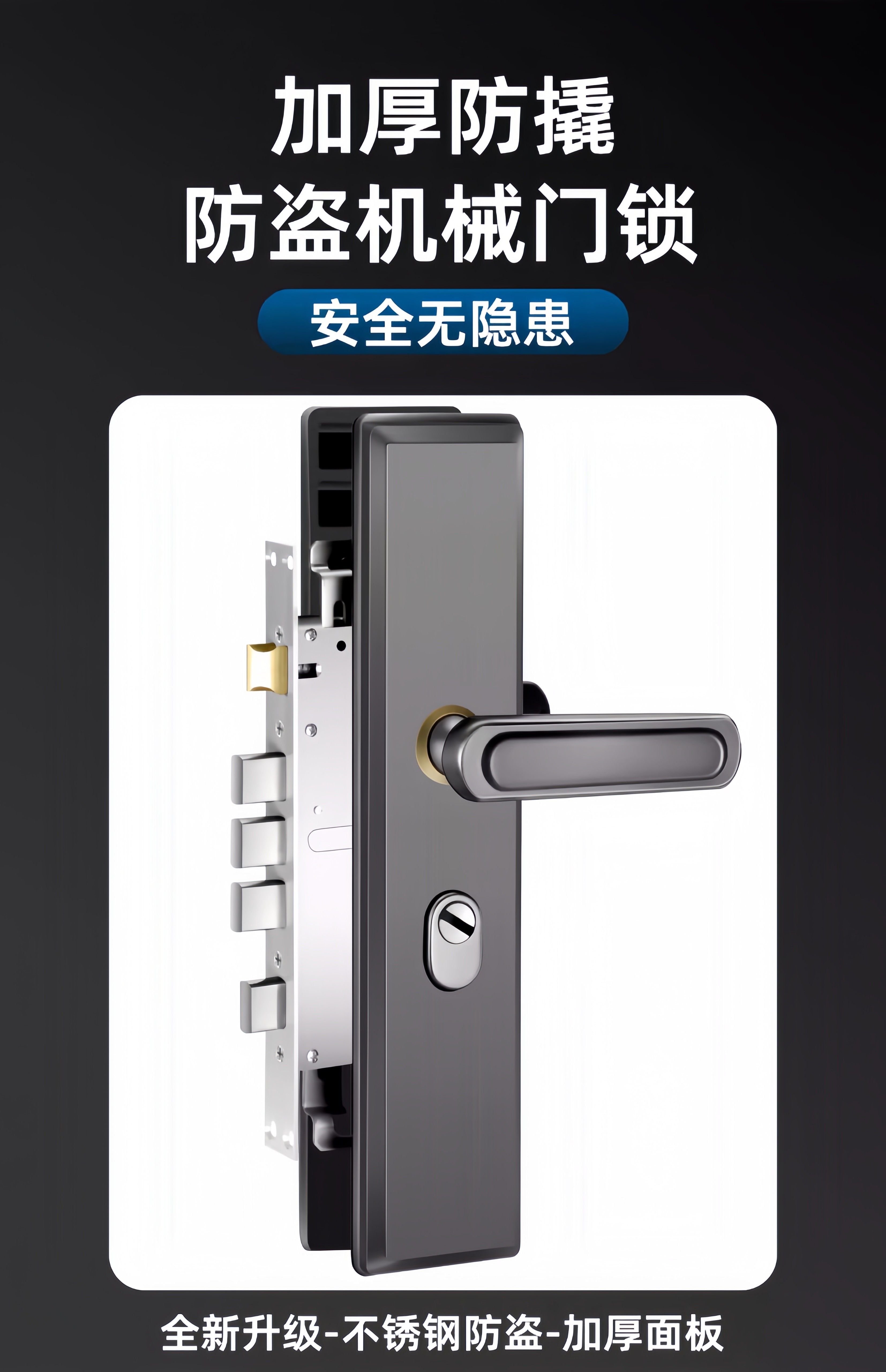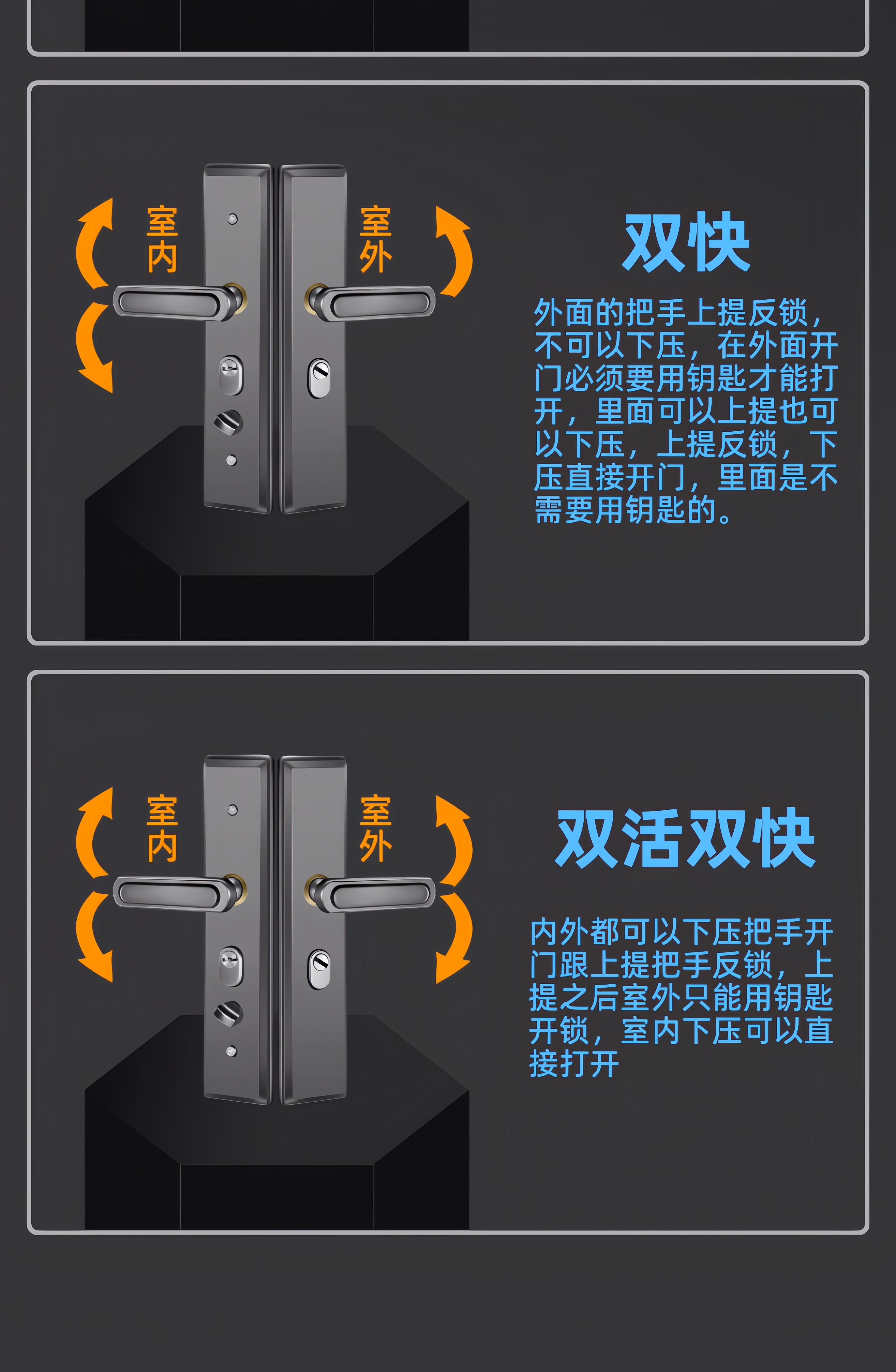 映浪防盗门锁套装锁具不锈钢把手柄通用型防盗门把手铁门木门锁大门锁 【咨询客服】方舌整套(单活)