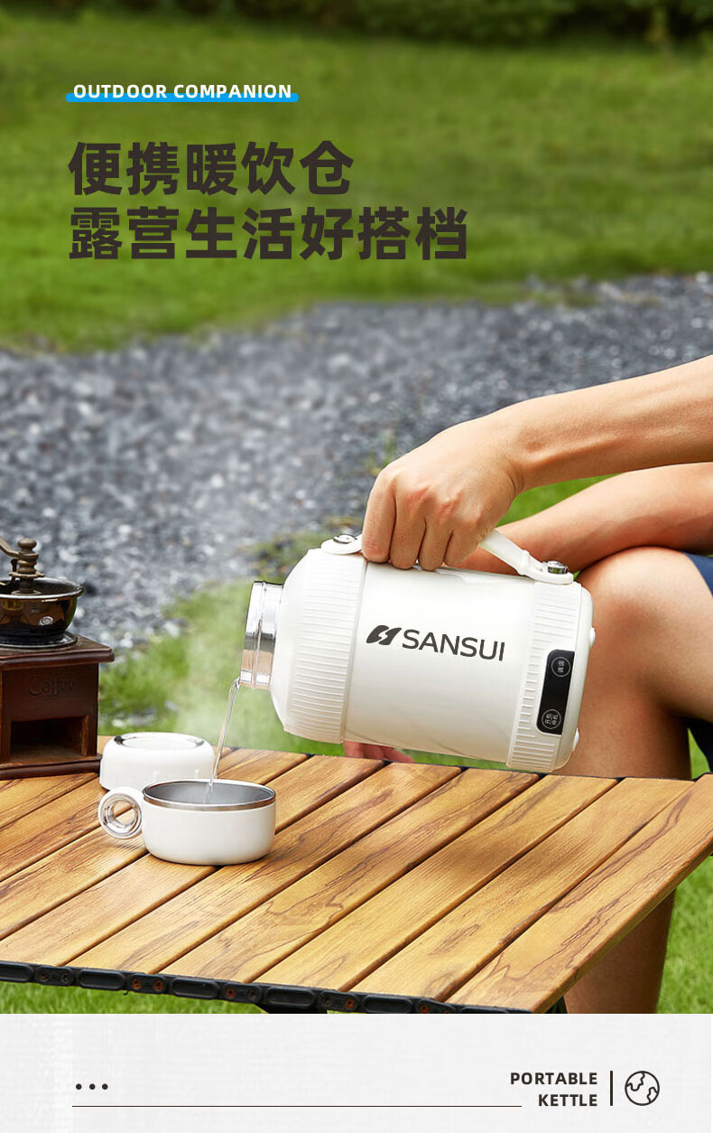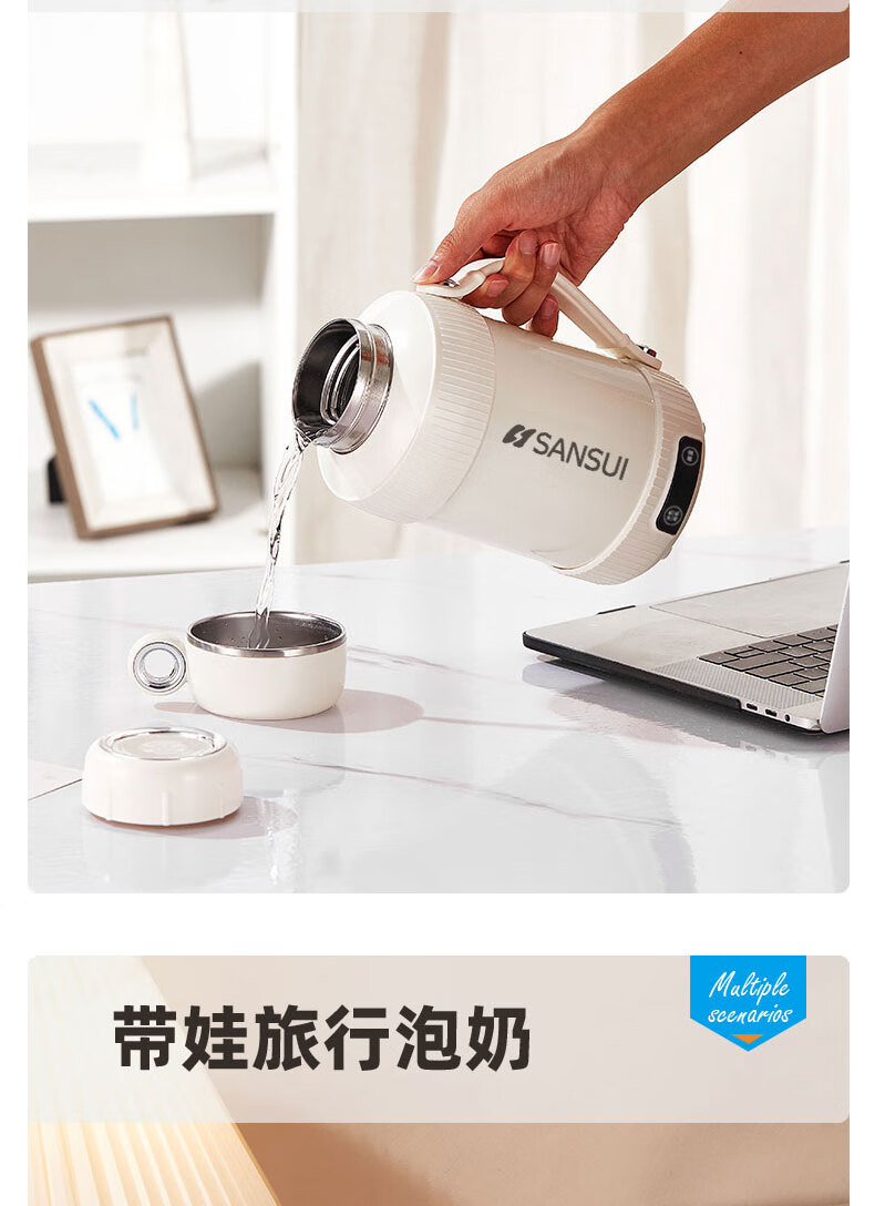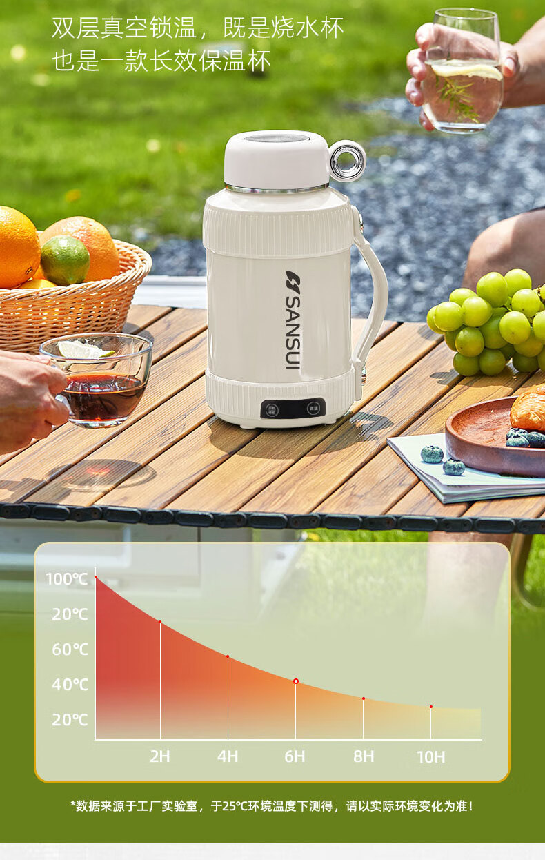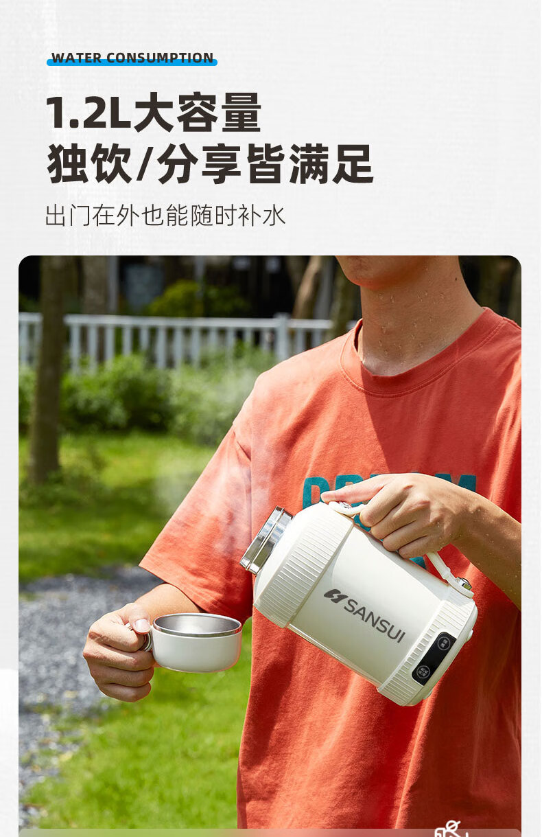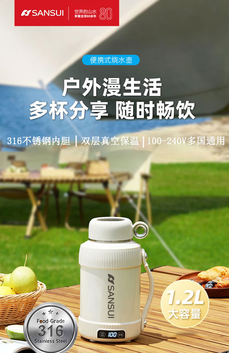 山水(SANSUI)便携式电热烧水壶316不锈钢电热烧水杯旅行电热水壶保温壶一体 1.2L 【316不锈钢 多国通用】