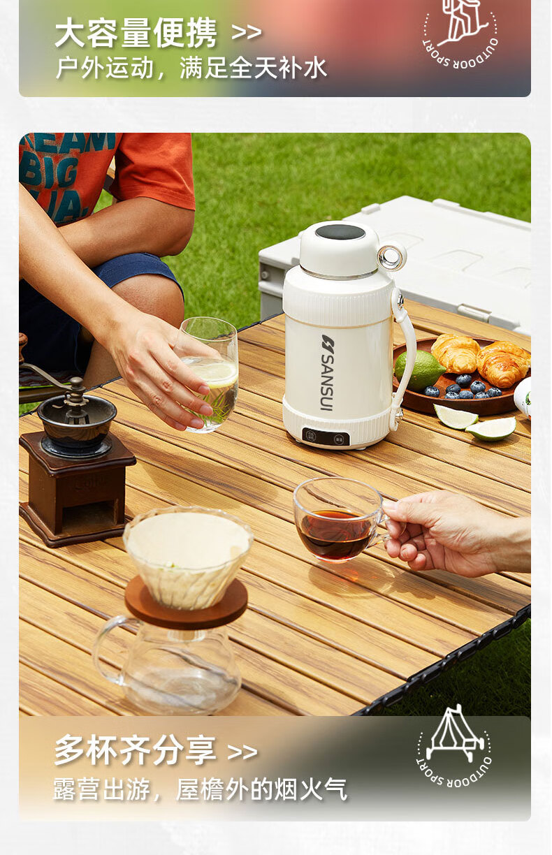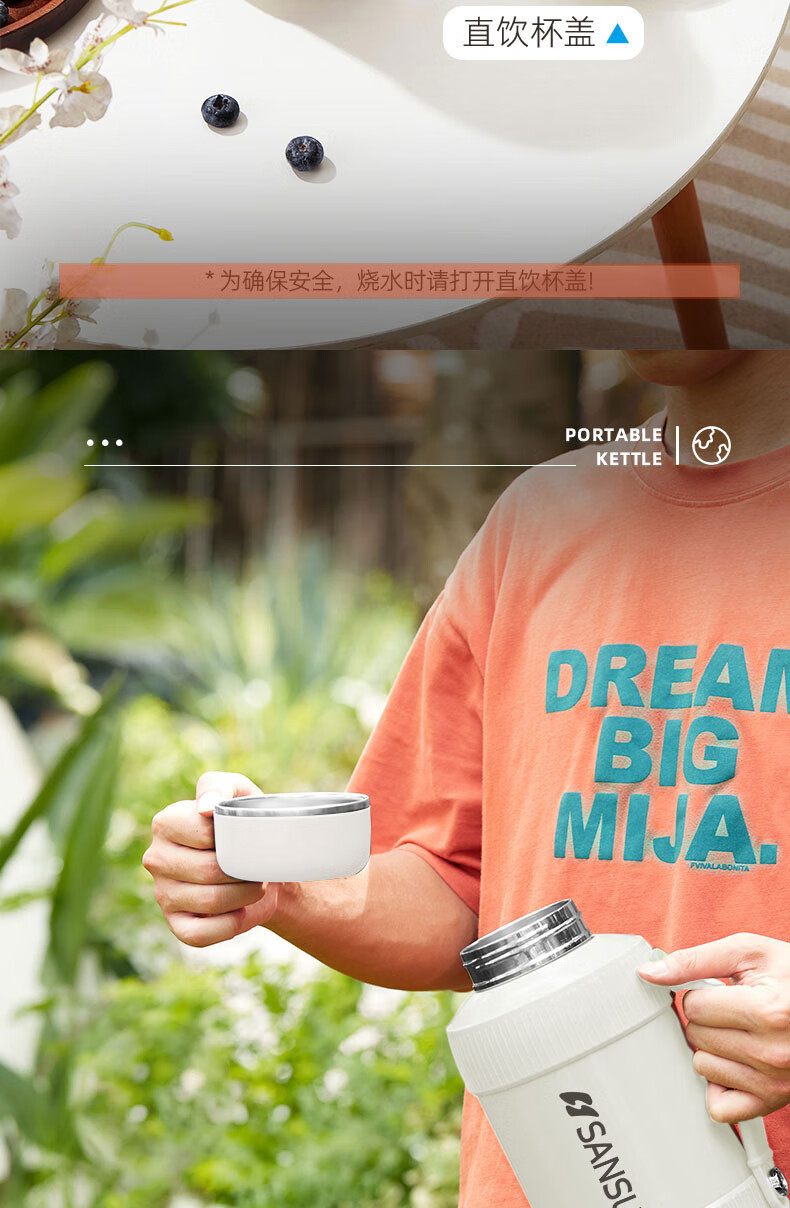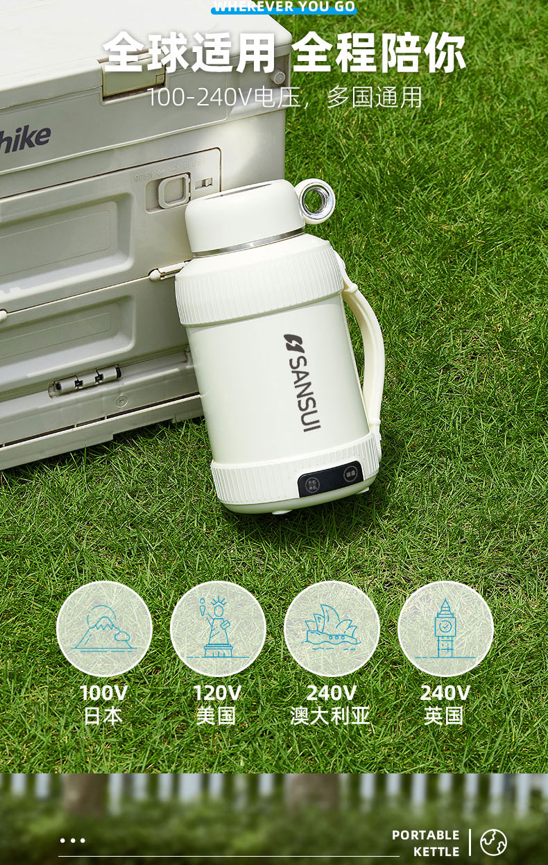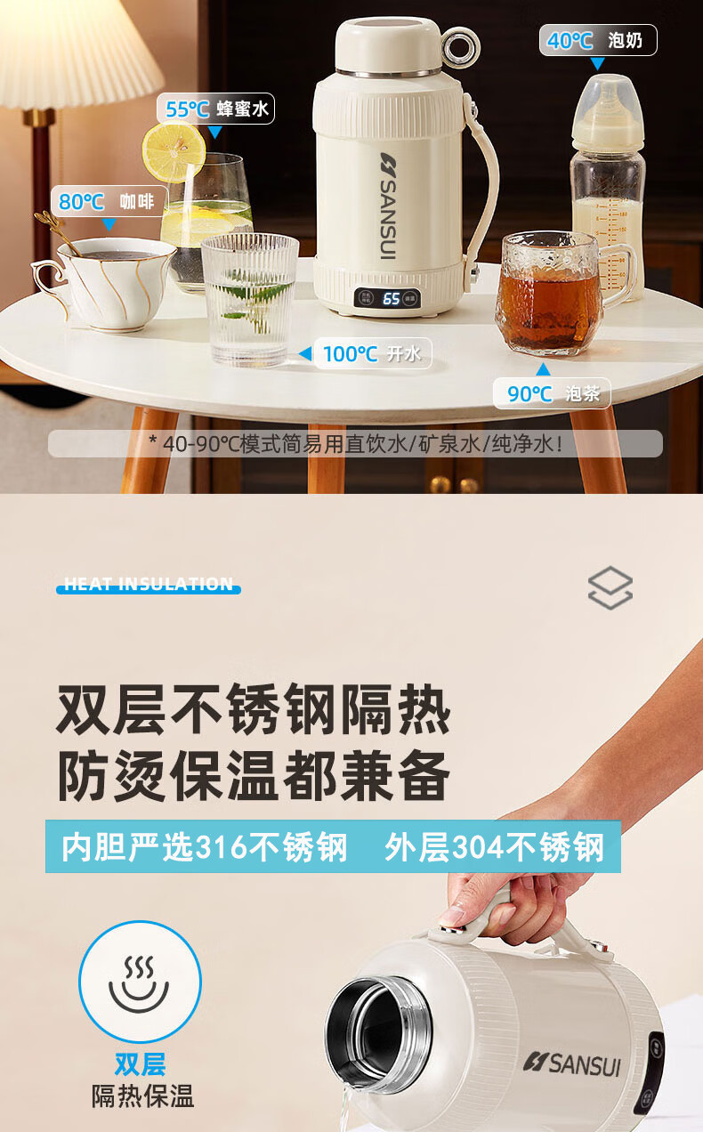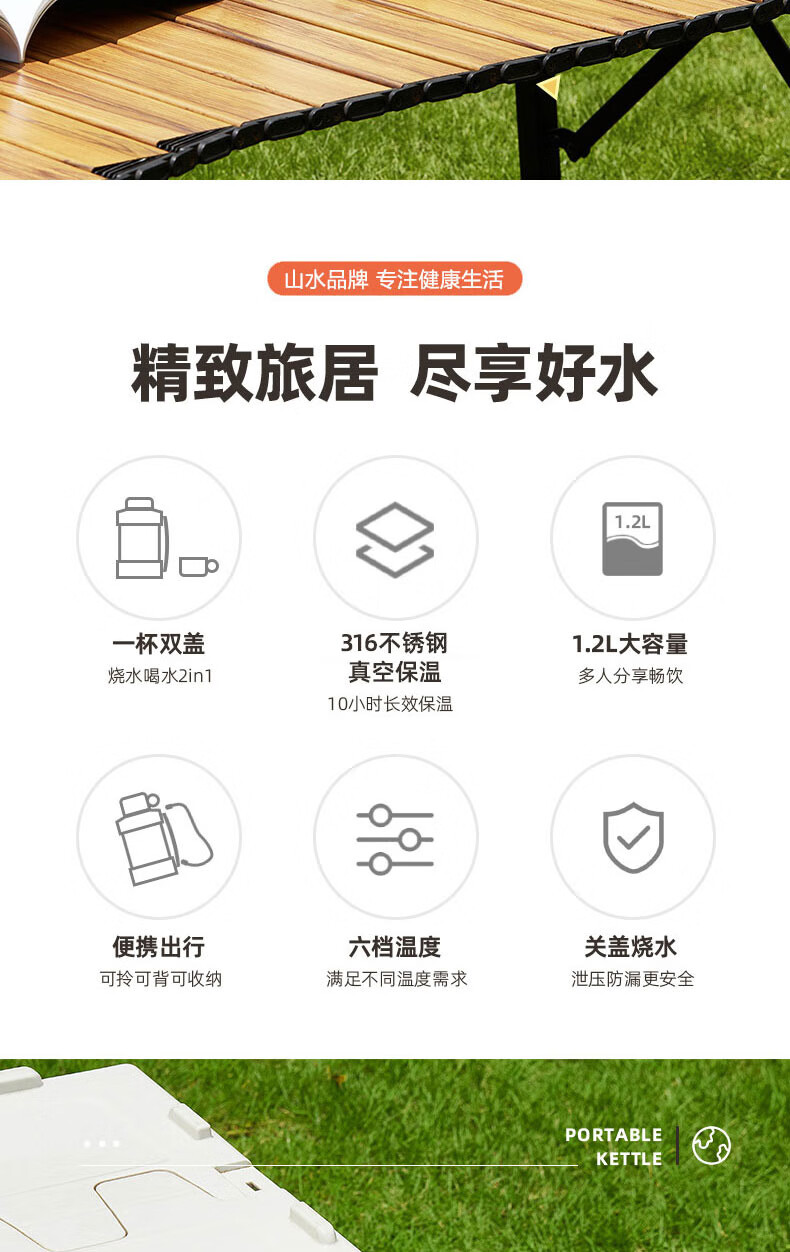 山水(SANSUI)便携式电热烧水壶316不锈钢电热烧水杯旅行电热水壶保温壶一体 1.2L 【316不锈钢 多国通用】